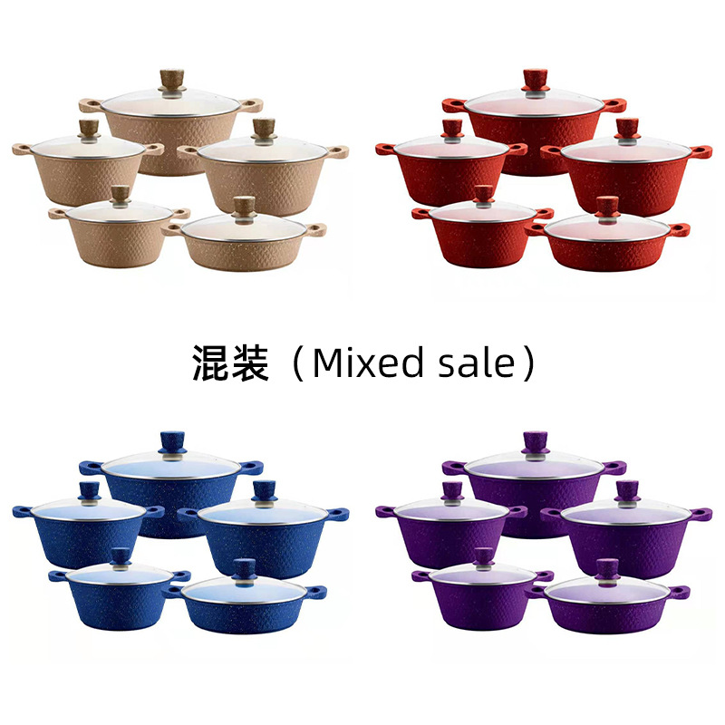 高定款外贸原单麦饭石压铸汤锅套装大理石一体小钻石十件套批发