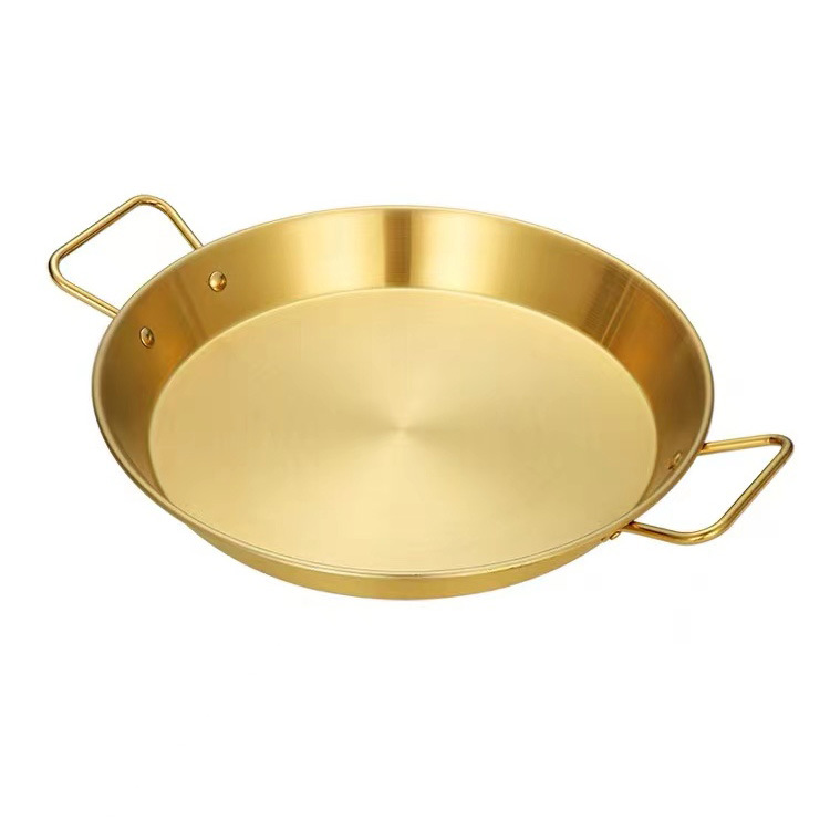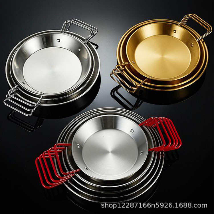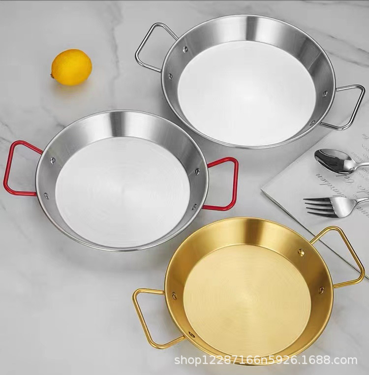 不锈钢西班牙海鲜盘 小龙虾盘炸鸡意面盘 双耳烩饭煎锅平底盘加厚