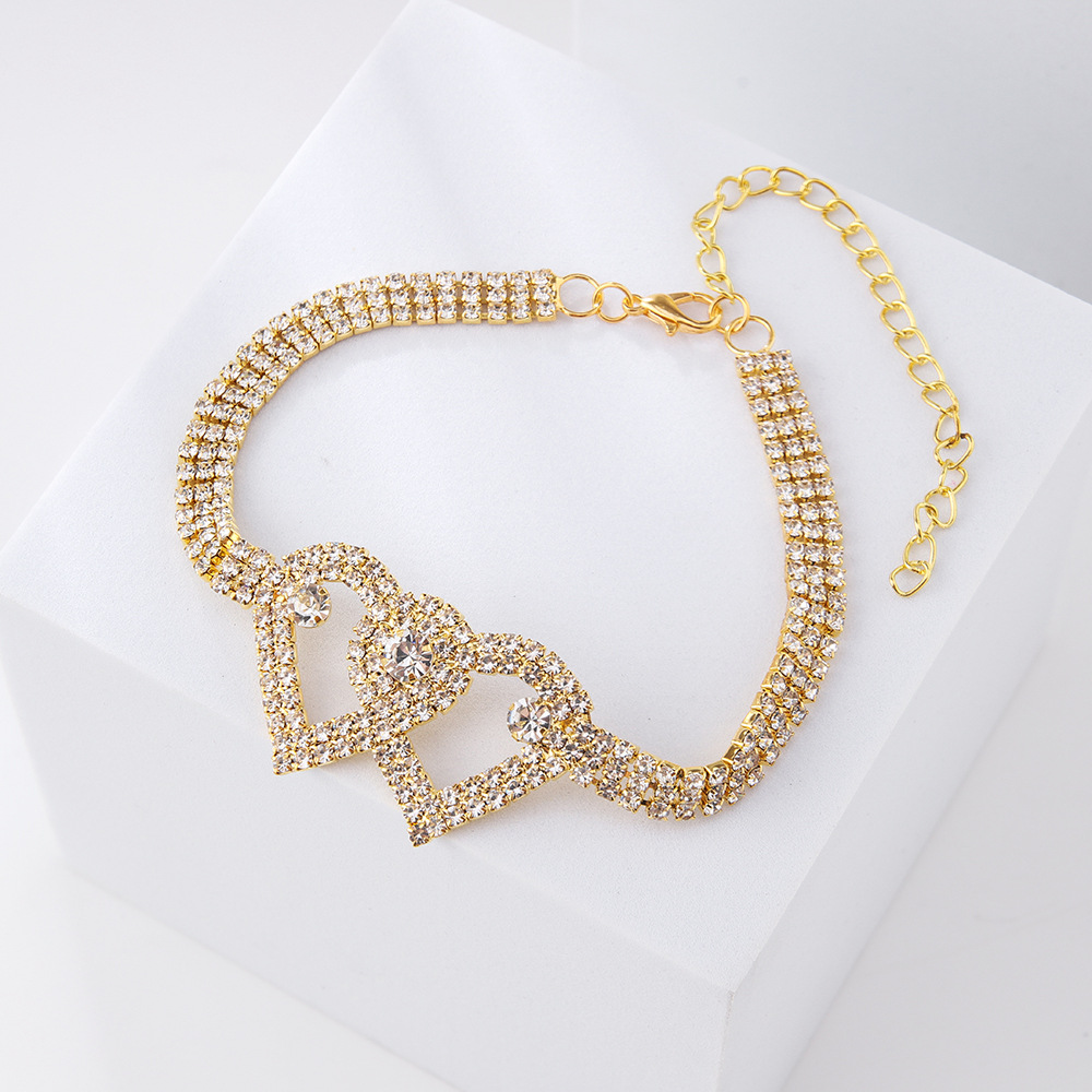 跨境爆款 个性潮流双爱心脚链 欧美满钻闪亮沙滩脚链流行配饰女