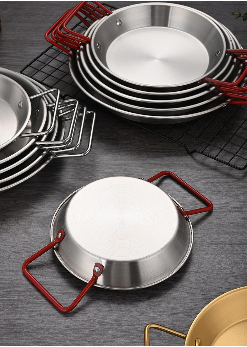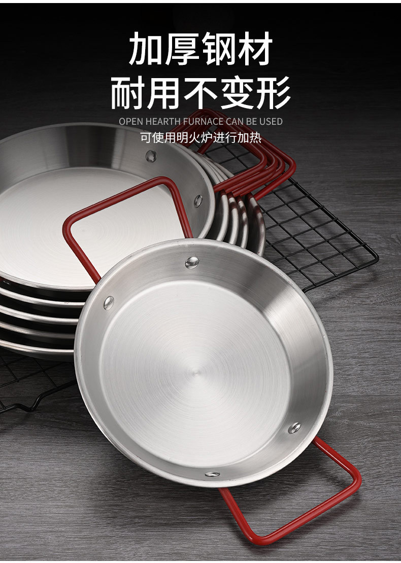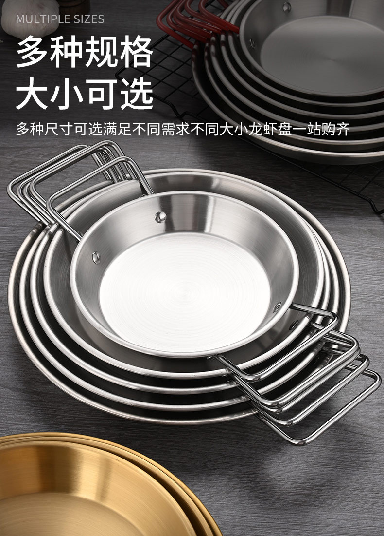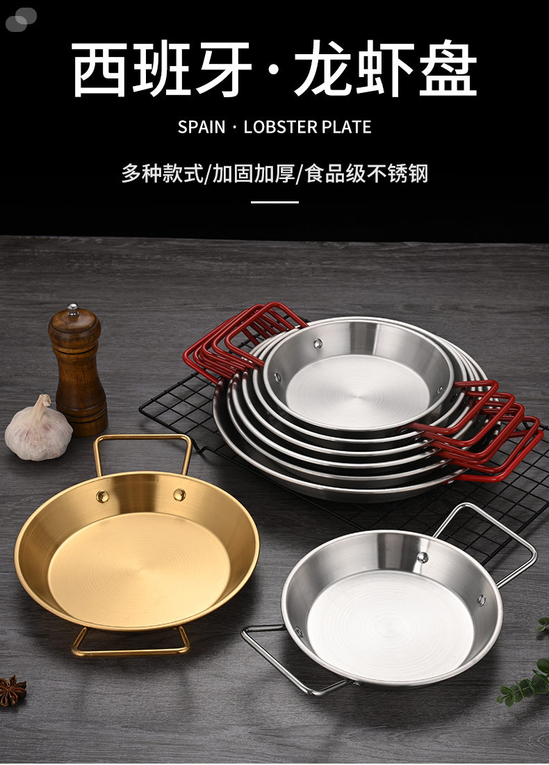 西班牙海鲜饭锅煎锅双耳小龙虾盘平底锅不锈钢炸鸡盘沙拉意面盘