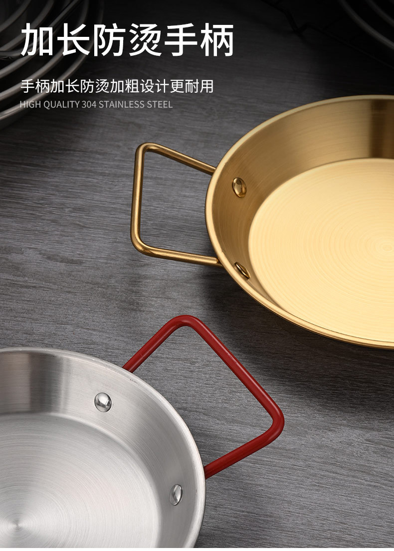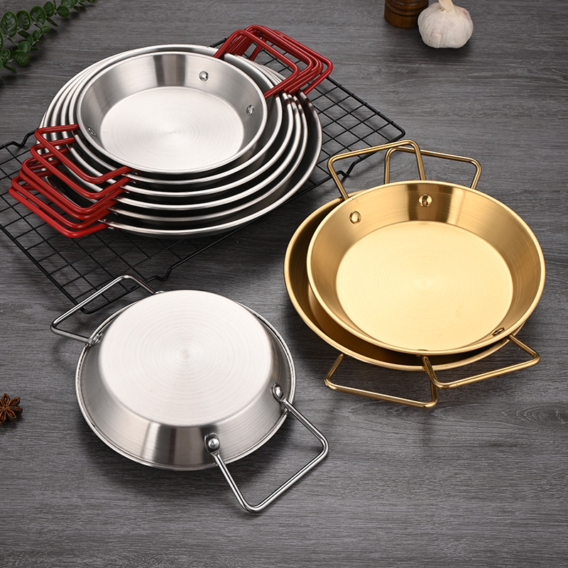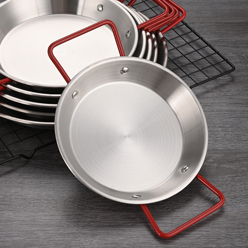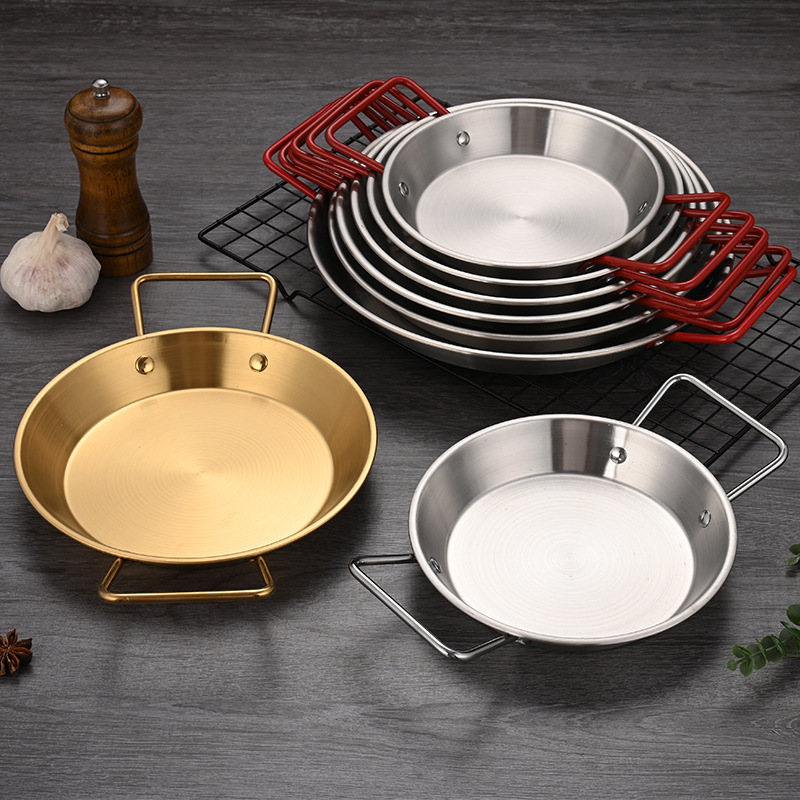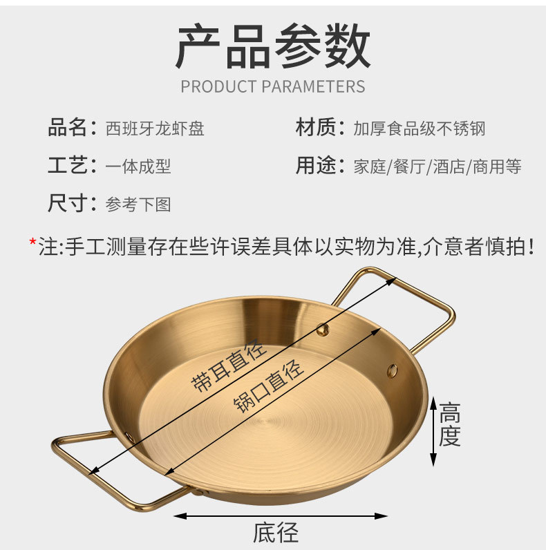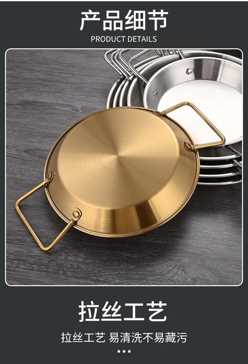 西班牙海鲜饭锅煎锅双耳小龙虾盘平底锅不锈钢炸鸡盘沙拉意面盘