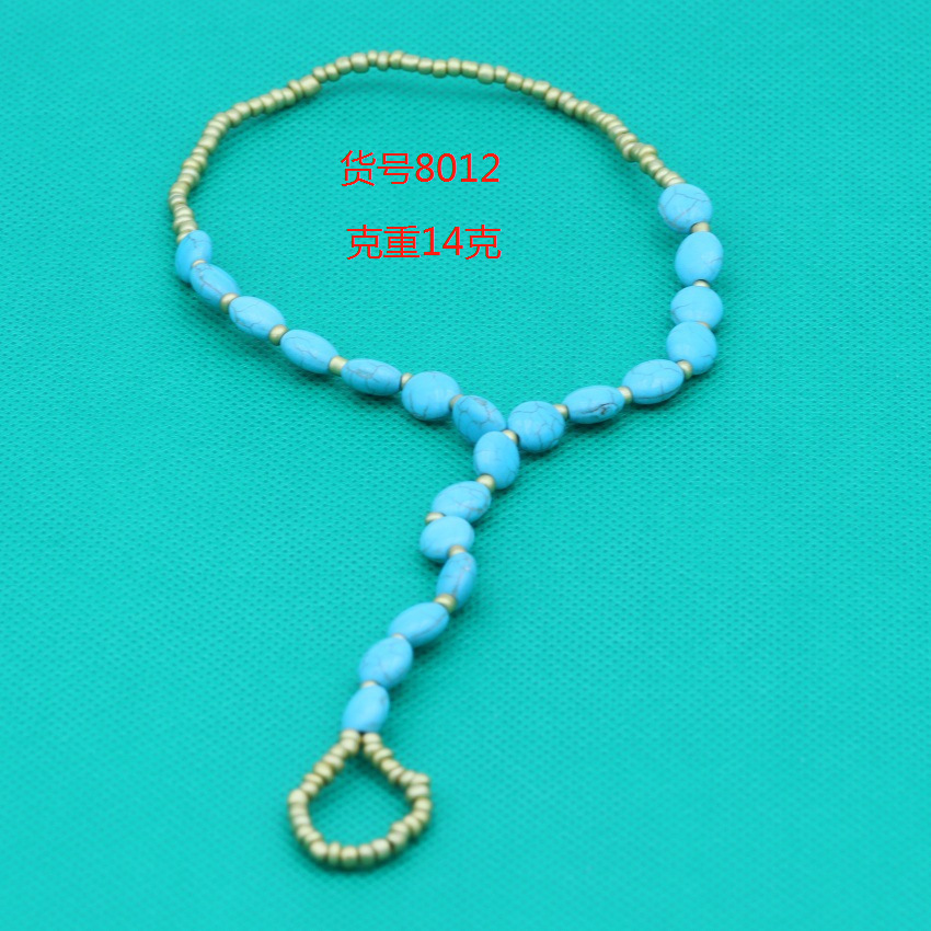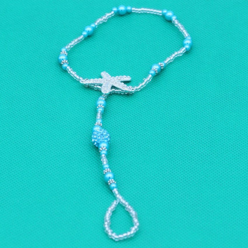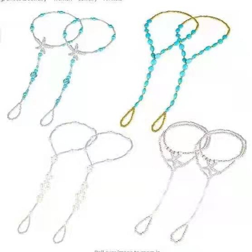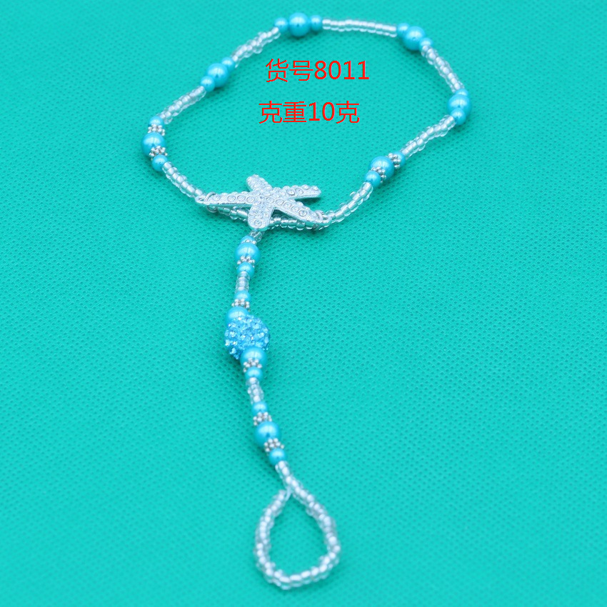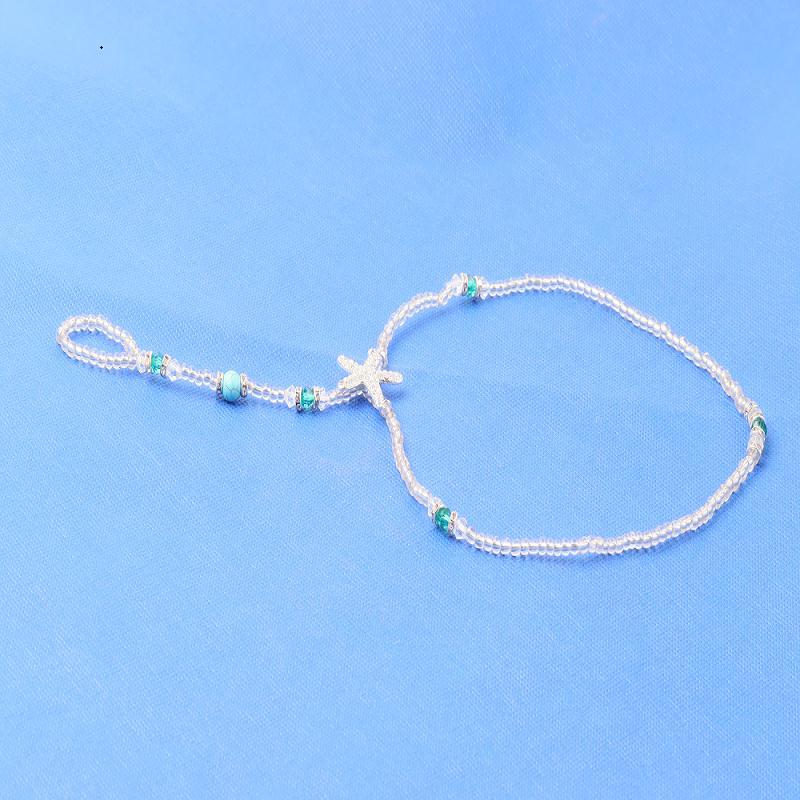 8000仿珍珠弹力绳连趾弹力脚链 钻海星串珠闪脚饰蓝松石套装脚链