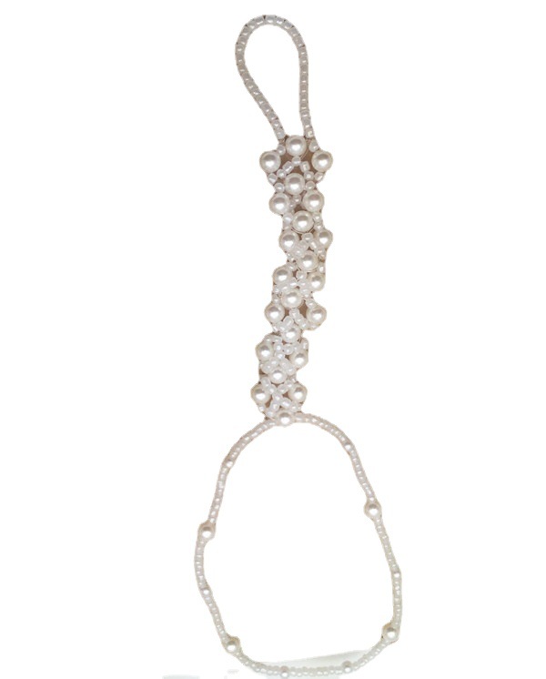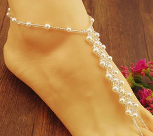 爆款Ebay日韩仿珍珠编织女脚链纯手工8字双层欧美连指弹力厂家