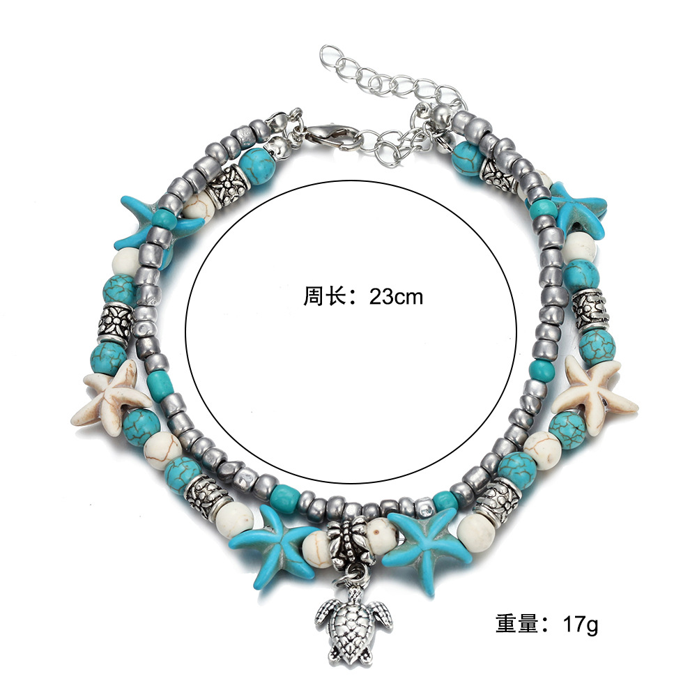 欧美创意时尚双层脚链海螺吊坠海星米珠瑜伽沙滩手链脚饰品女