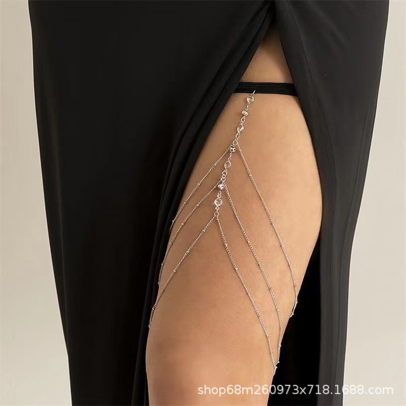 欧美性感沙滩仿珍珠大腿链女几何流苏身体链 水钻金属链条腿环女