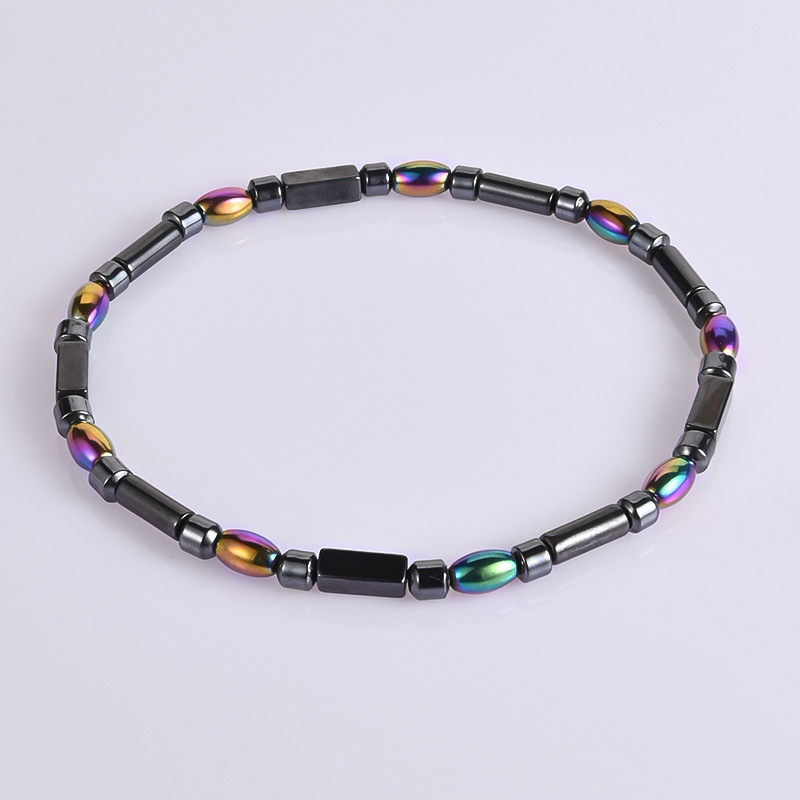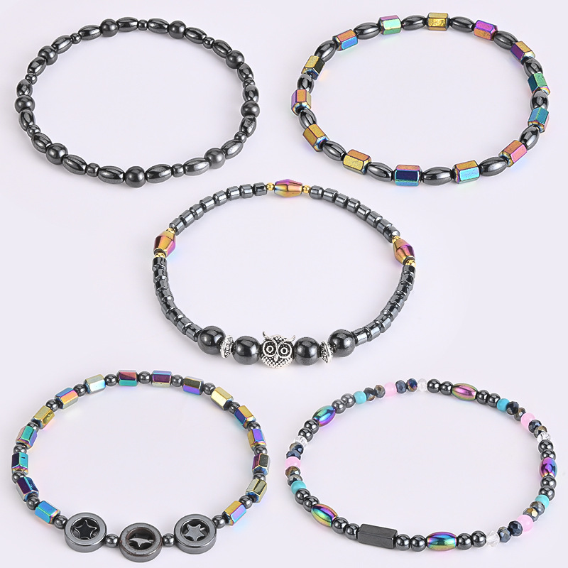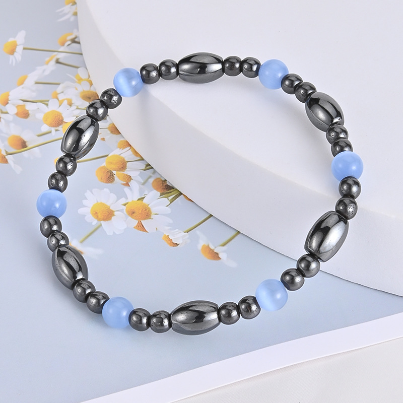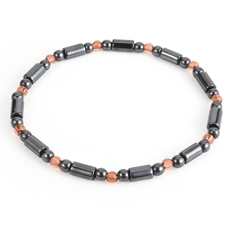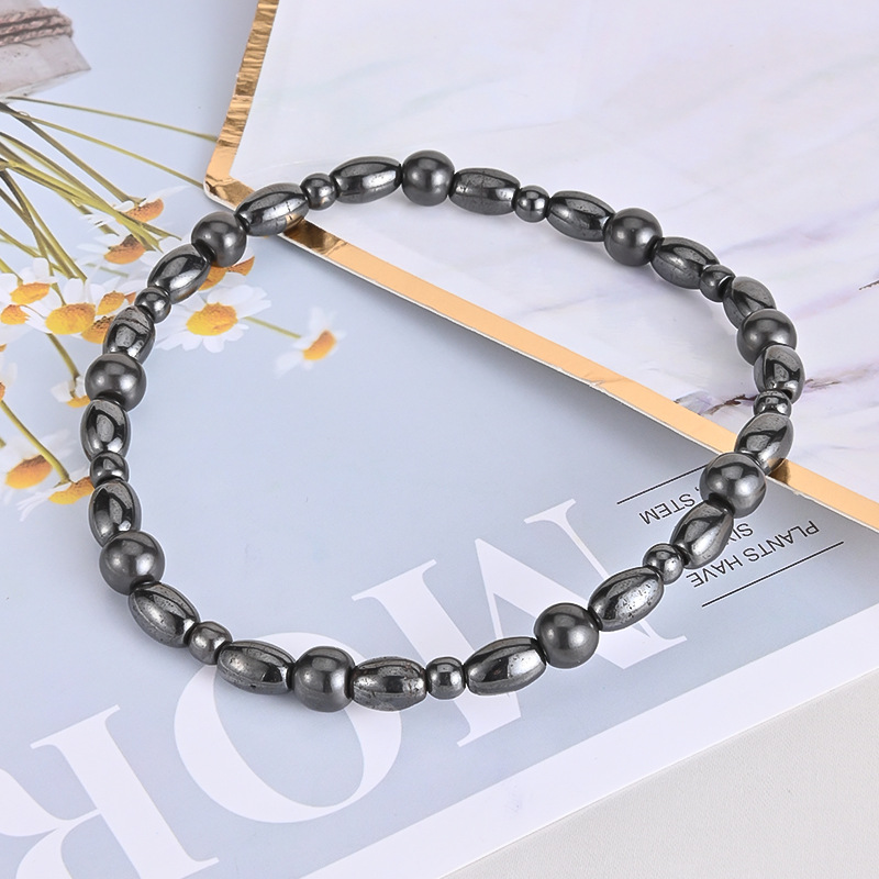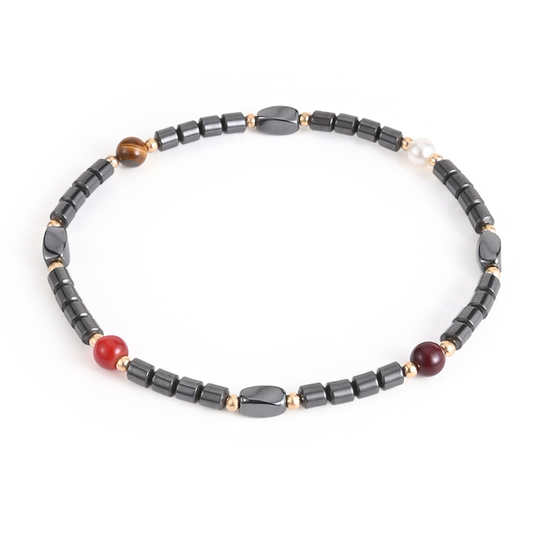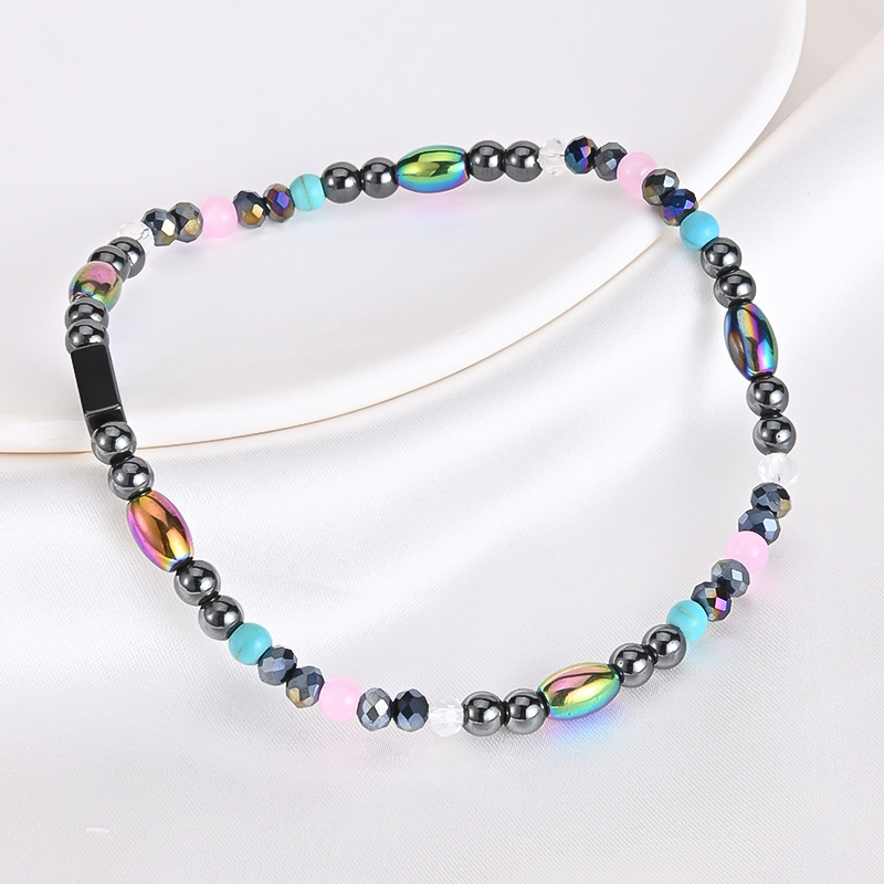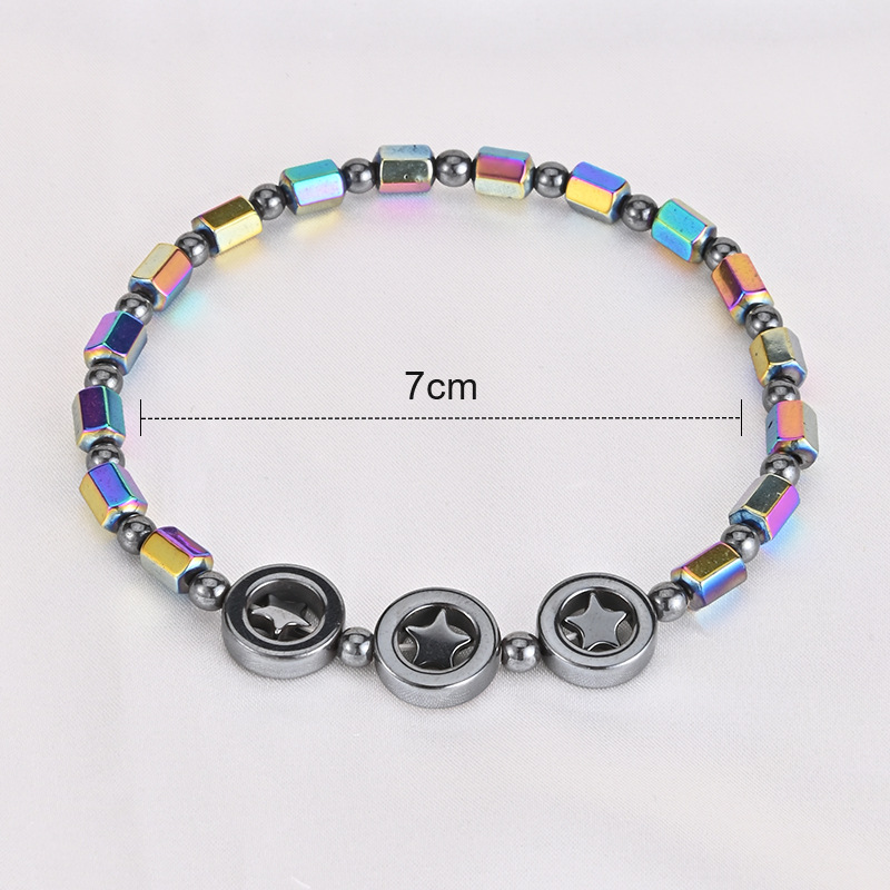 亚马逊珍珠磁石脚链黑胆石天然星星女情侣AB彩亚克力圆珠编织脚饰