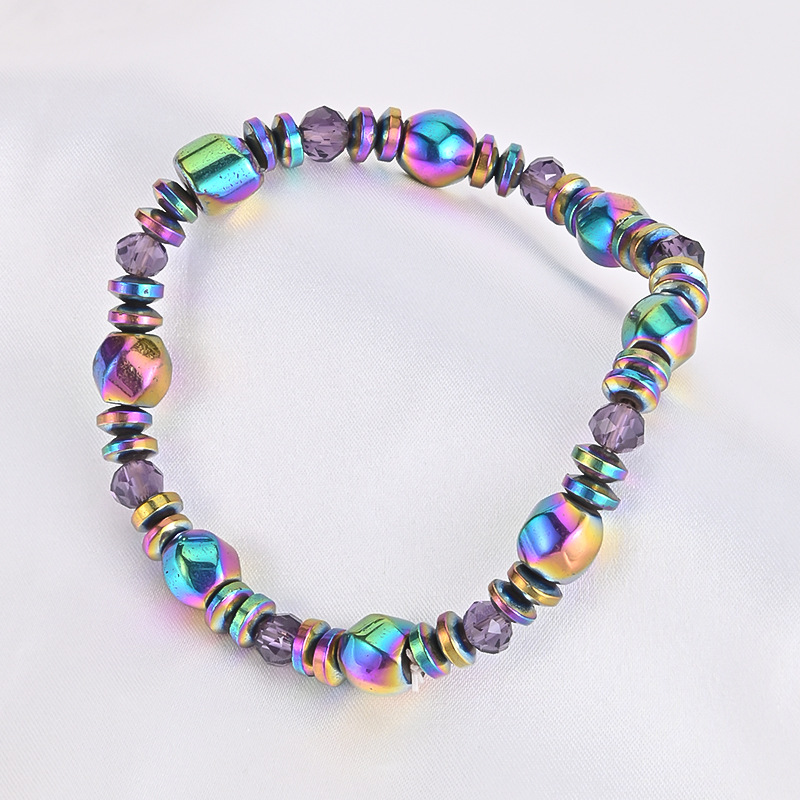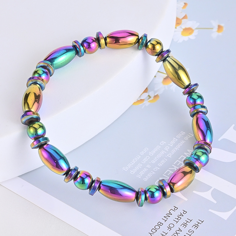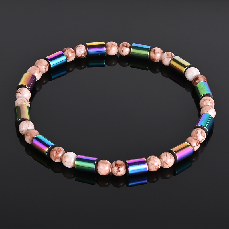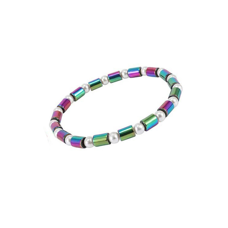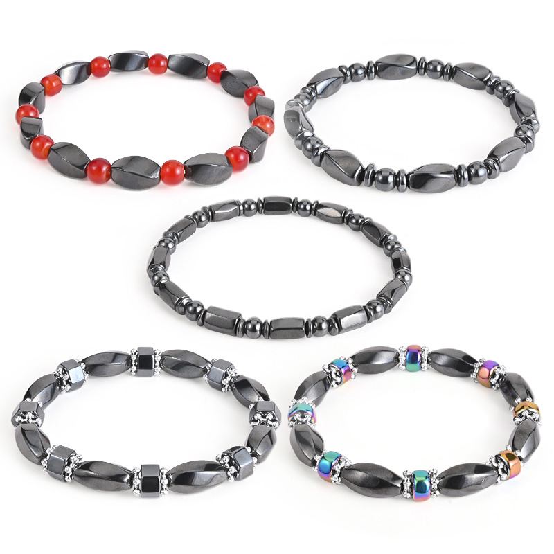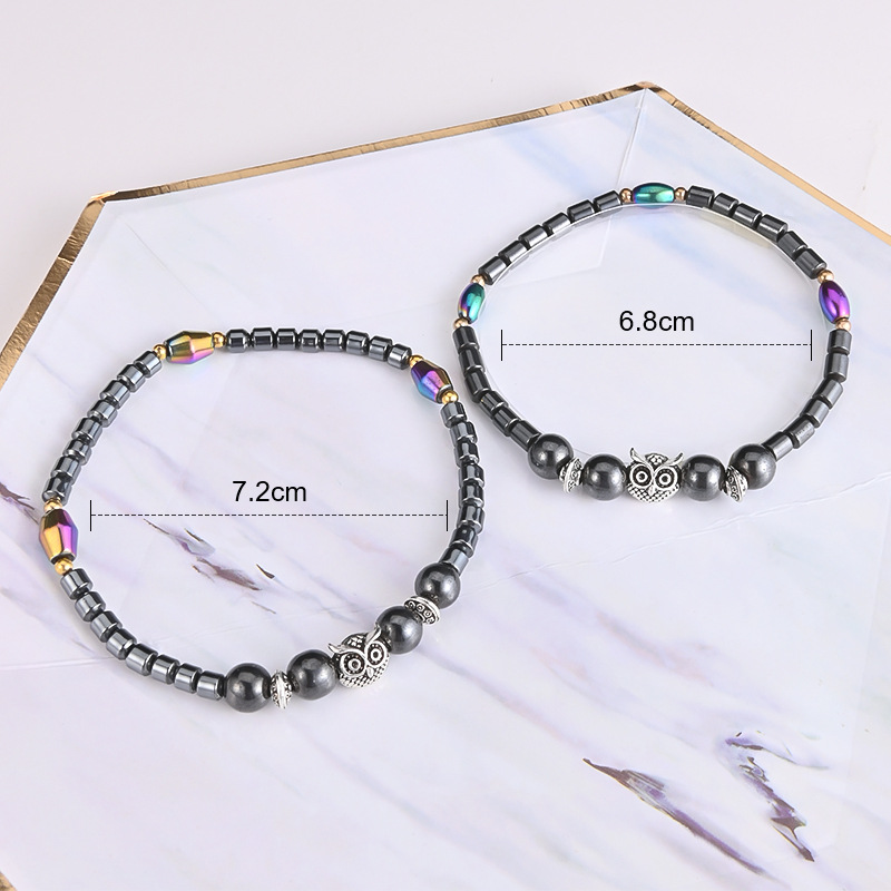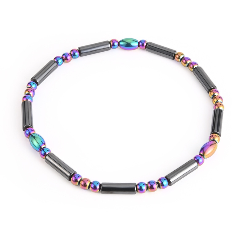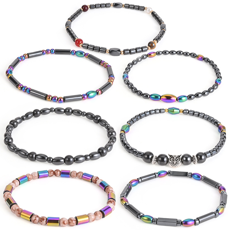 亚马逊珍珠磁石脚链黑胆石天然星星女情侣AB彩亚克力圆珠编织脚饰