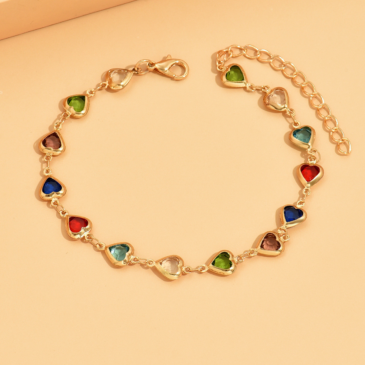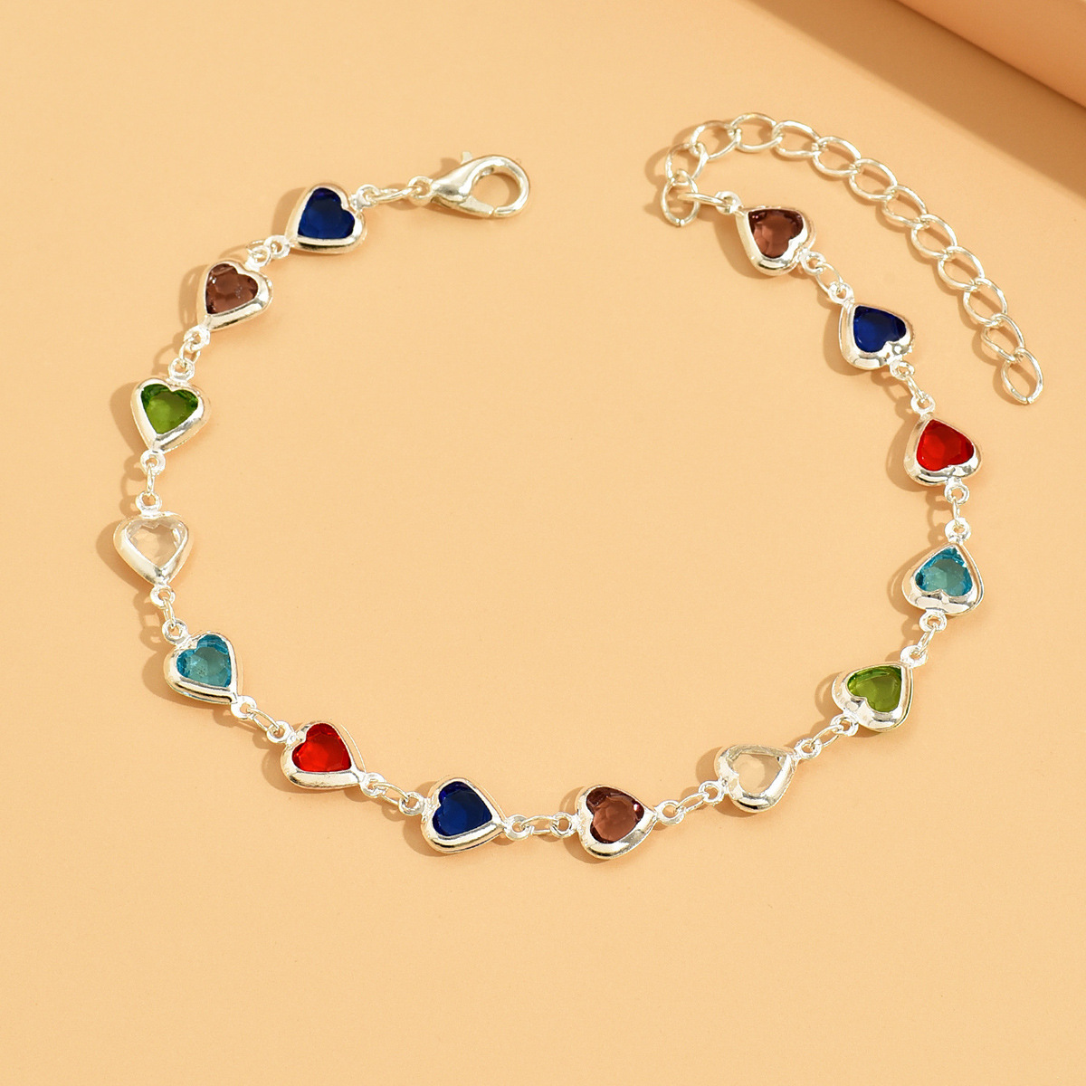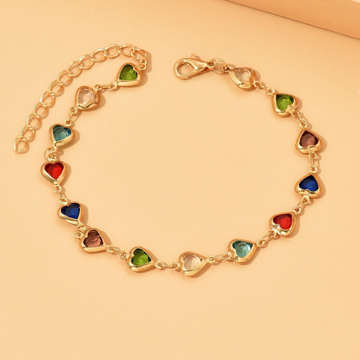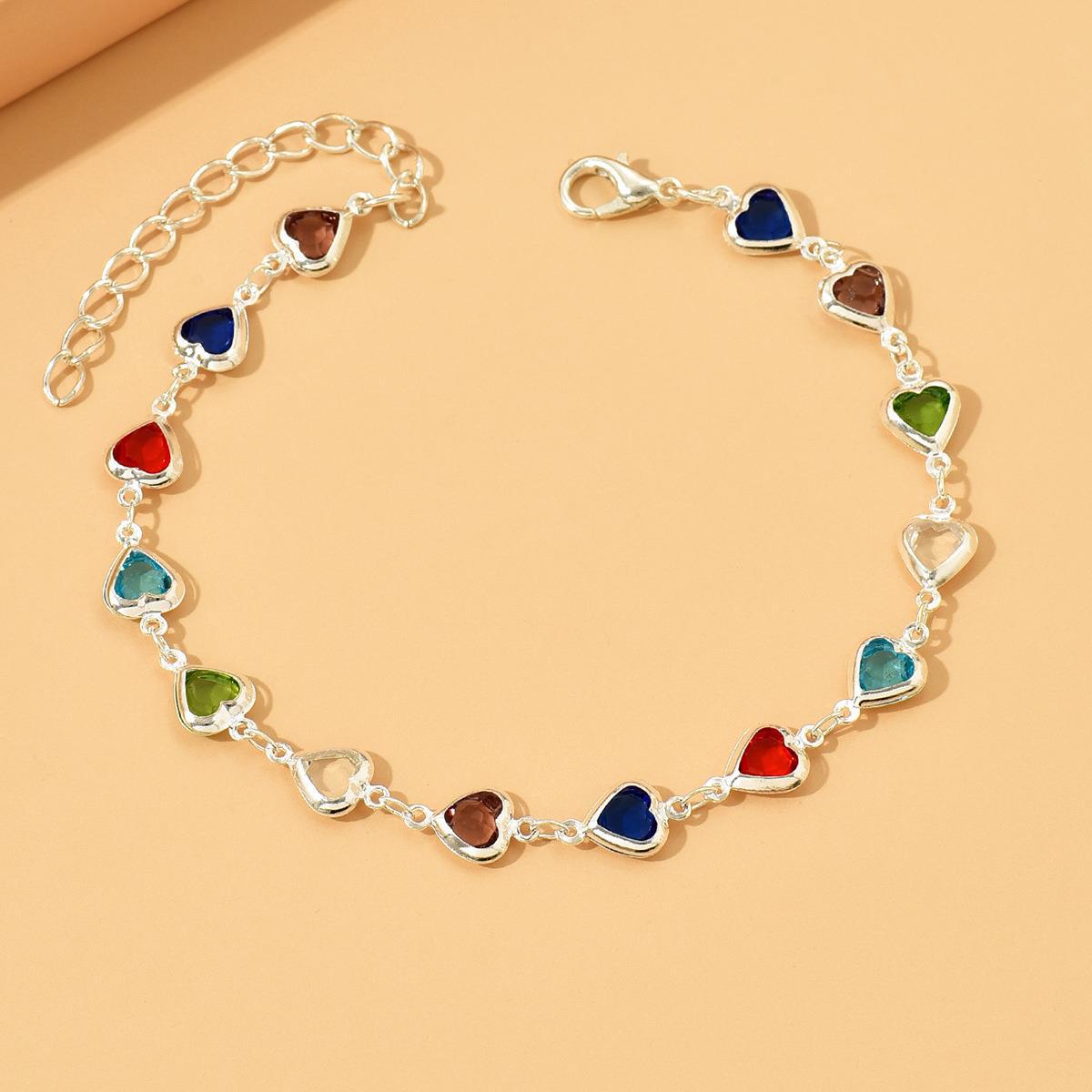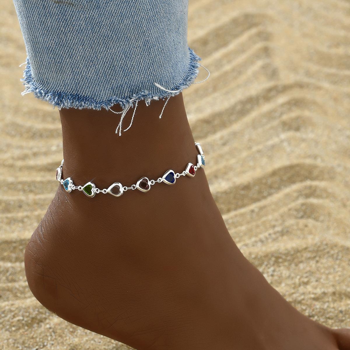 欧美彩色沙滩度假风脚饰糖果色心形串珠民族风脚链个性多巴胺脚链