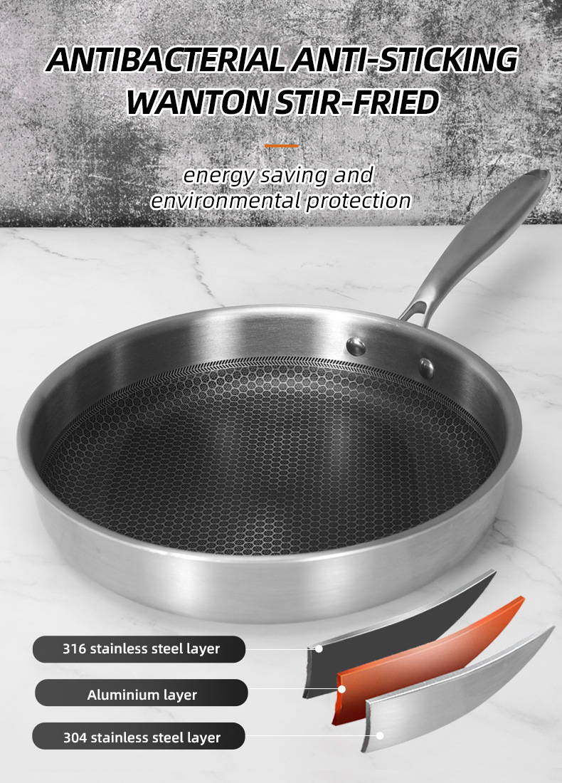跨境专供欧美经典不锈钢不粘煎盘可煎可炖易清洗健康不锈钢煎盘
