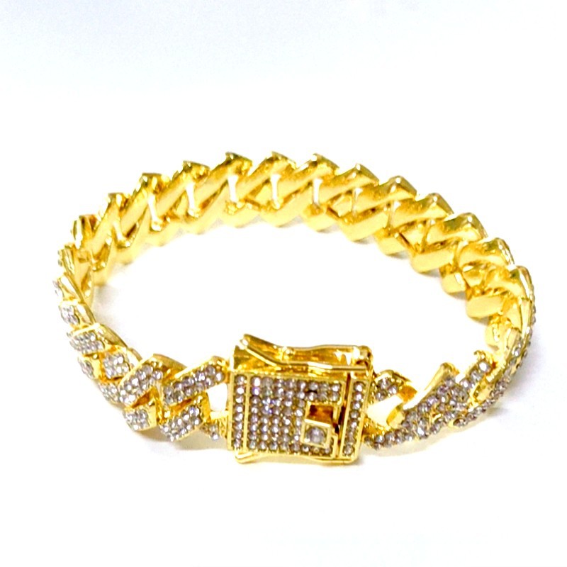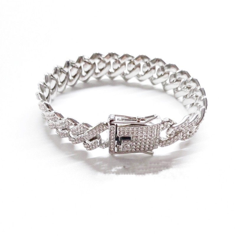 满钻14毫米古巴项链男潮流嘻哈简约链子男女菱形欧美镶钻配