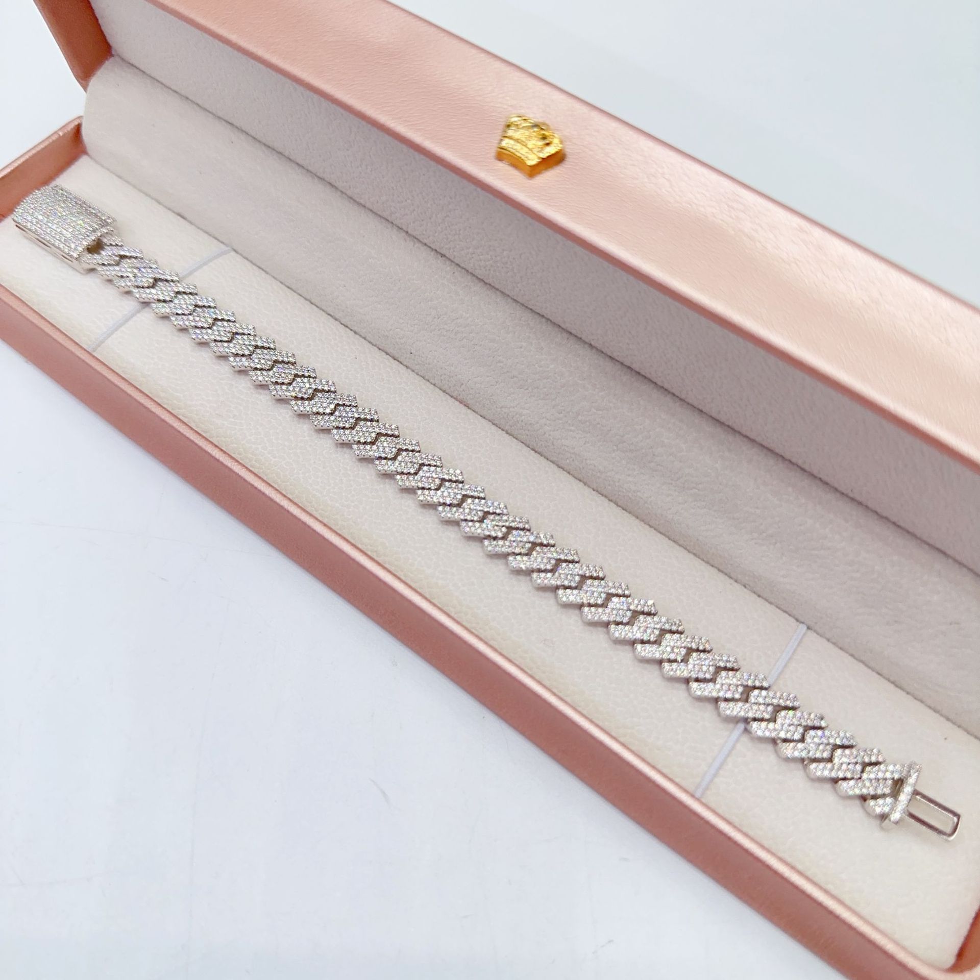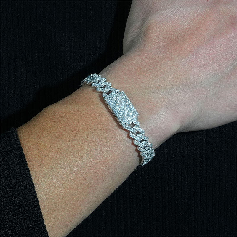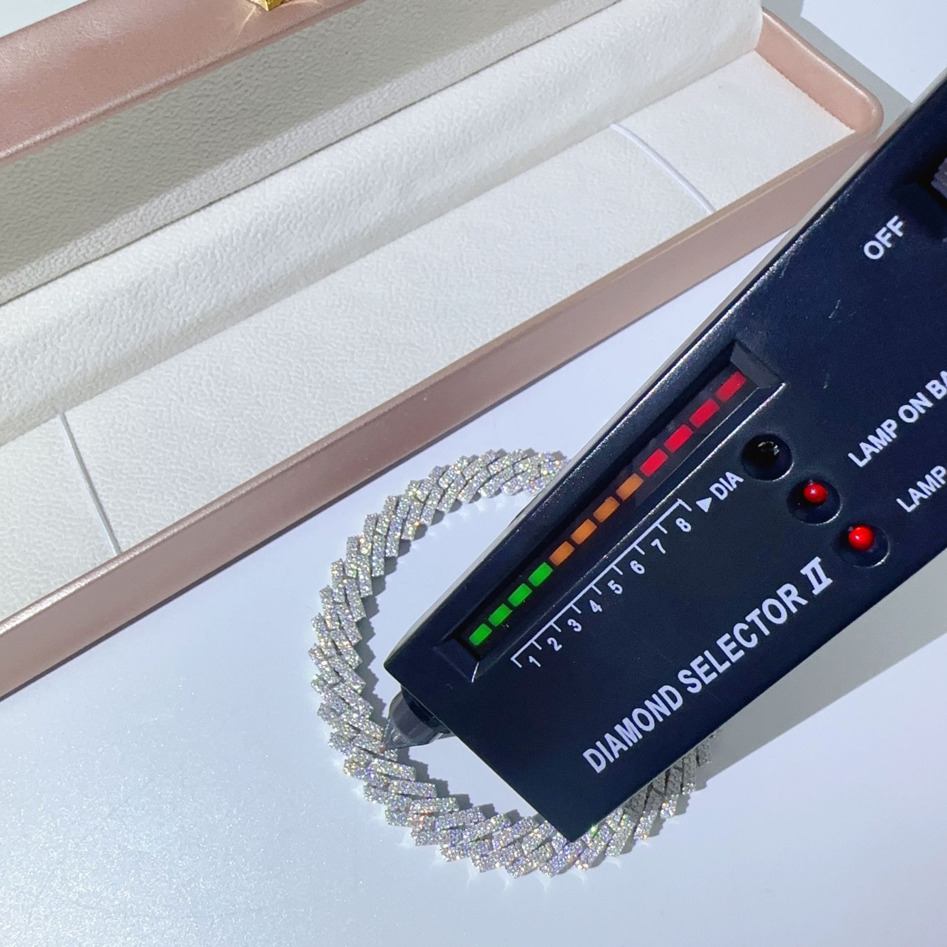 欧美古巴链10mm满镶莫桑石S925银菱形古巴链潮牌项链配饰跨境热卖