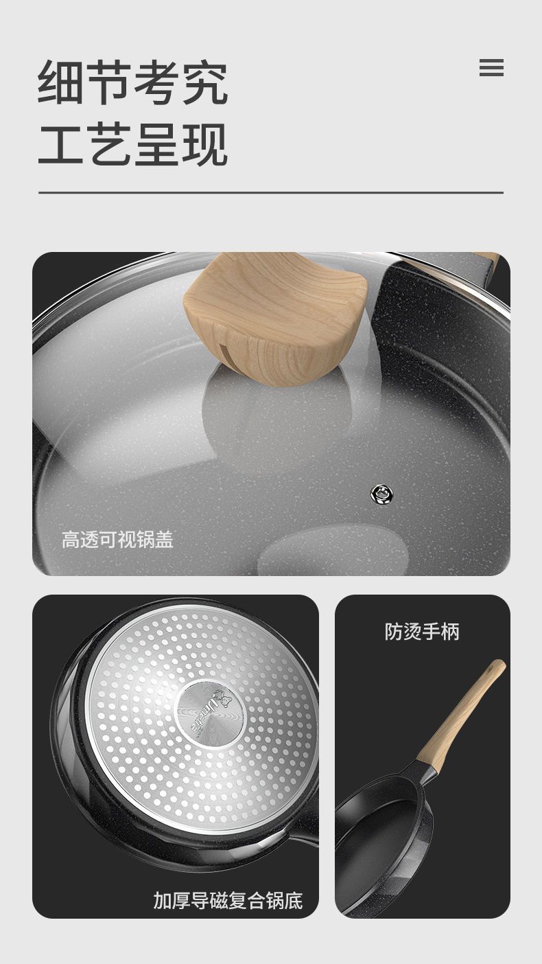 家用不粘锅全套德国尤米麦饭石色平底锅煎锅牛排煎蛋电磁炉炒菜锅