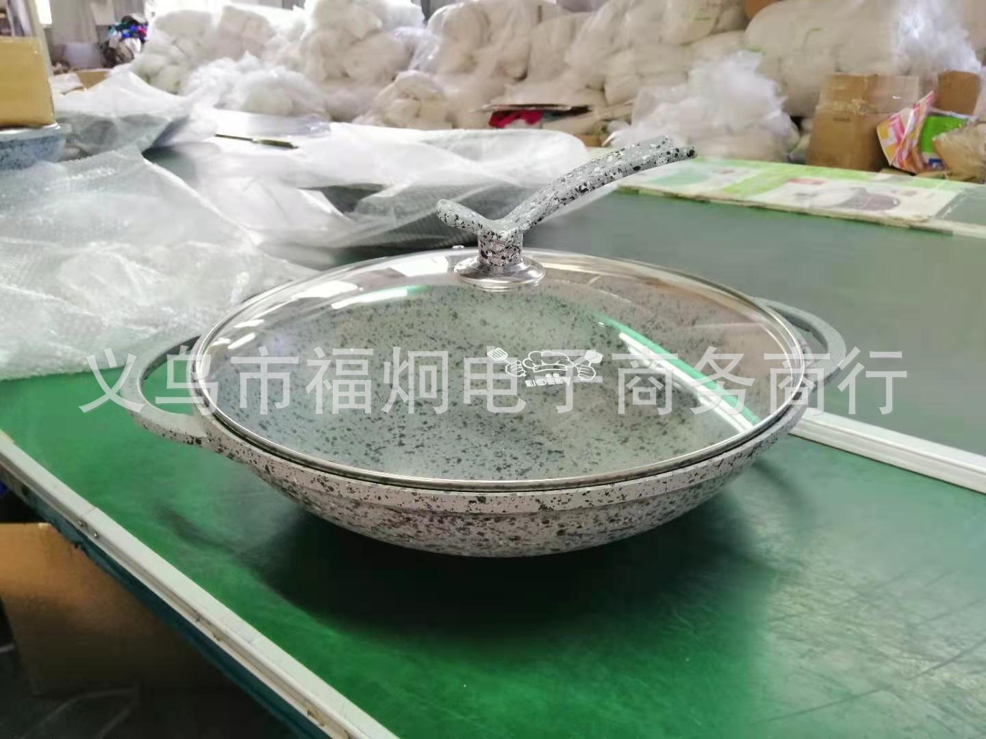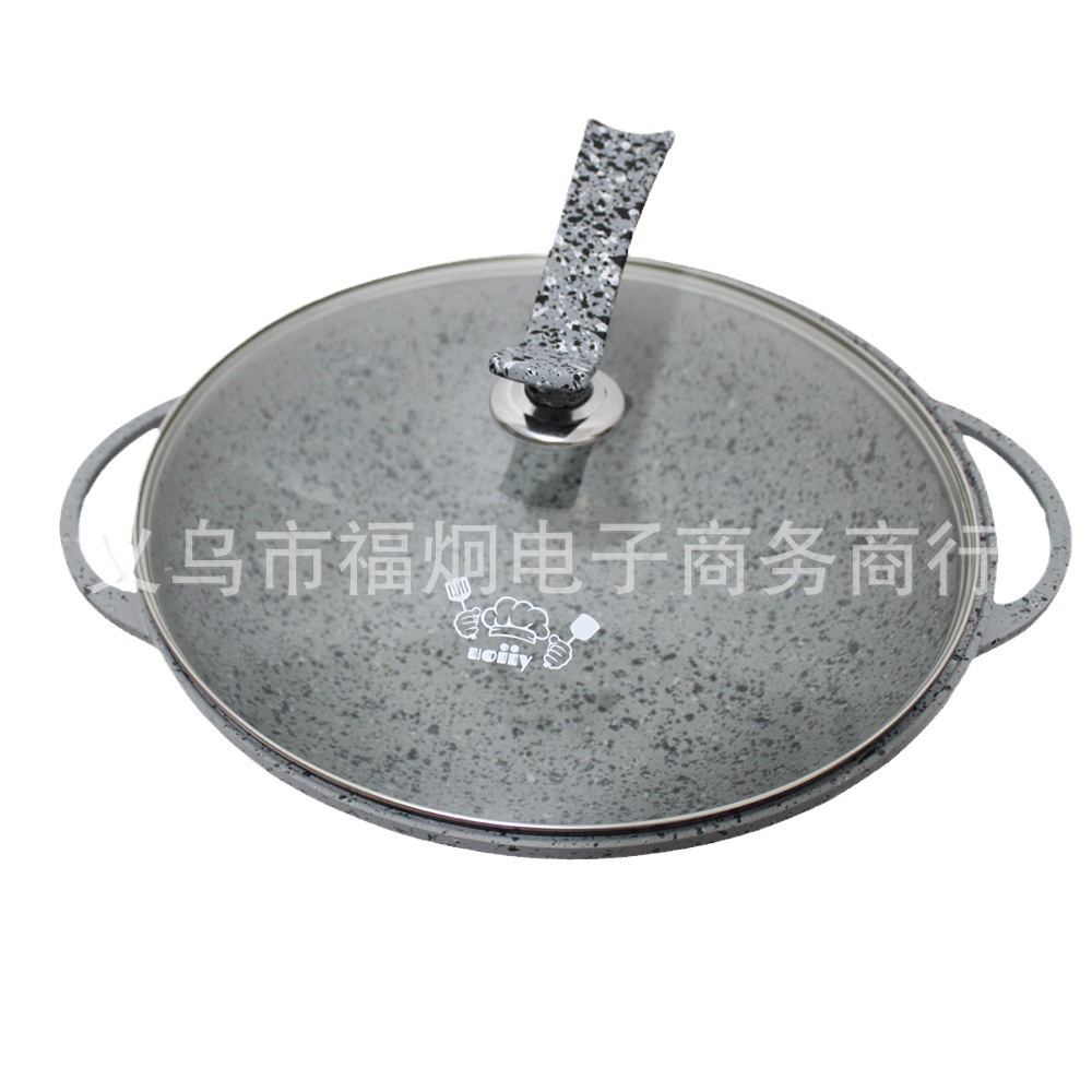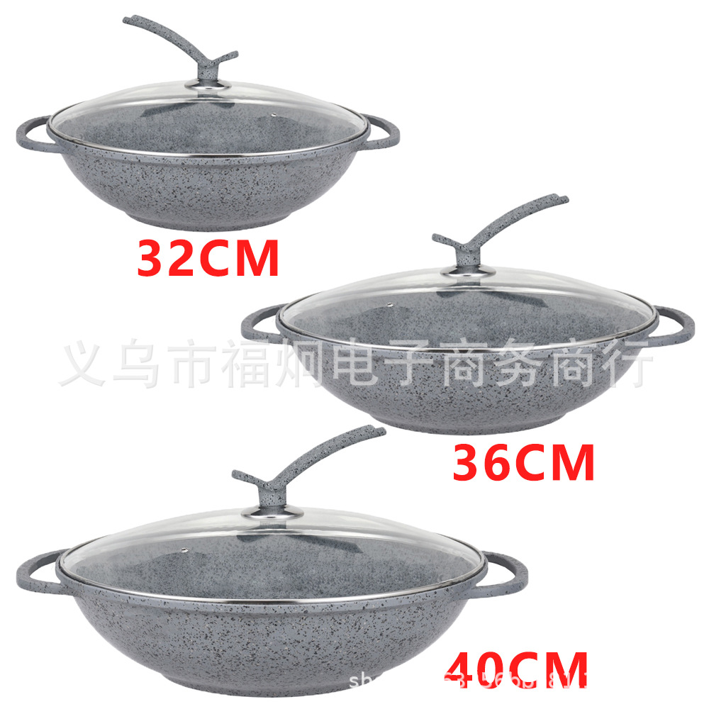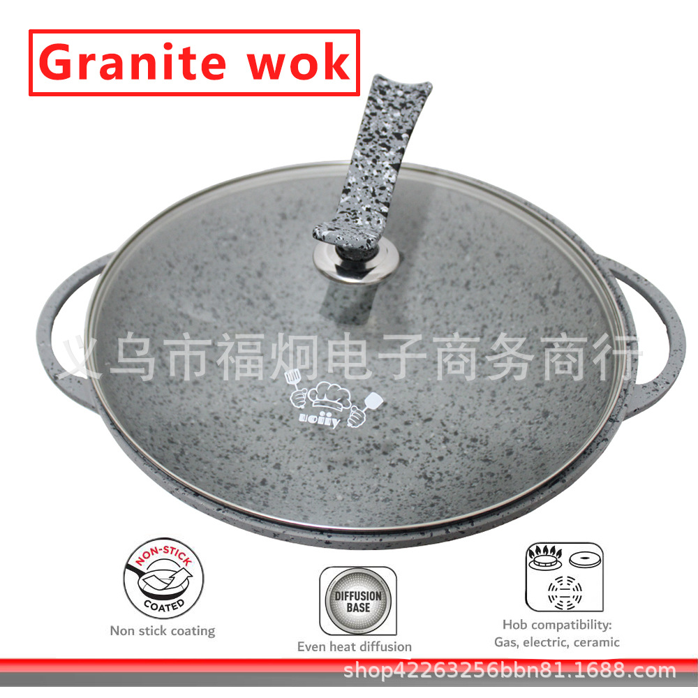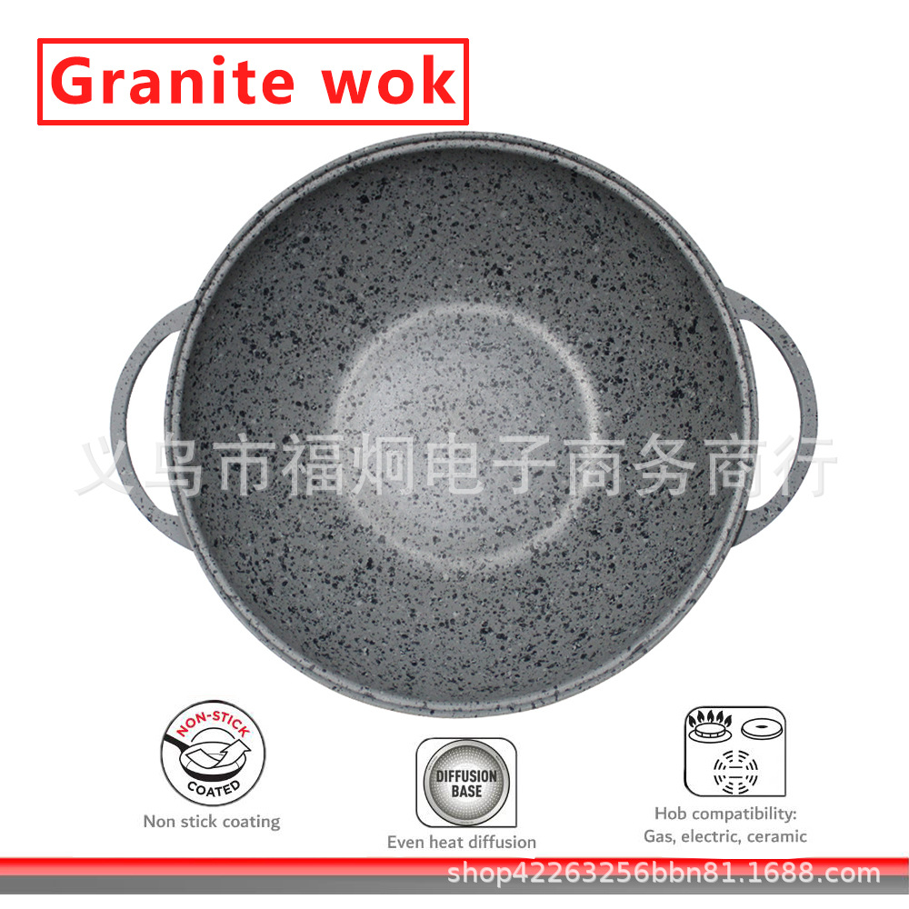 花岗岩双耳炒锅装锅不粘锅具厨房炒锅平底锅燃气灶专用德国外贸