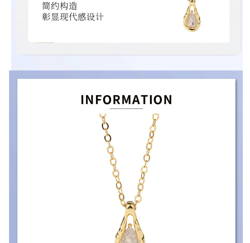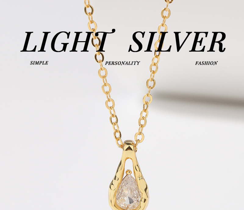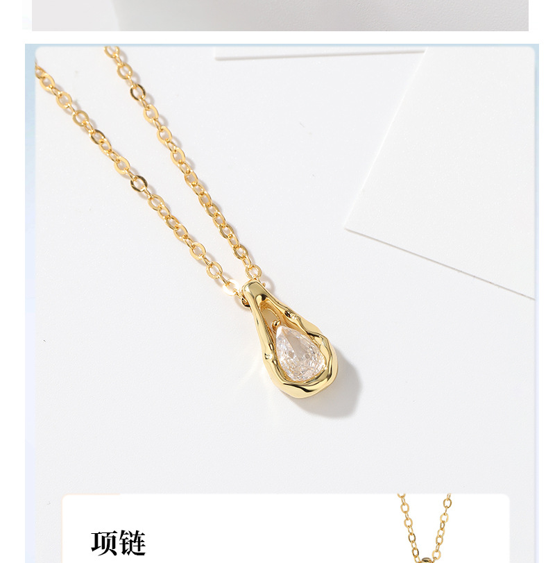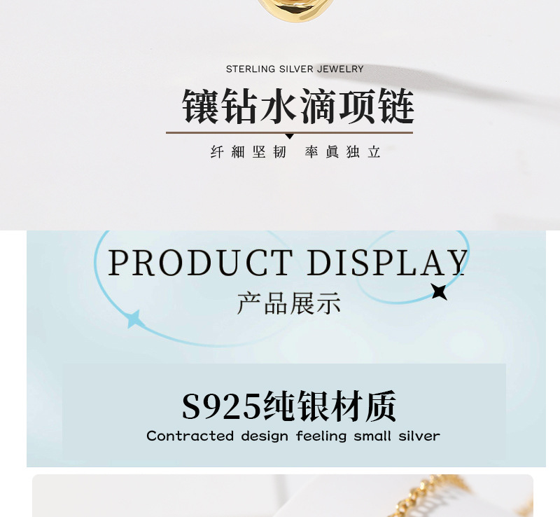 S925纯银水滴项链女欧美ins风轻奢高级感镶钻锁骨链跨境直播货源