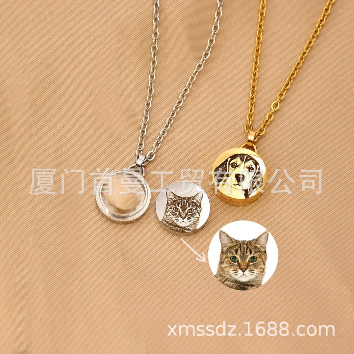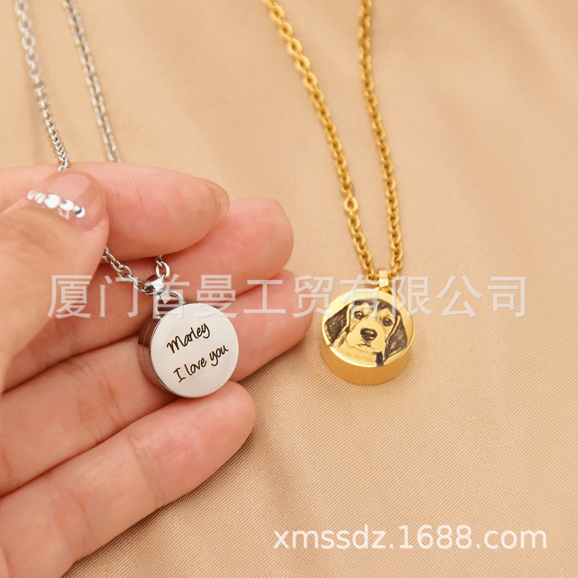 亚马逊圆形挂牌吊坠定制刻字圆牌骨灰盒项链纪念亲人宠物骨灰毛发