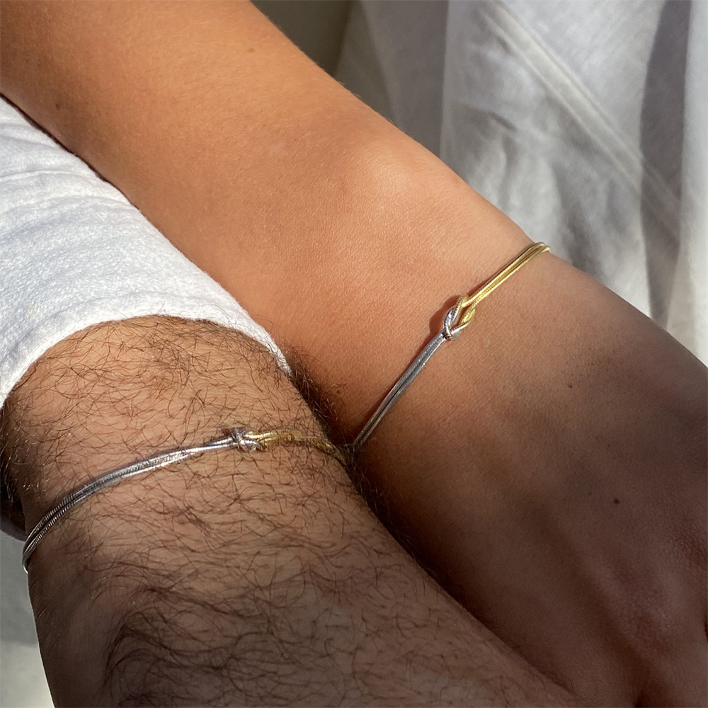 不锈钢情人节结蛇链项链手工打结锁骨链人字形手链镀真金保色饰品