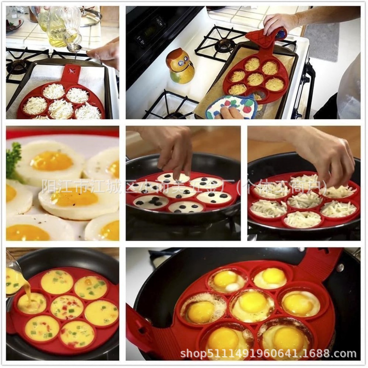 多功能硅胶七孔煎蛋神器煎饼模具多孔煎饼带厨房用品鸡蛋烘焙模具
