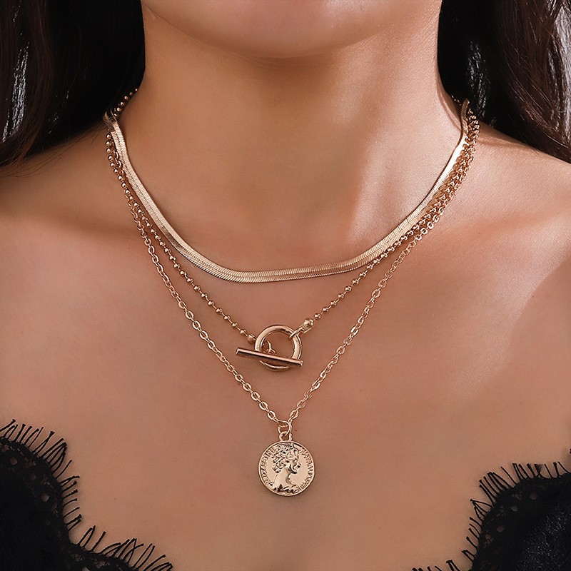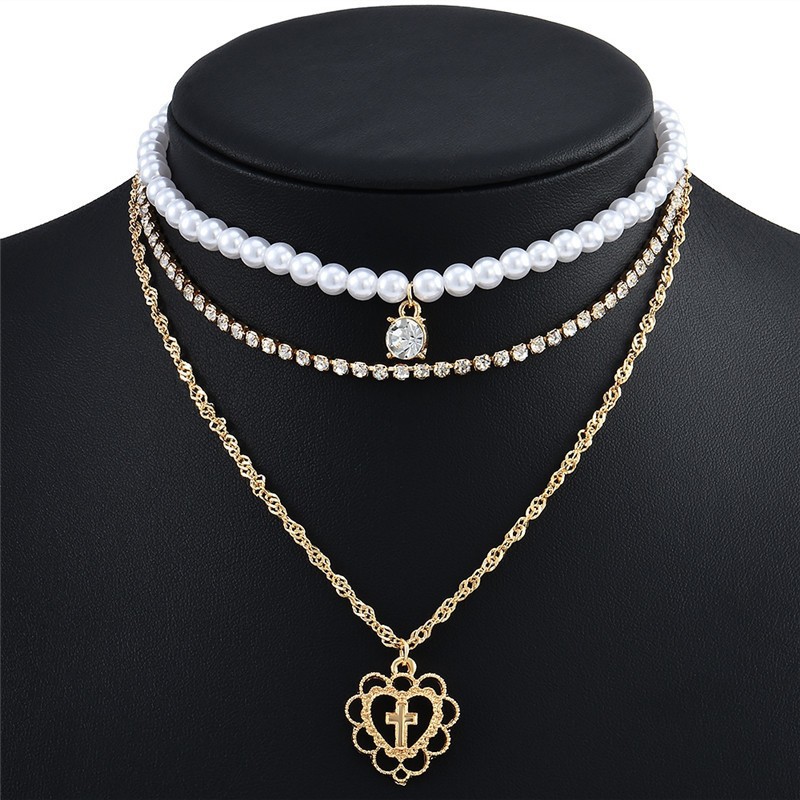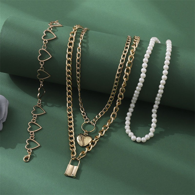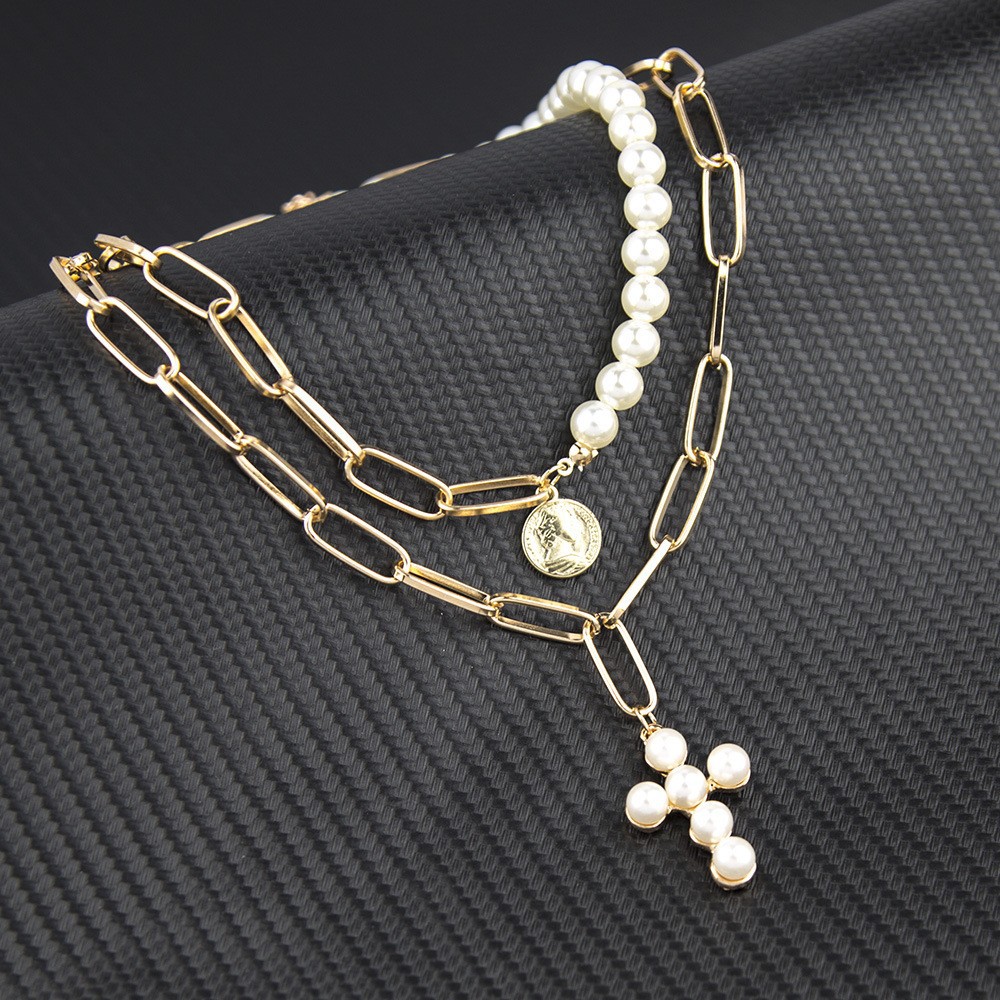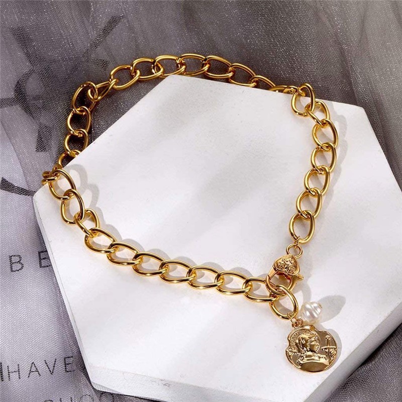 欧美跨境复古巴洛克异形仿珍珠项链女金属吊坠拼接锁骨链轻奢项链