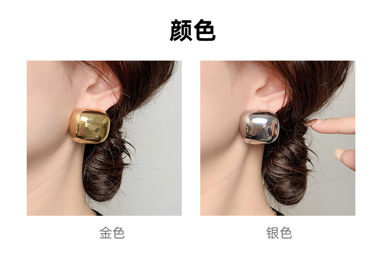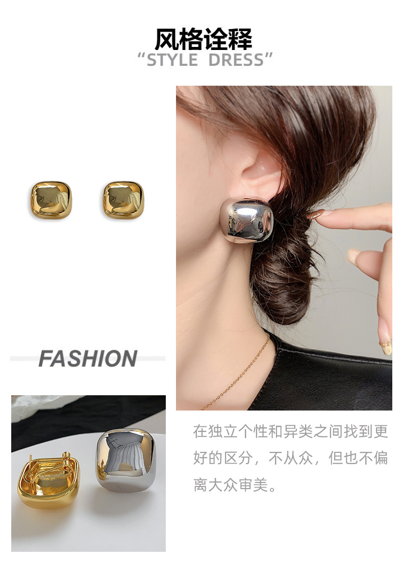 跨境爆款欧美INS风大光面方形耳钉小众高级感高光镜面耳环电镀24K