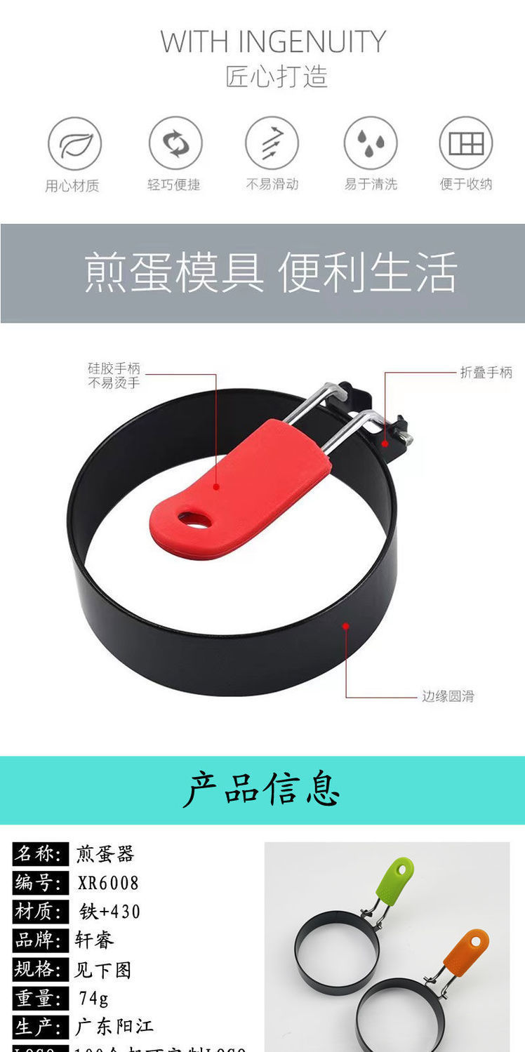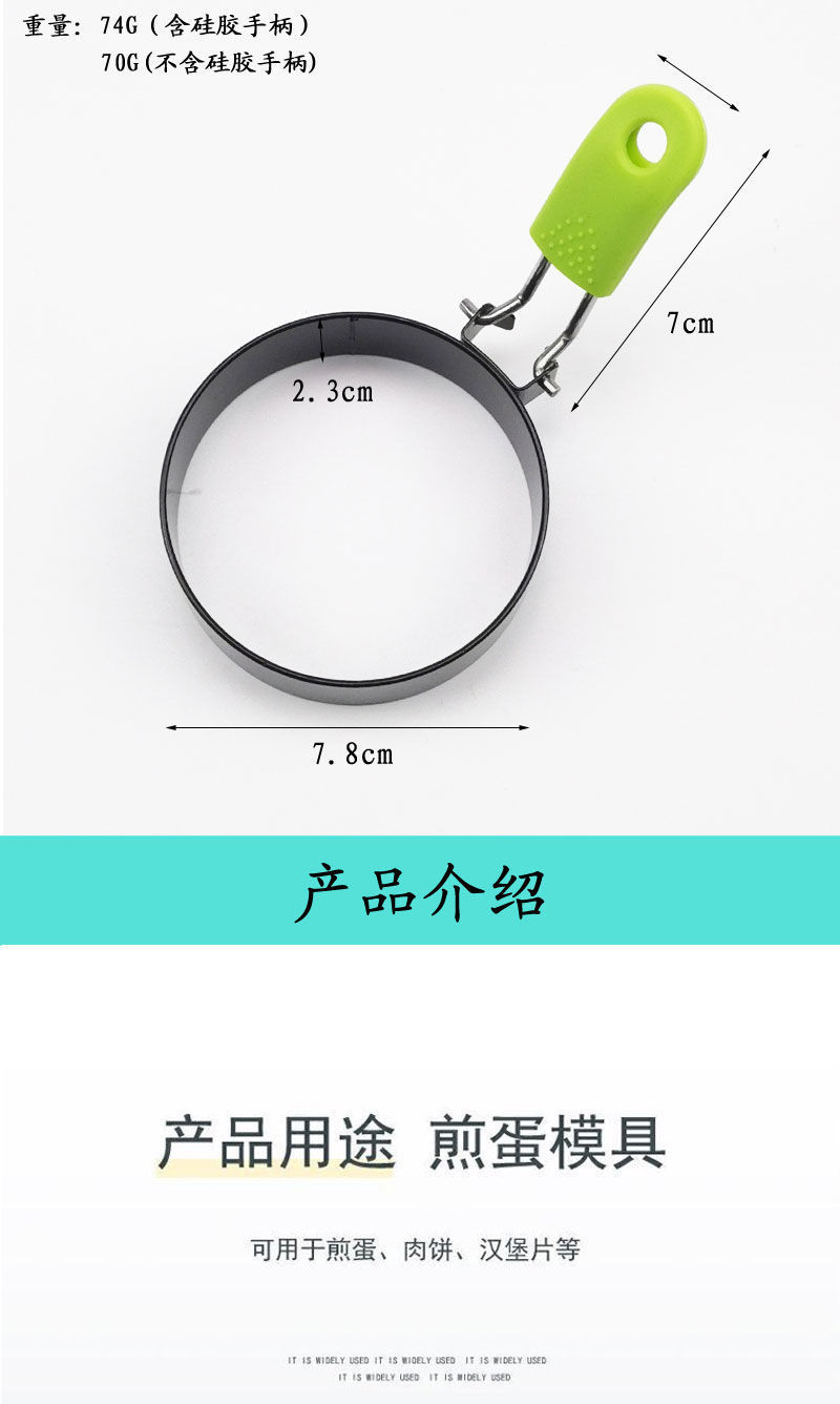 煎蛋器模具厂家不粘圆形蛋圈硅胶手柄蛋糕模不锈钢圆形煎蛋模批发