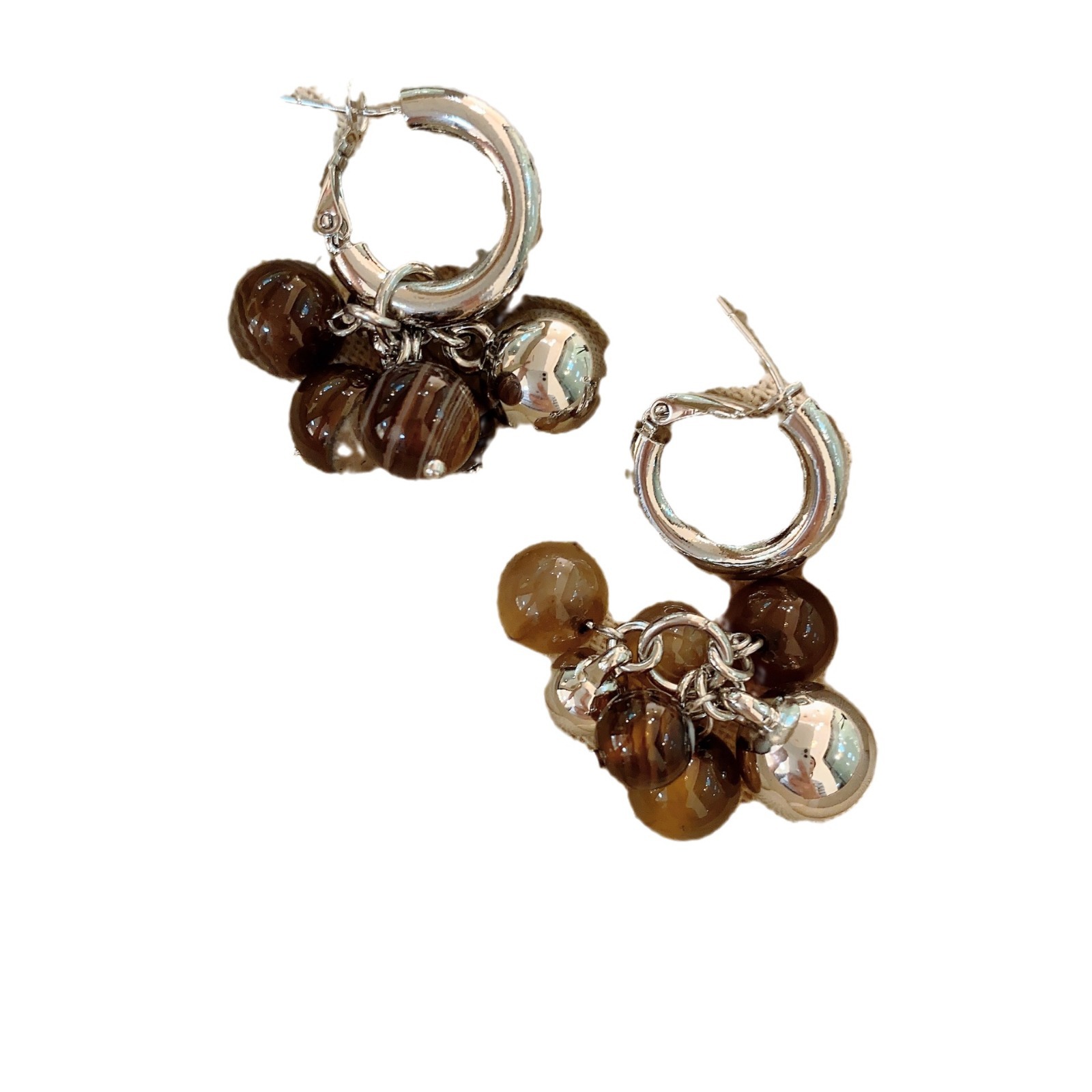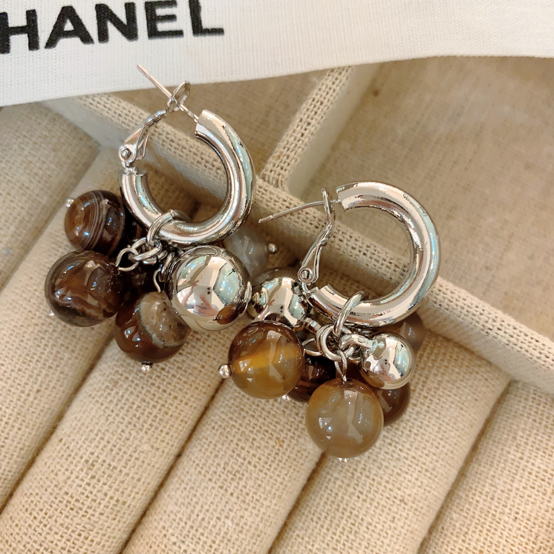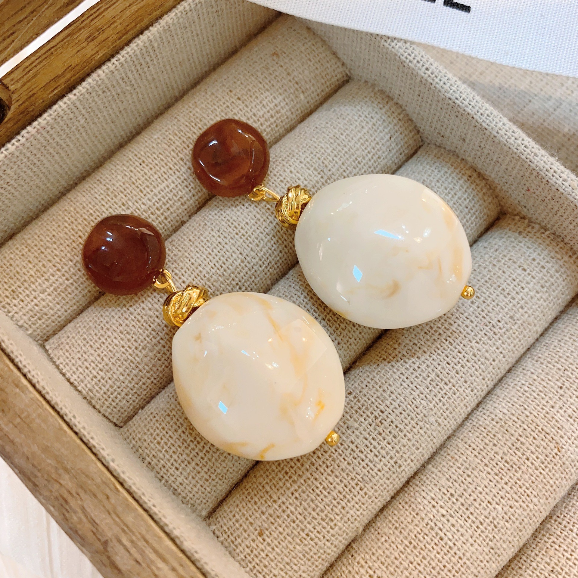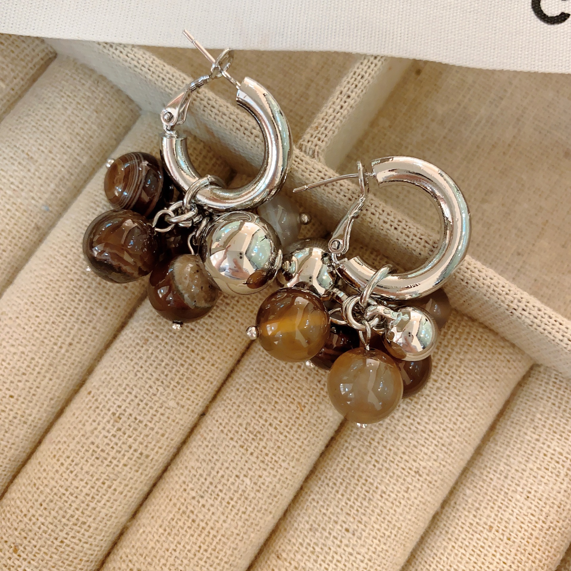 美拉德欧美复古咖色天然石圆环2023年新款小众设计气质耳钉耳扣女