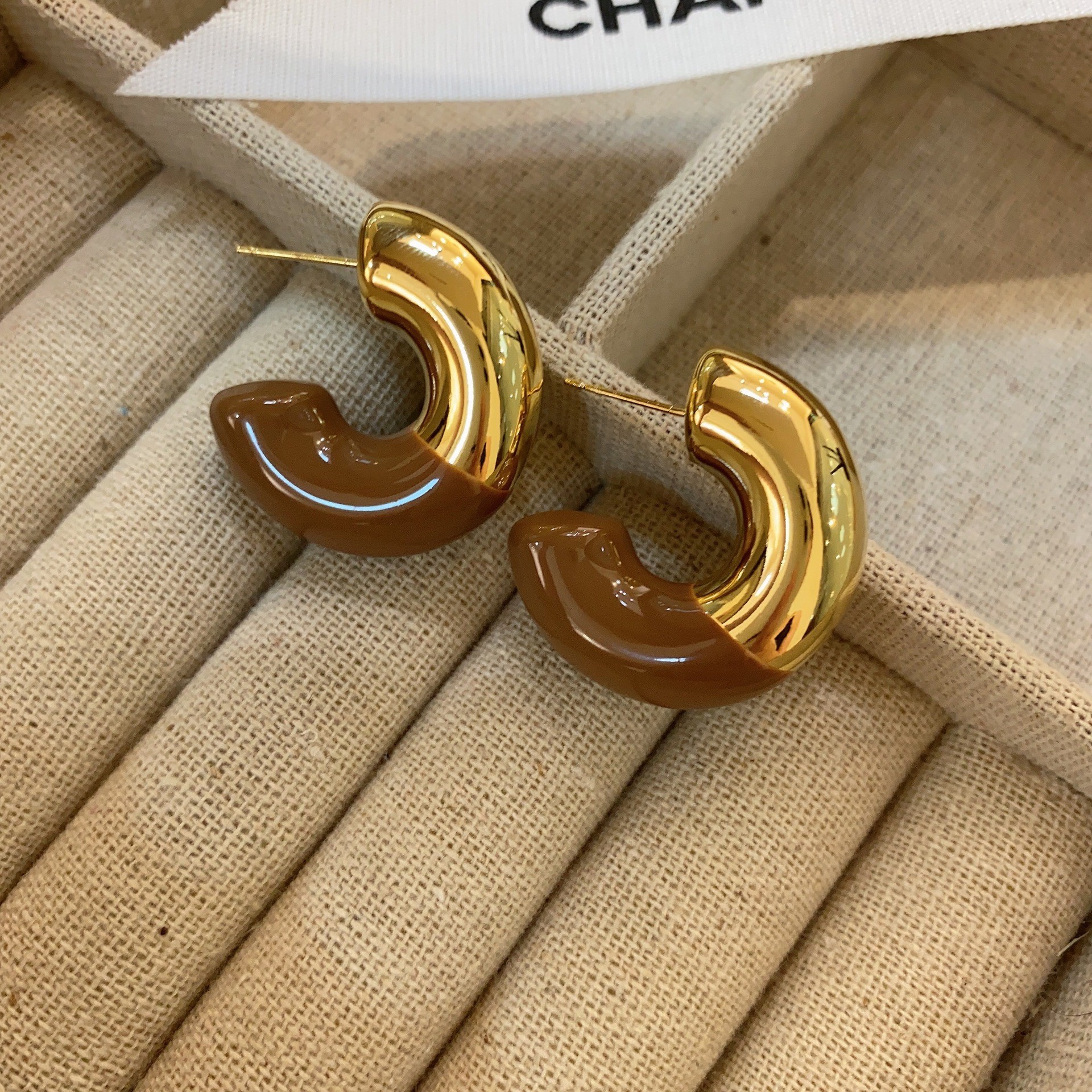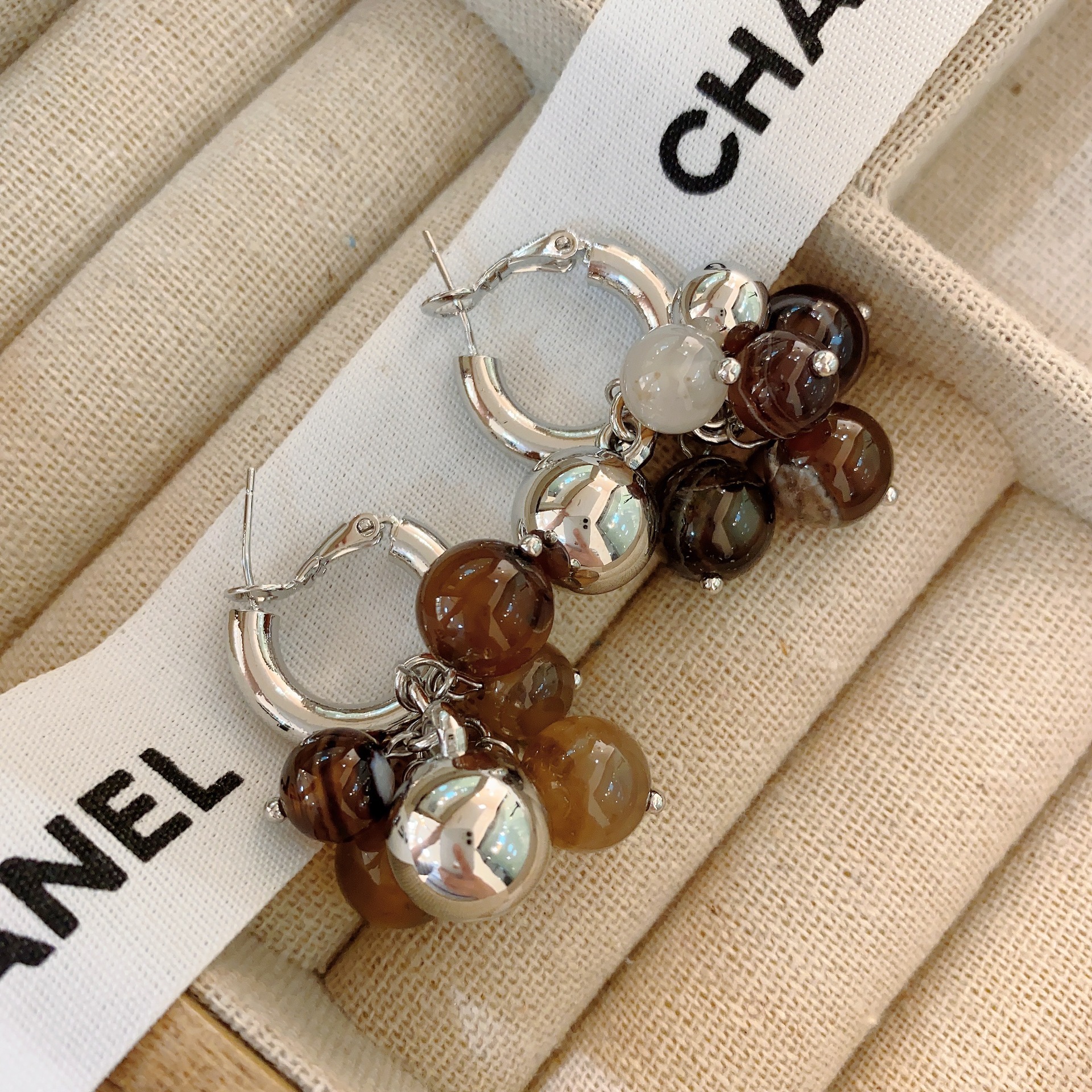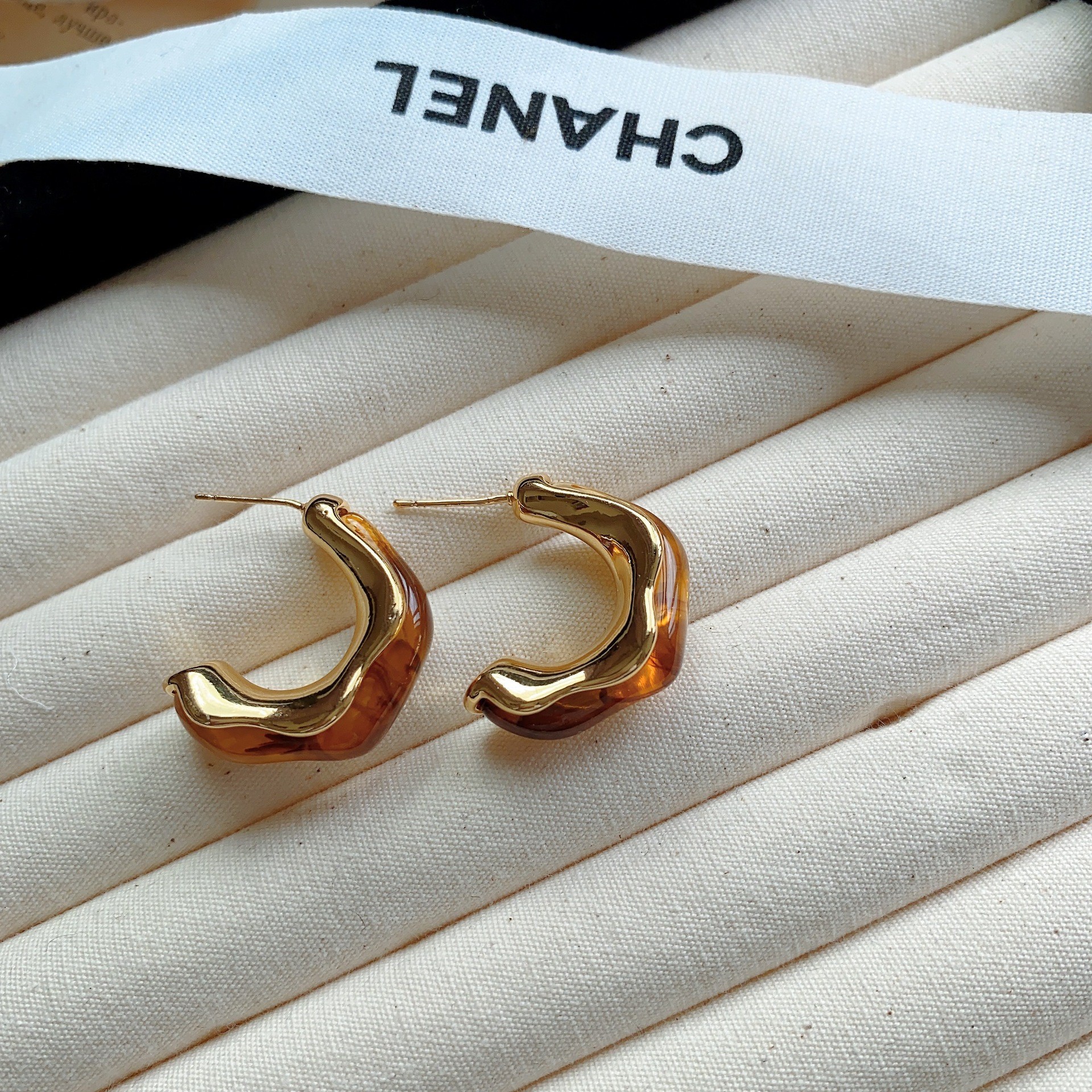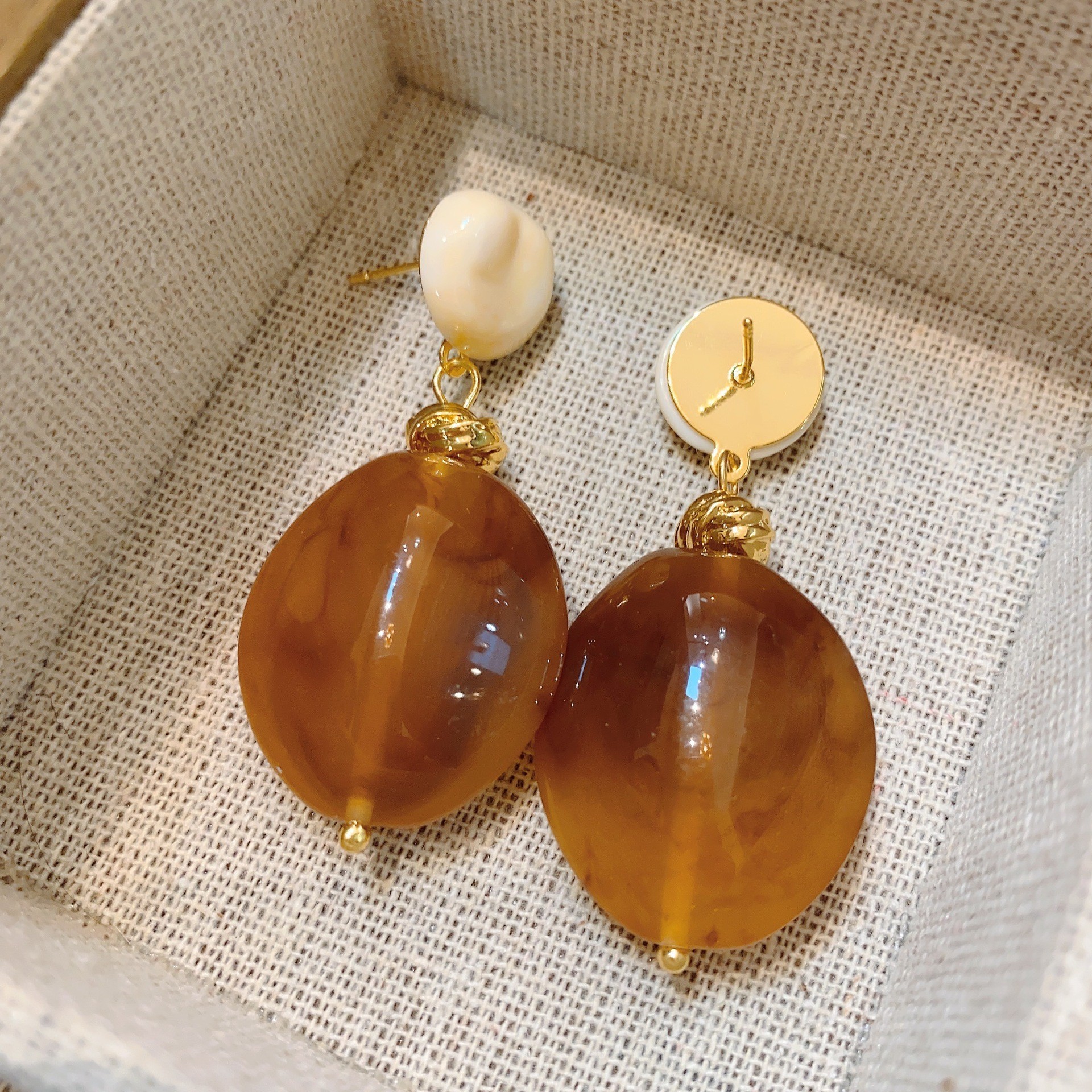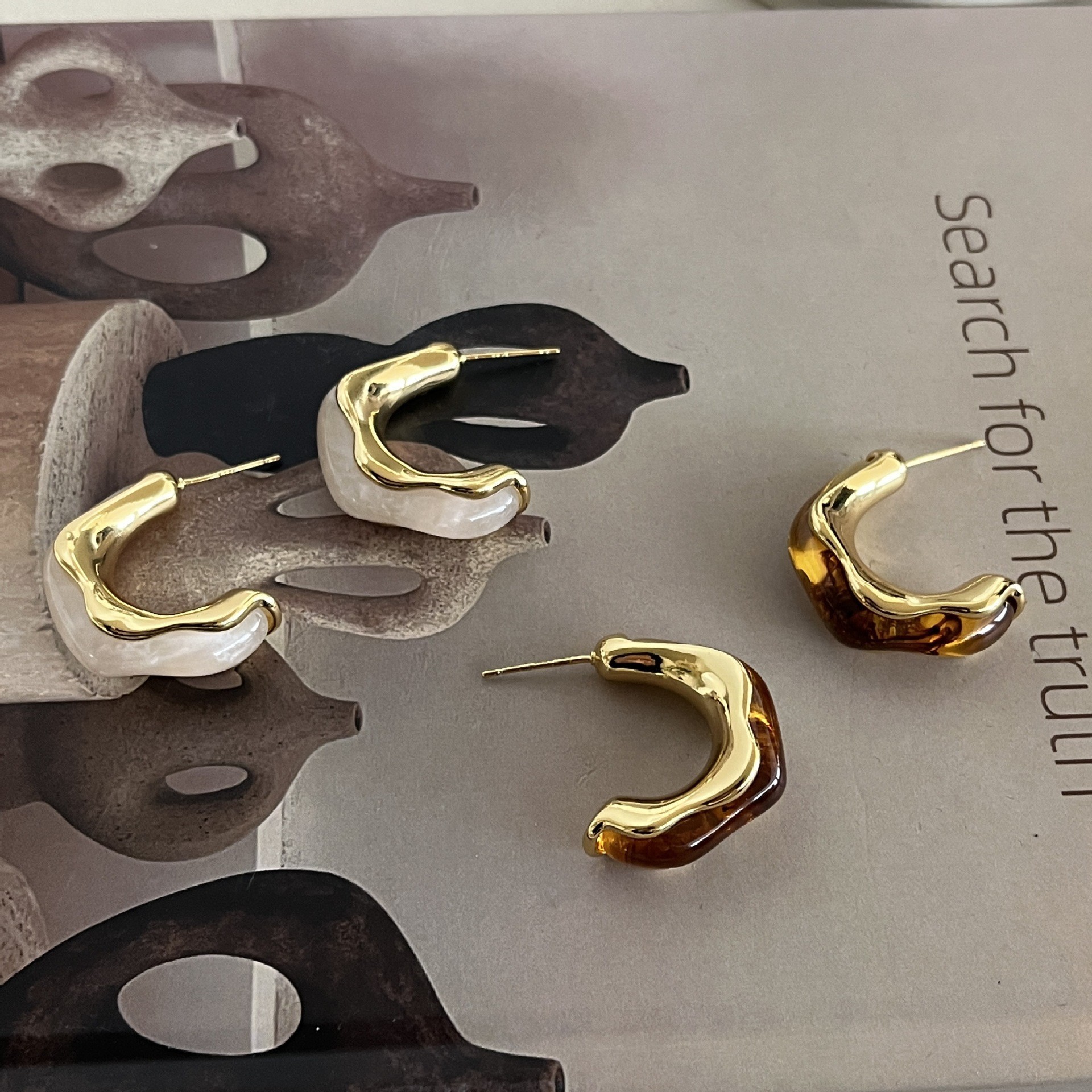 美拉德欧美复古咖色天然石圆环2023年新款小众设计气质耳钉耳扣女