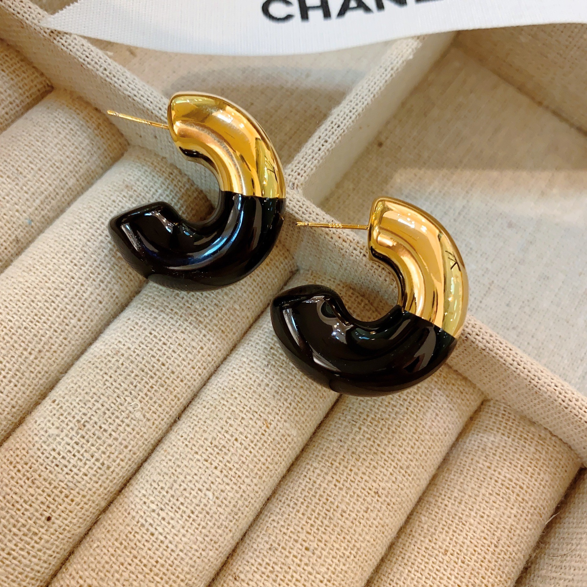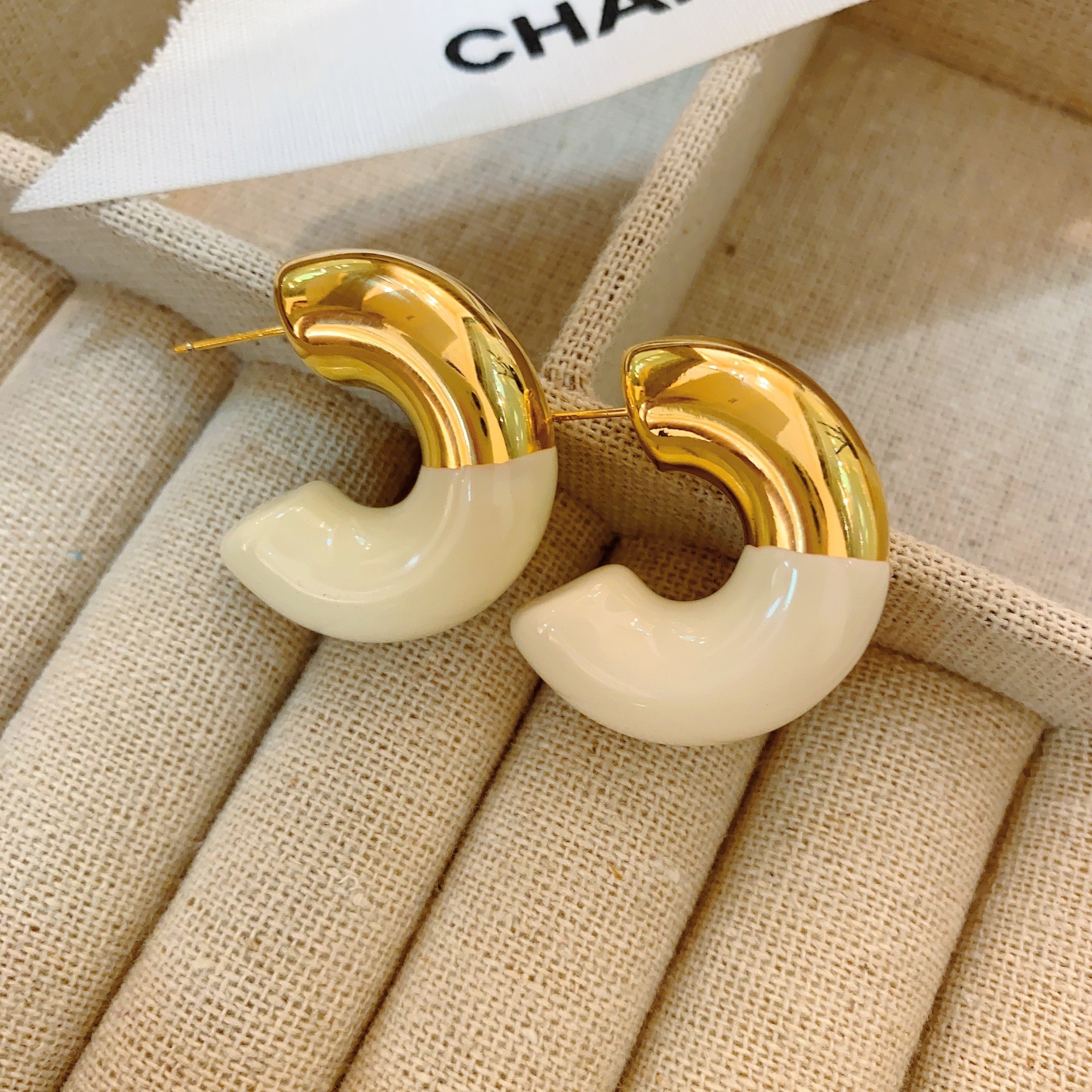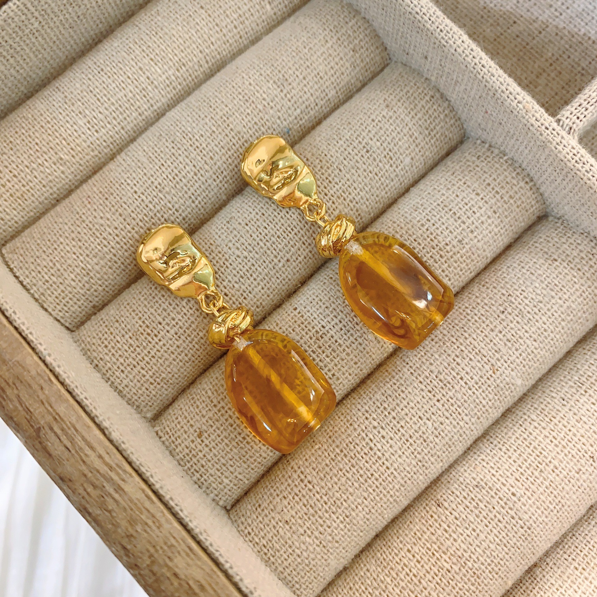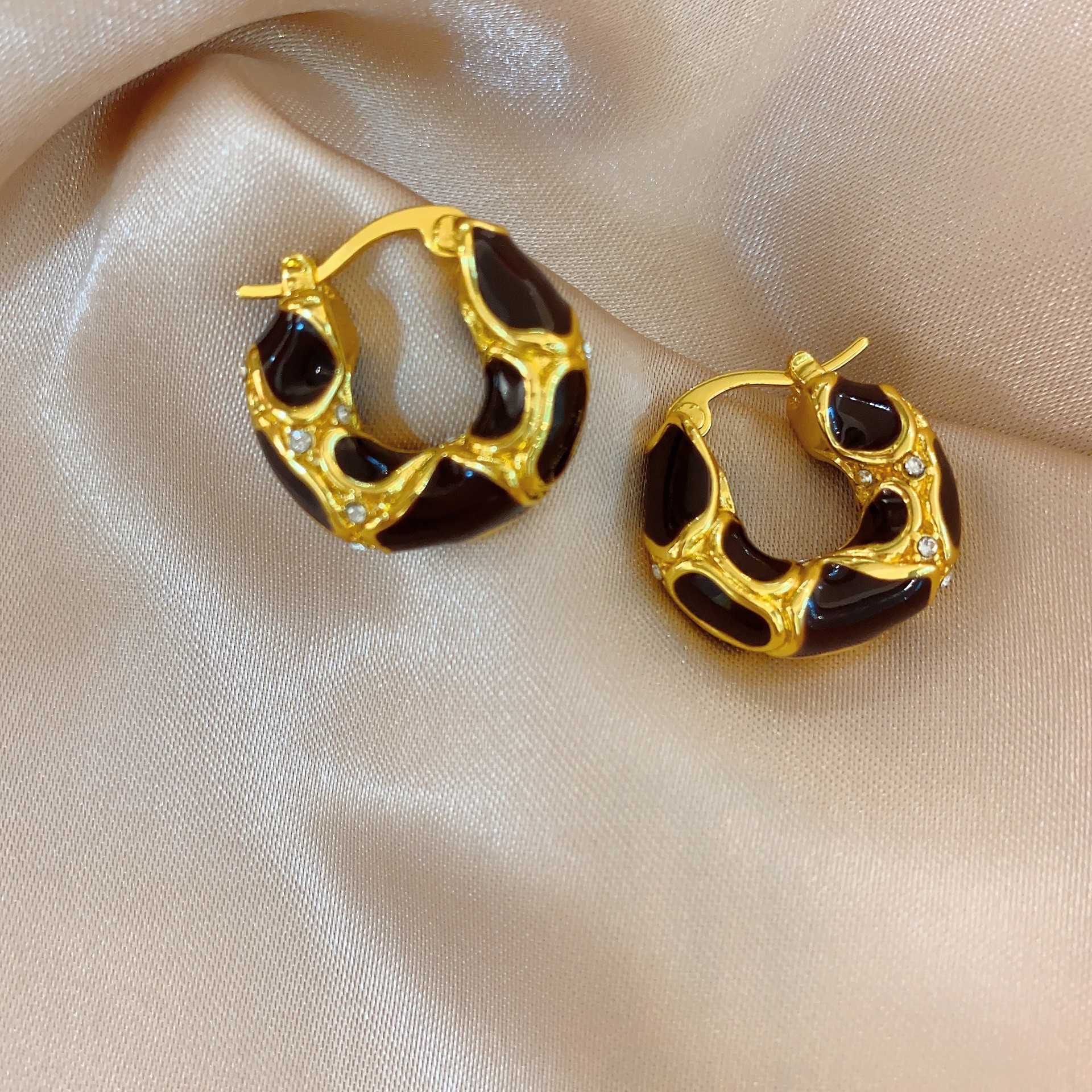 美拉德欧美复古咖色天然石圆环2023年新款小众设计气质耳钉耳扣女