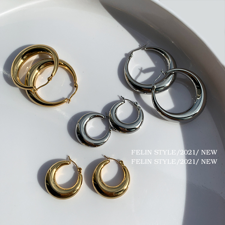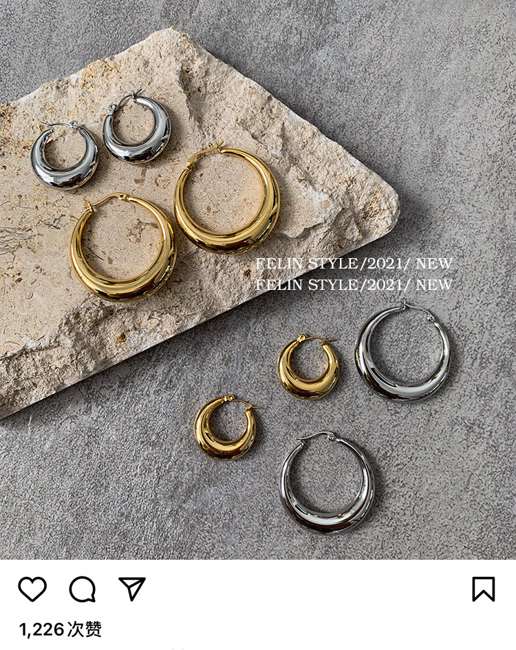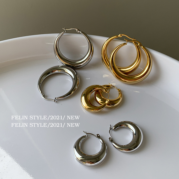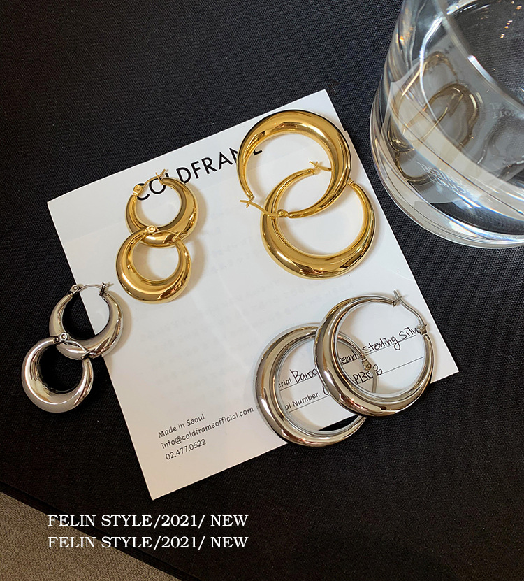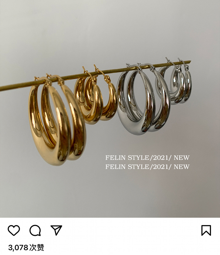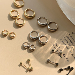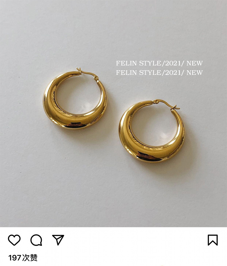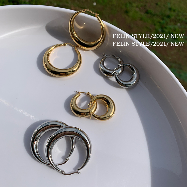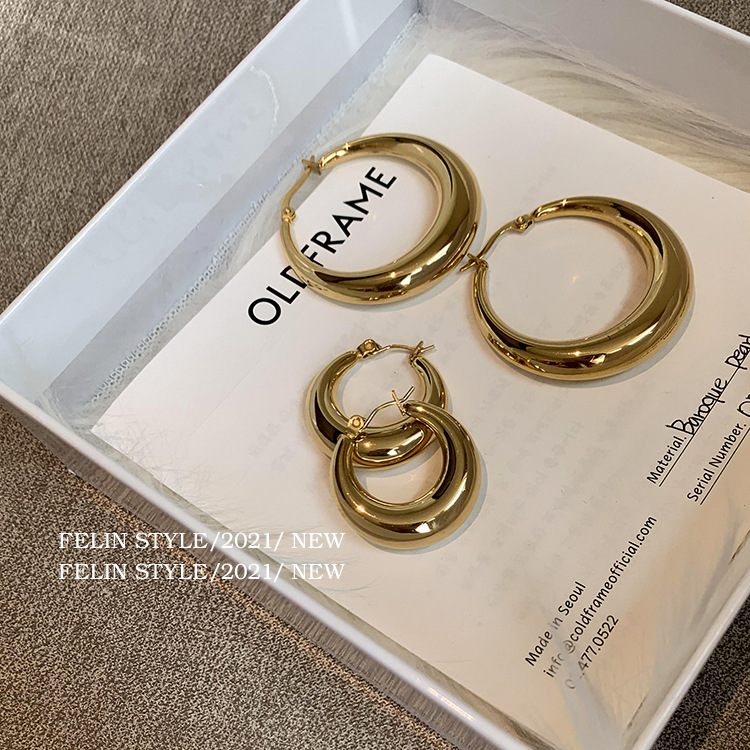 欧美ins金属圆形圈圈耳环女气质简约小众设计感轻奢金色耳饰