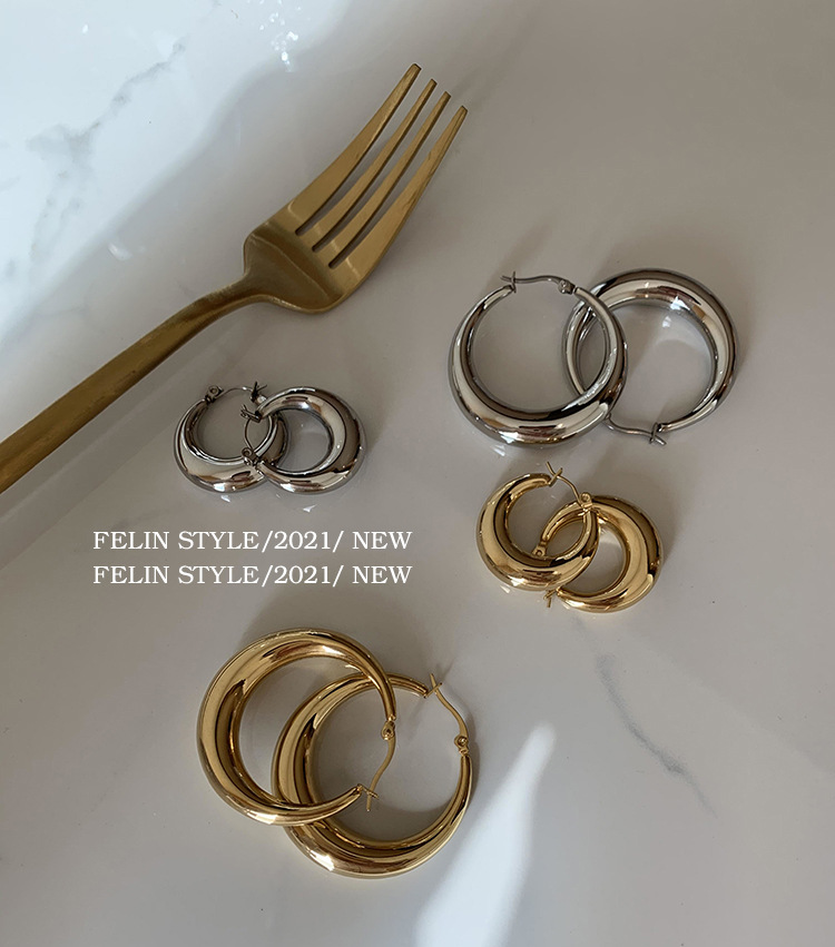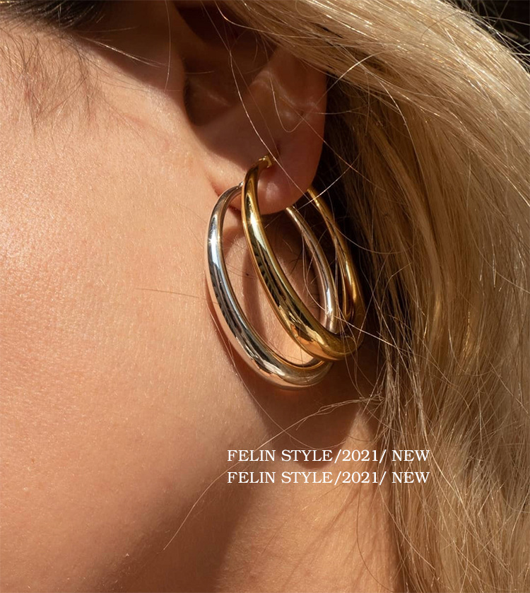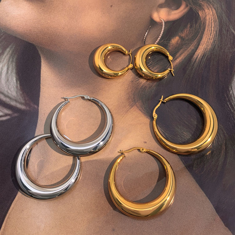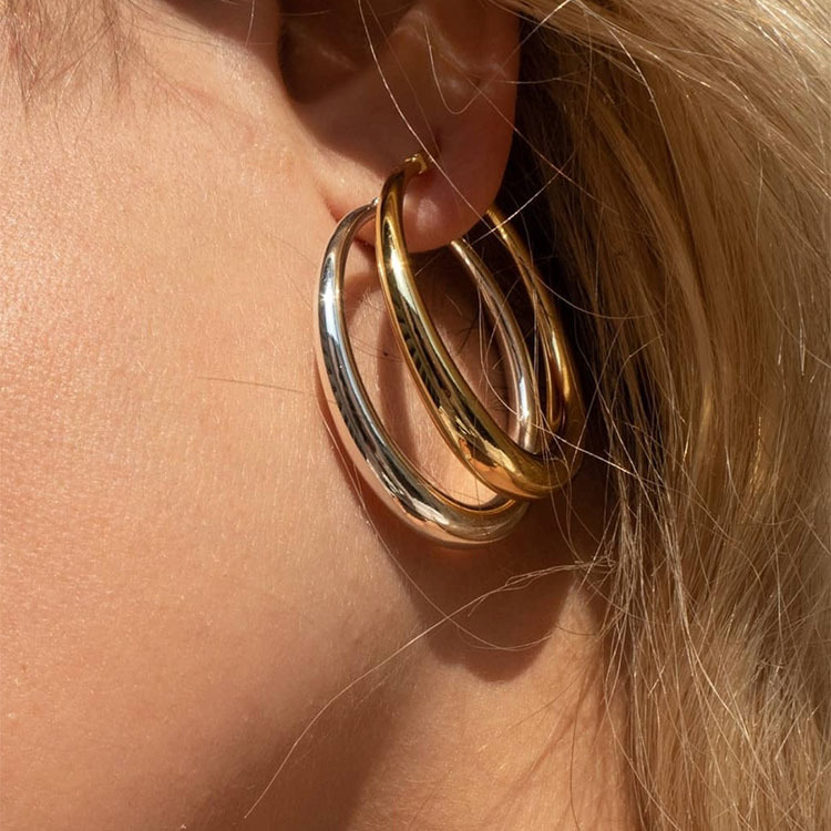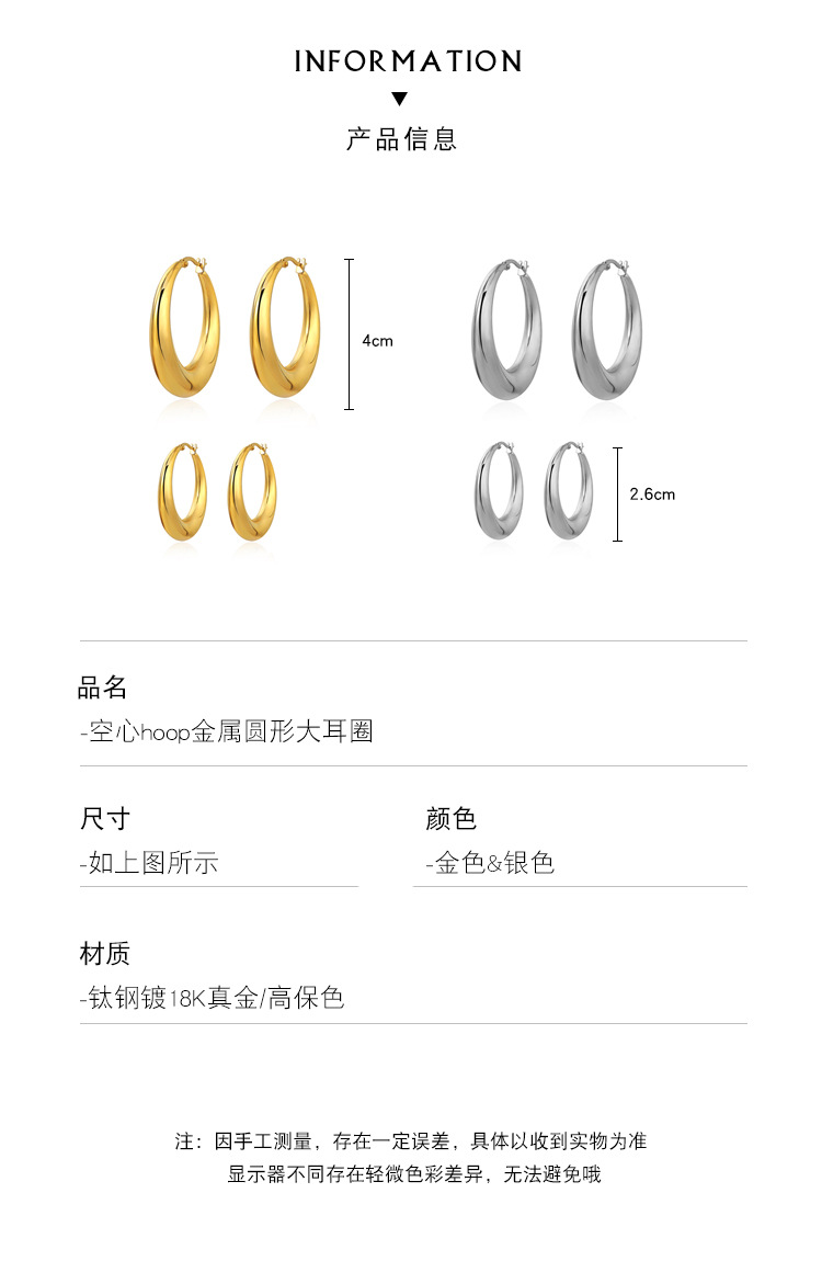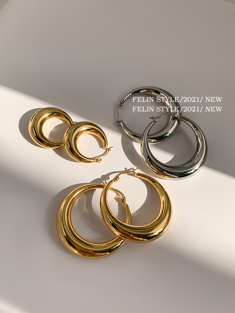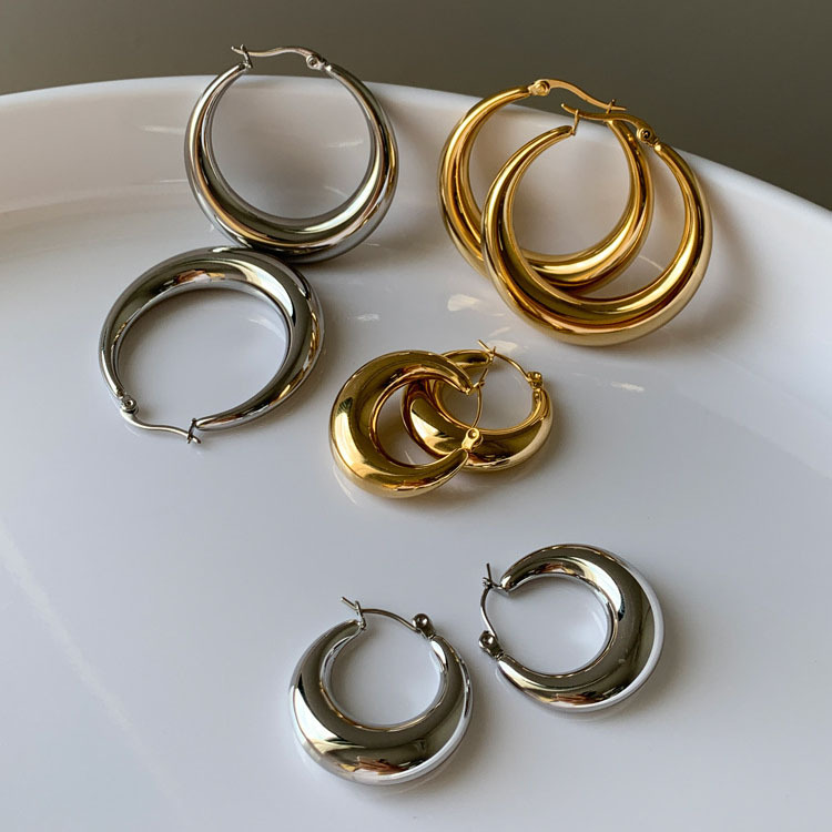 欧美ins金属圆形圈圈耳环女气质简约小众设计感轻奢金色耳饰
