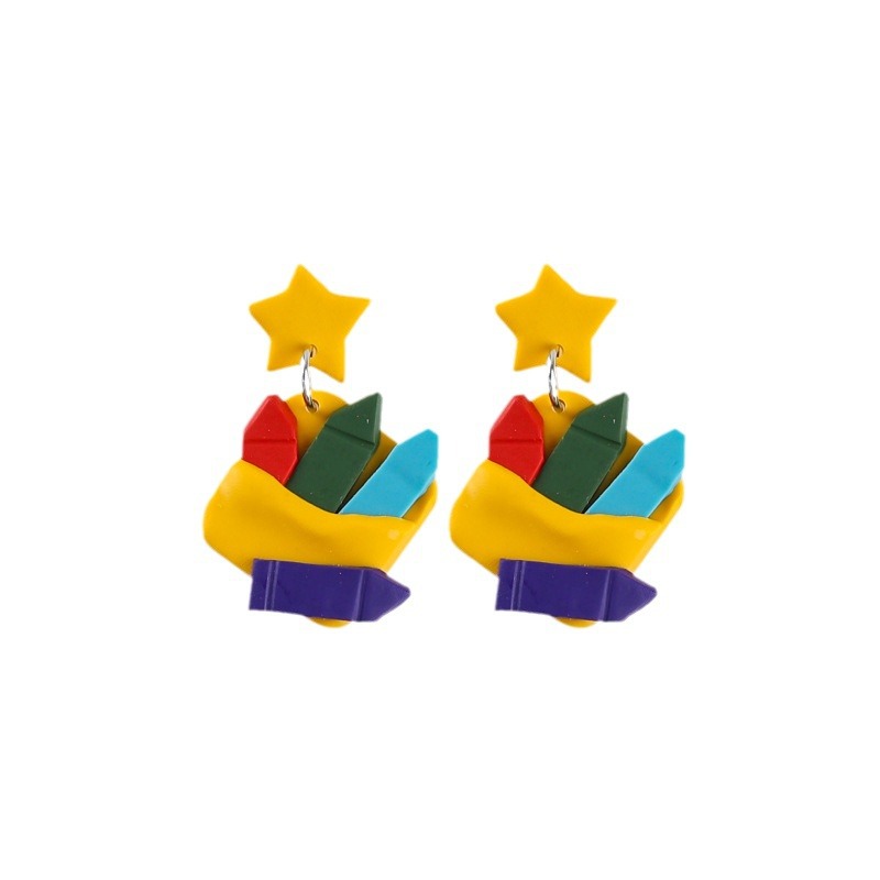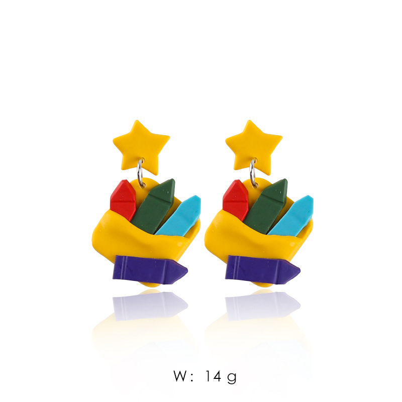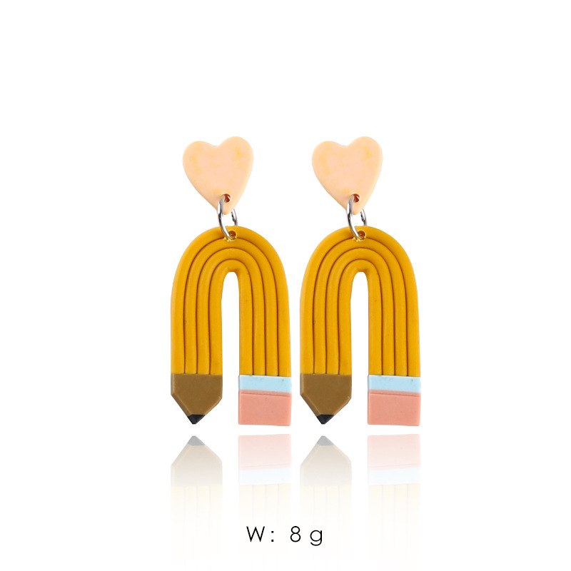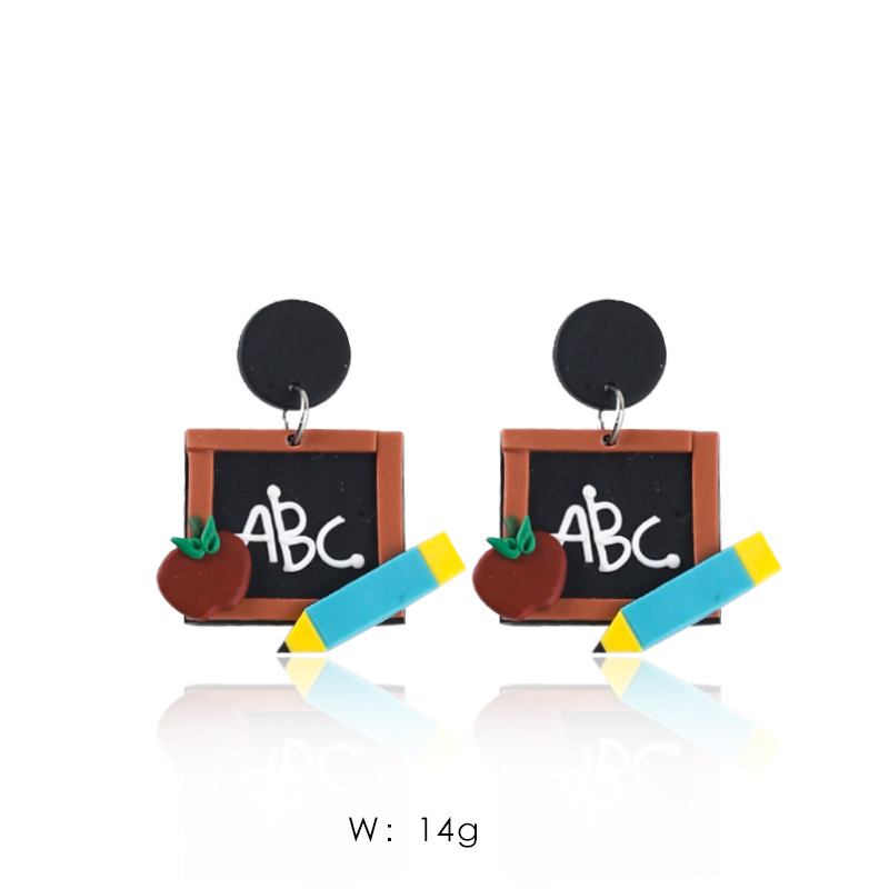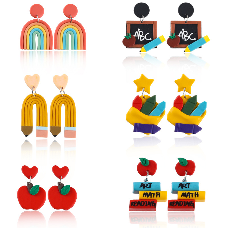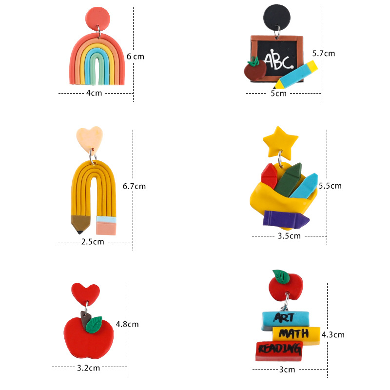 欧美爆款彩虹迷你黑板彩色英文书彩色铅笔红彤彤苹果软陶手工耳坠