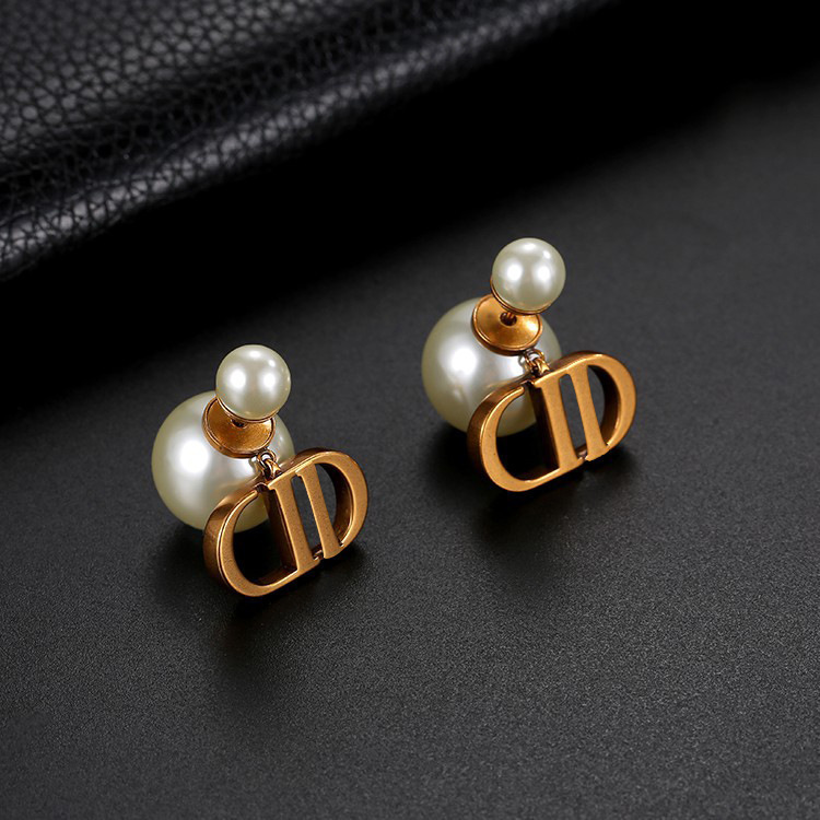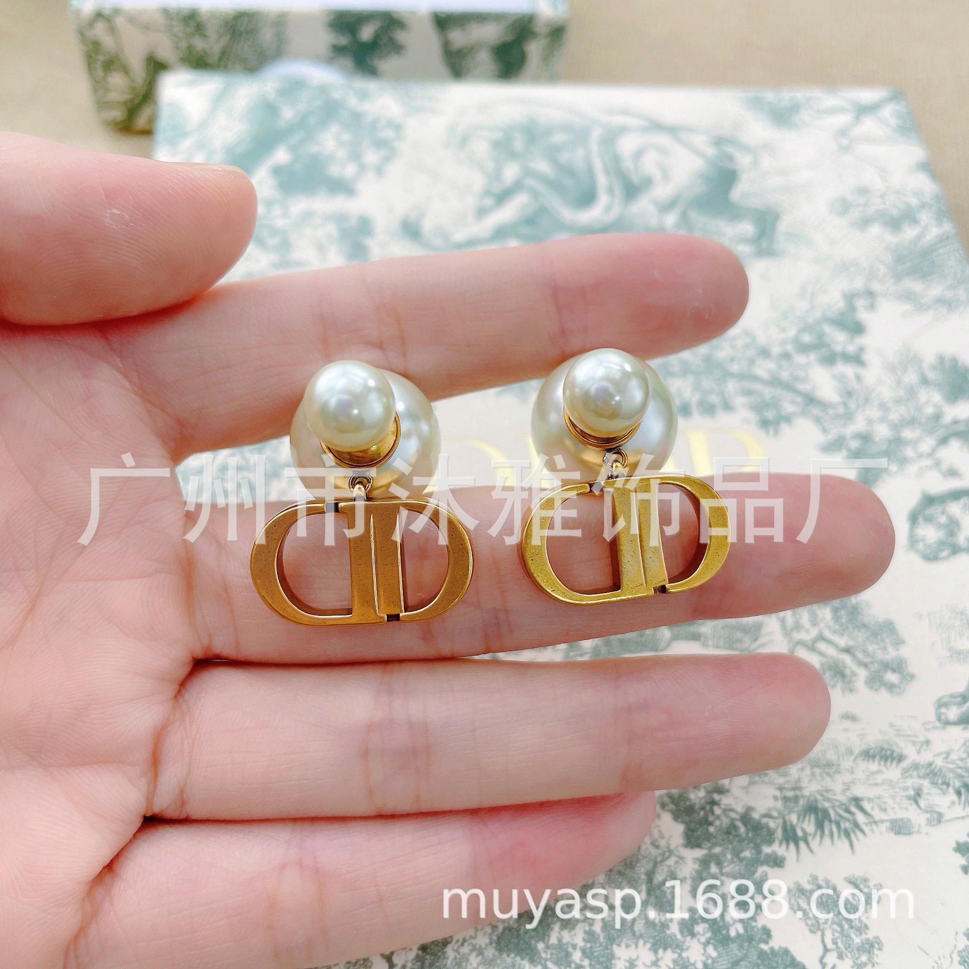 跨境迪家大小珍珠耳钉D家珍珠耳环欧美复古轻奢耳坠字母耳钉耳挂