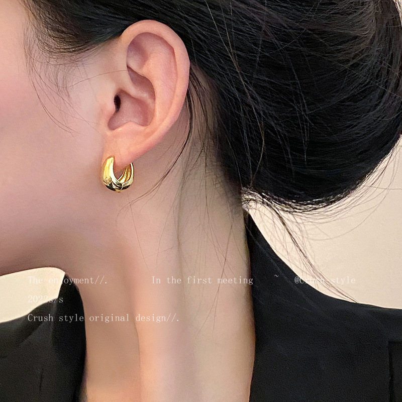 欧美风~圆孤金属素圈耳圈女秋冬小众设计感高级极简秋冬百搭耳饰