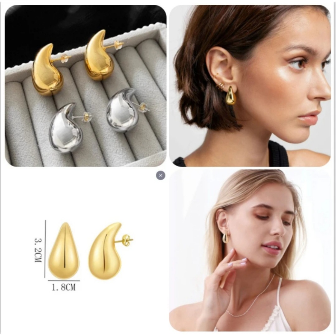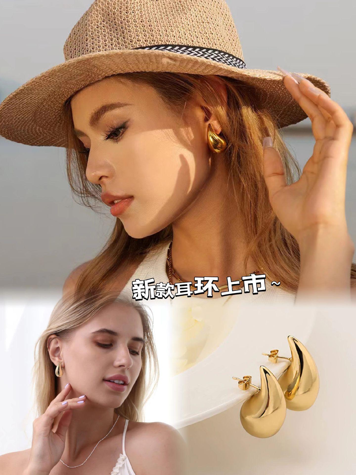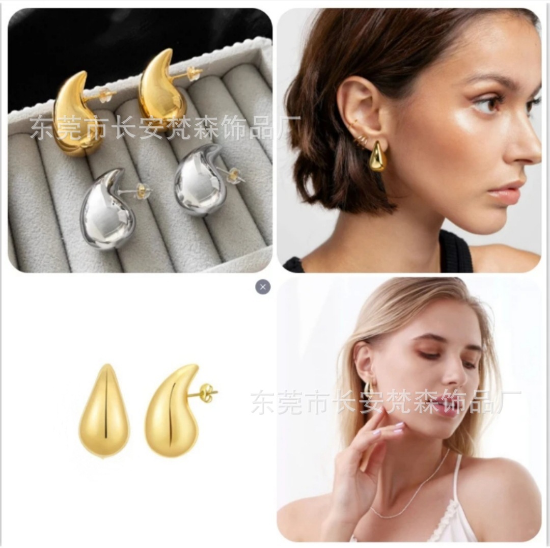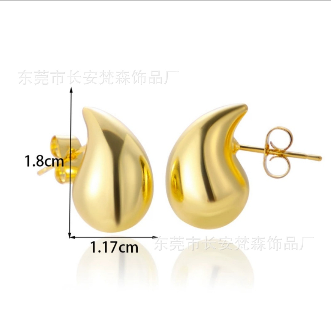 亚马逊欧美爆款INS风 不锈钢实心水滴耳环女生 18K金电镀时尚耳饰