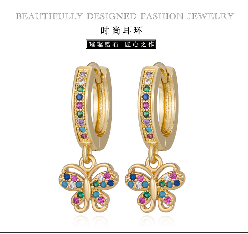 亚马逊新款彩宝耳环时尚大象耳扣锆石镶嵌乌龟耳坠蝴蝶人鱼尾耳饰