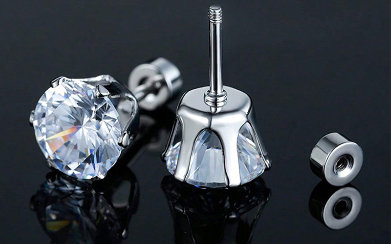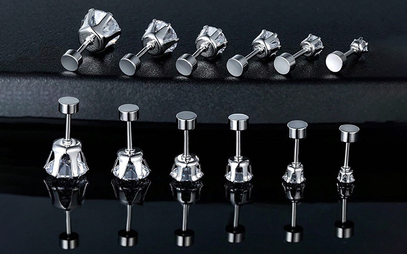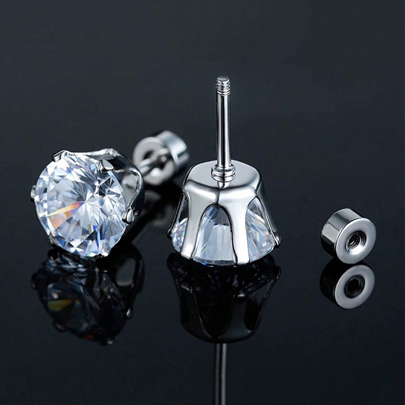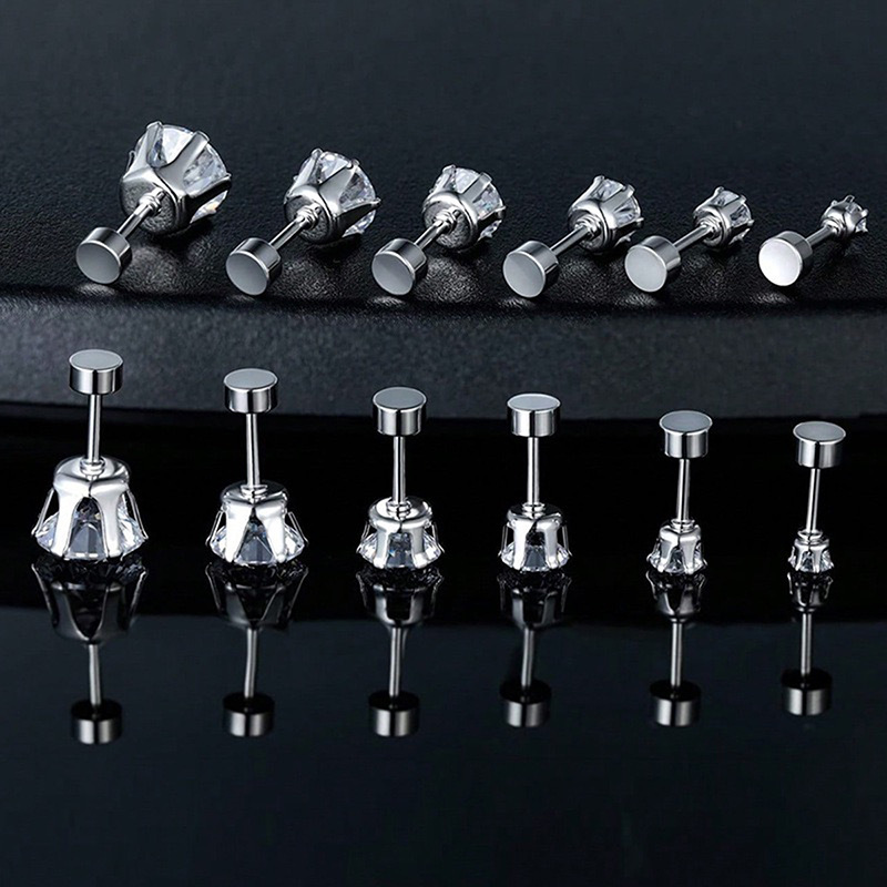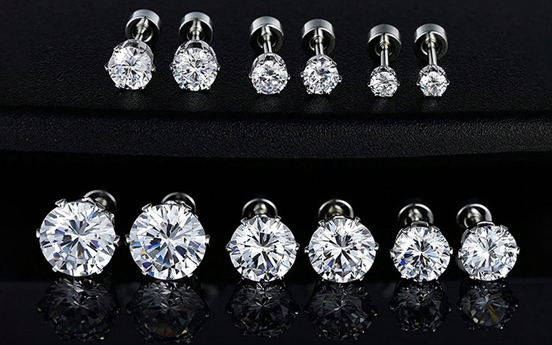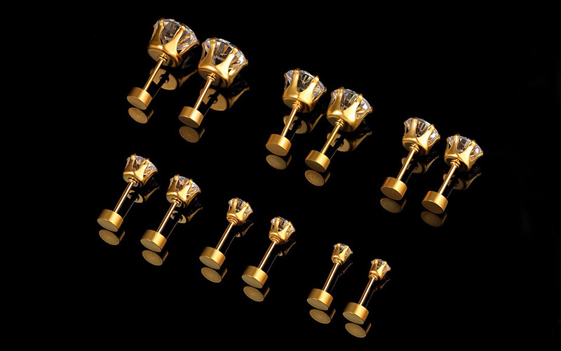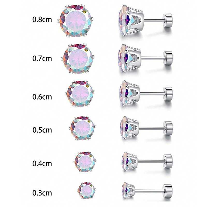 欧美时尚钛钢细针六爪圆形18k镀金锆石耳钉男女通用耳环穿刺饰品