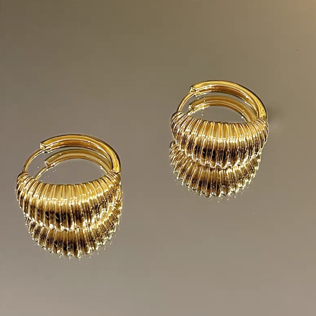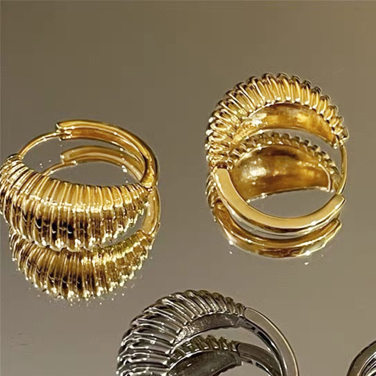 欧美跨境牛角包复古金属耳圈金色小耳钉冷淡风潮小巧高级感耳扣女