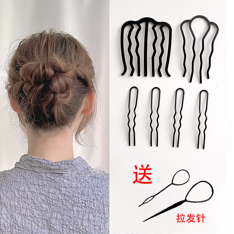 盘发六件套发簪简约气质丸子头插梳高级感U形发卡百搭时尚发插