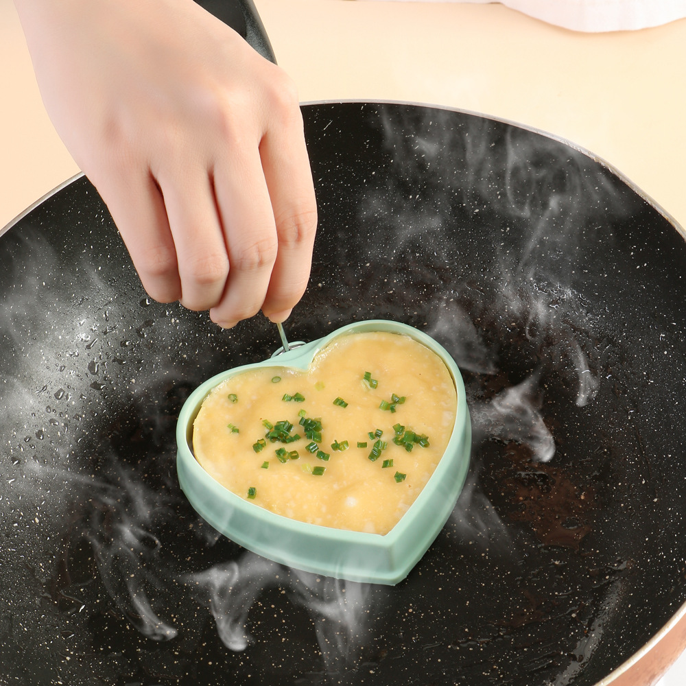 创意DIY硅胶煎蛋模具 圆形煎蛋器带手柄 煎鸡蛋荷包蛋爱心形模具