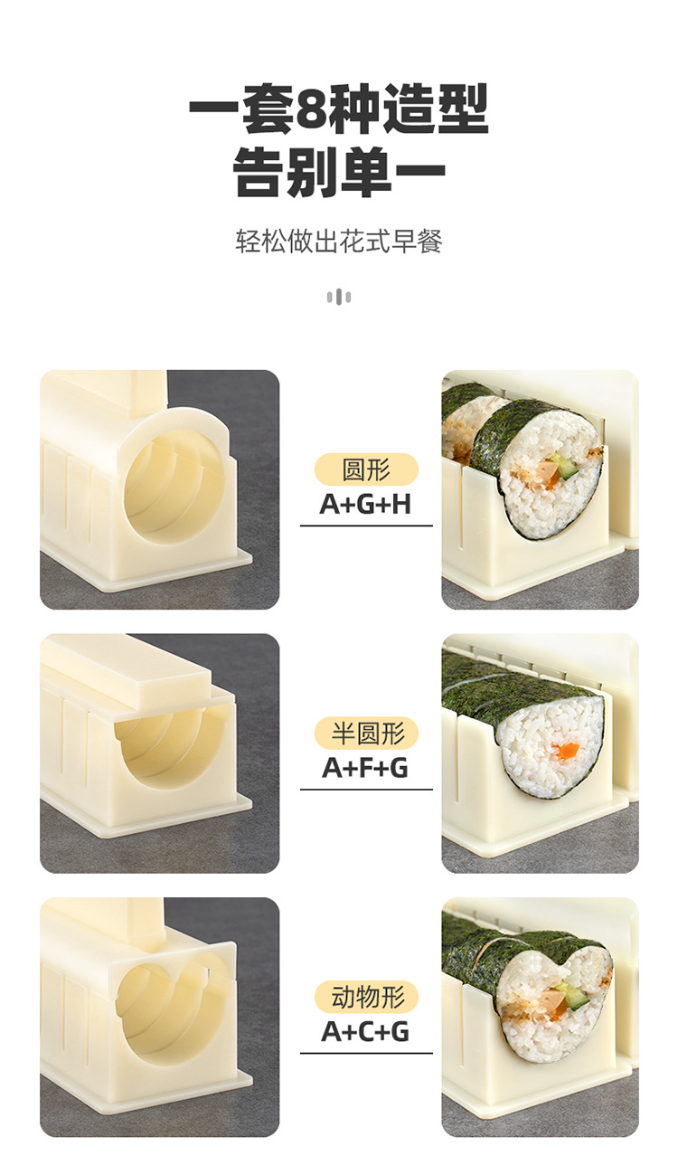 | seaweed roll sushi machine (8-in-one set) +10 pieces seaweed(海苔卷寿司器(8合一套装)+10片海苔) | USD $11.53 | 199 piece available |