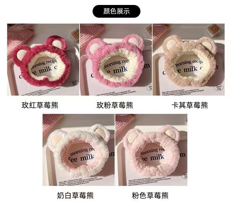 爆款草莓熊三件套洗脸束发带手腕带防水防湿神器发箍女敷面膜头饰