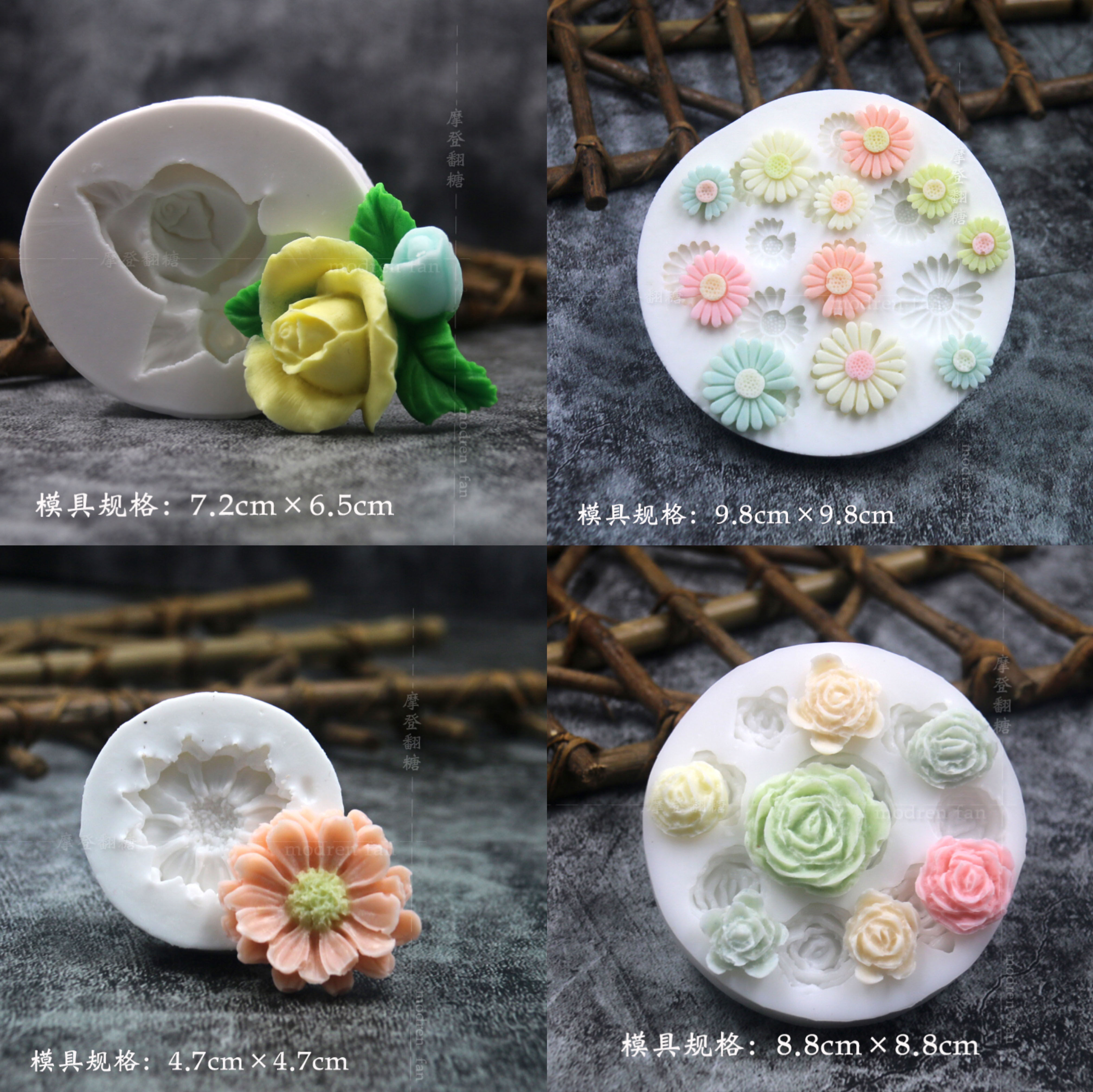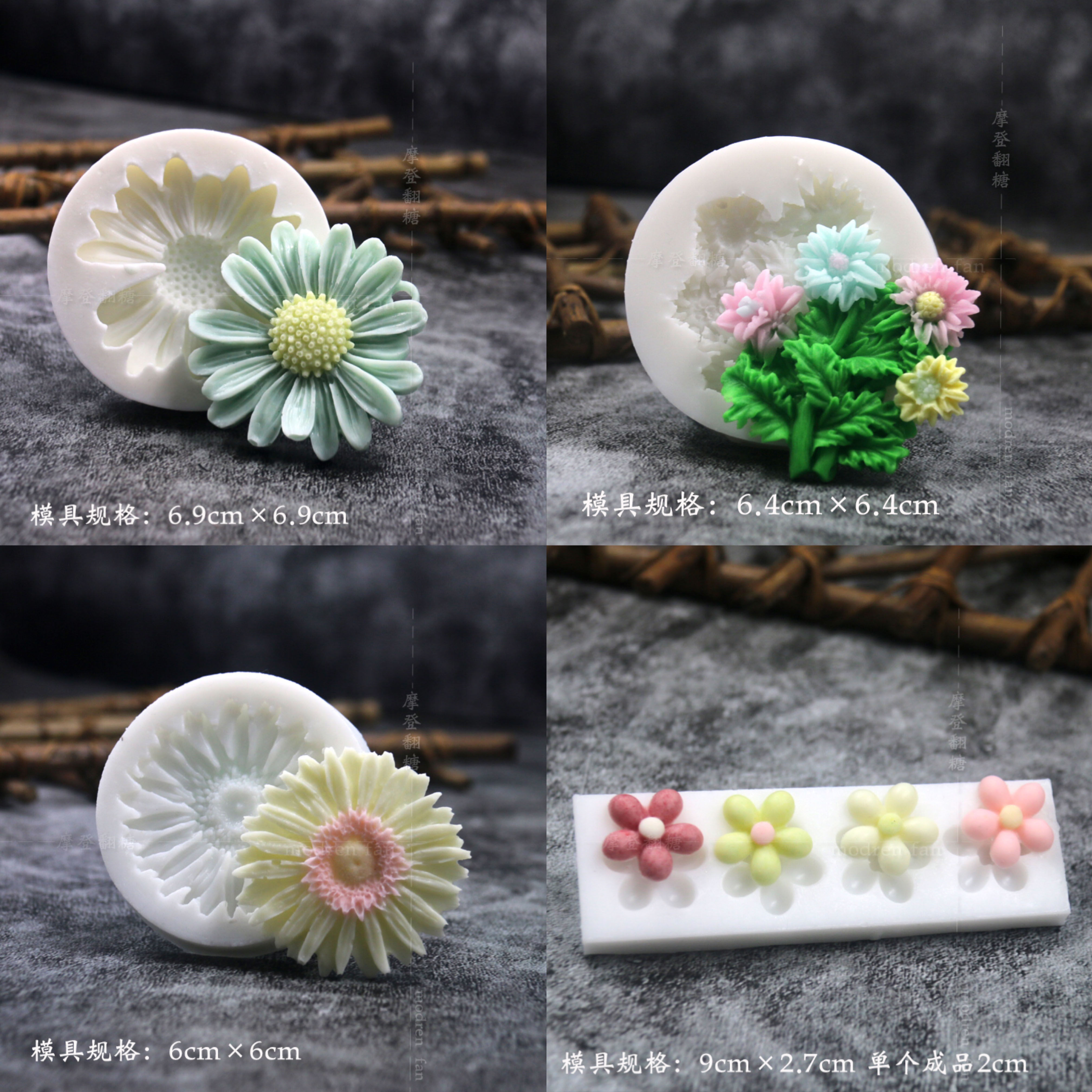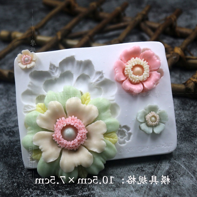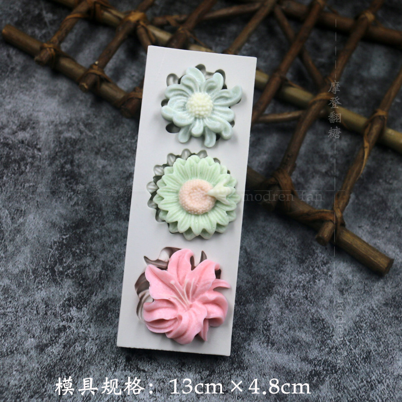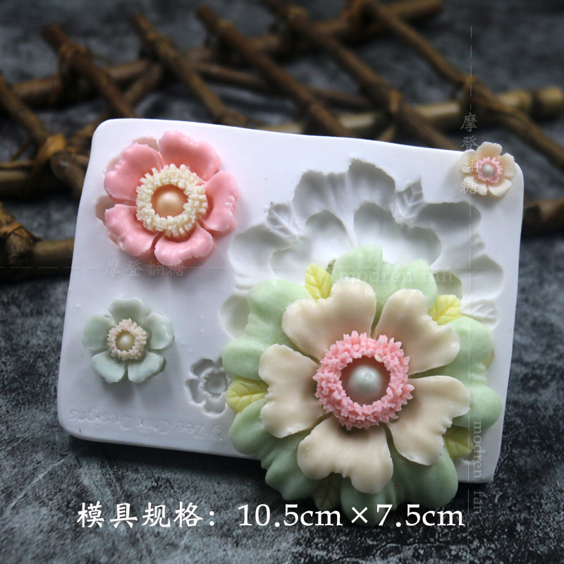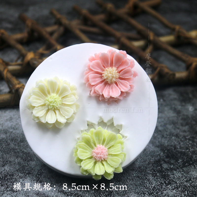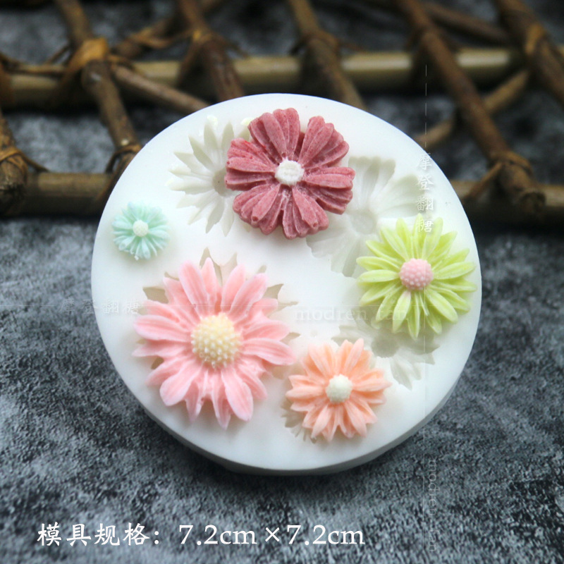 批发摩登翻糖花朵硅胶模具玫瑰菊花雏菊绣球花巧克力黏土