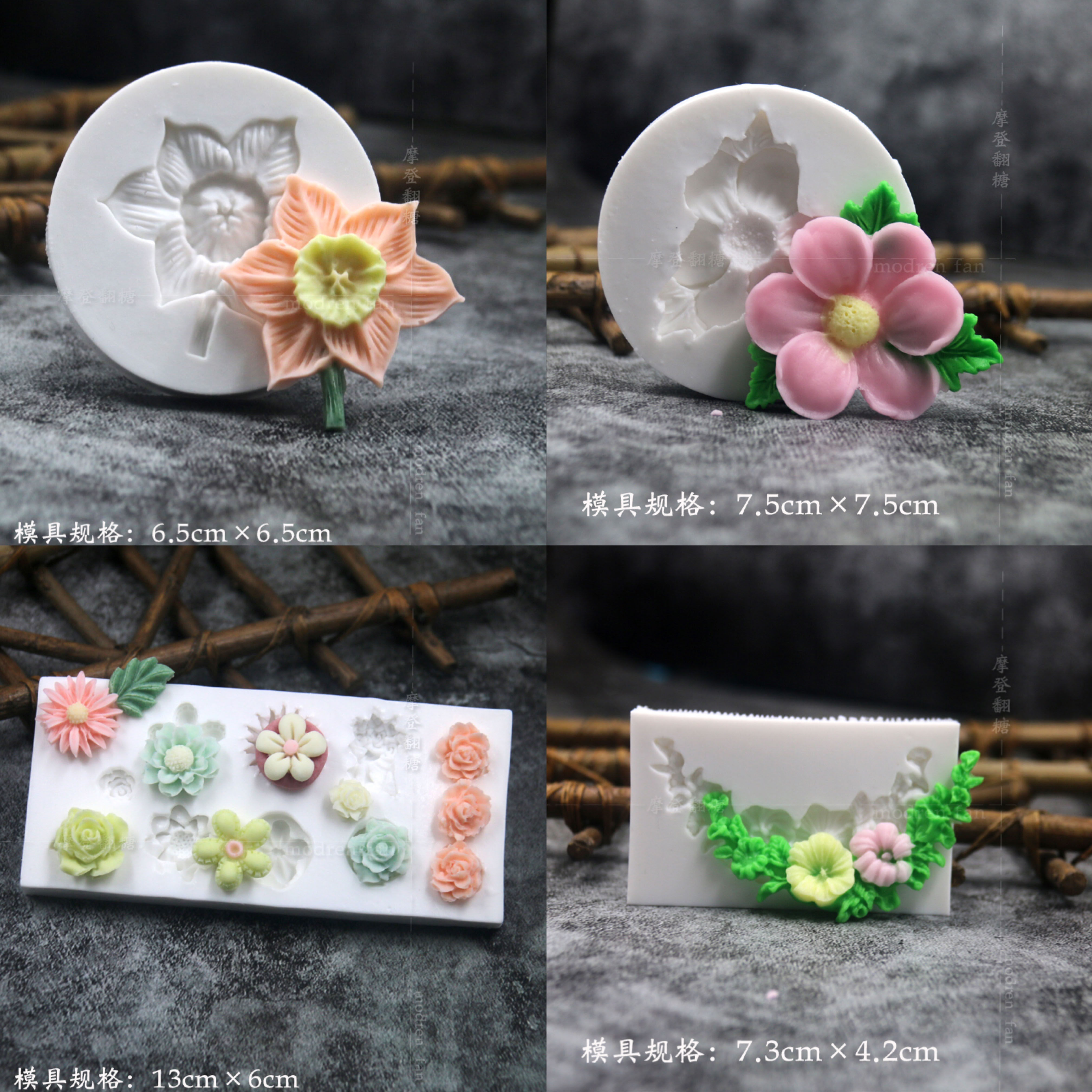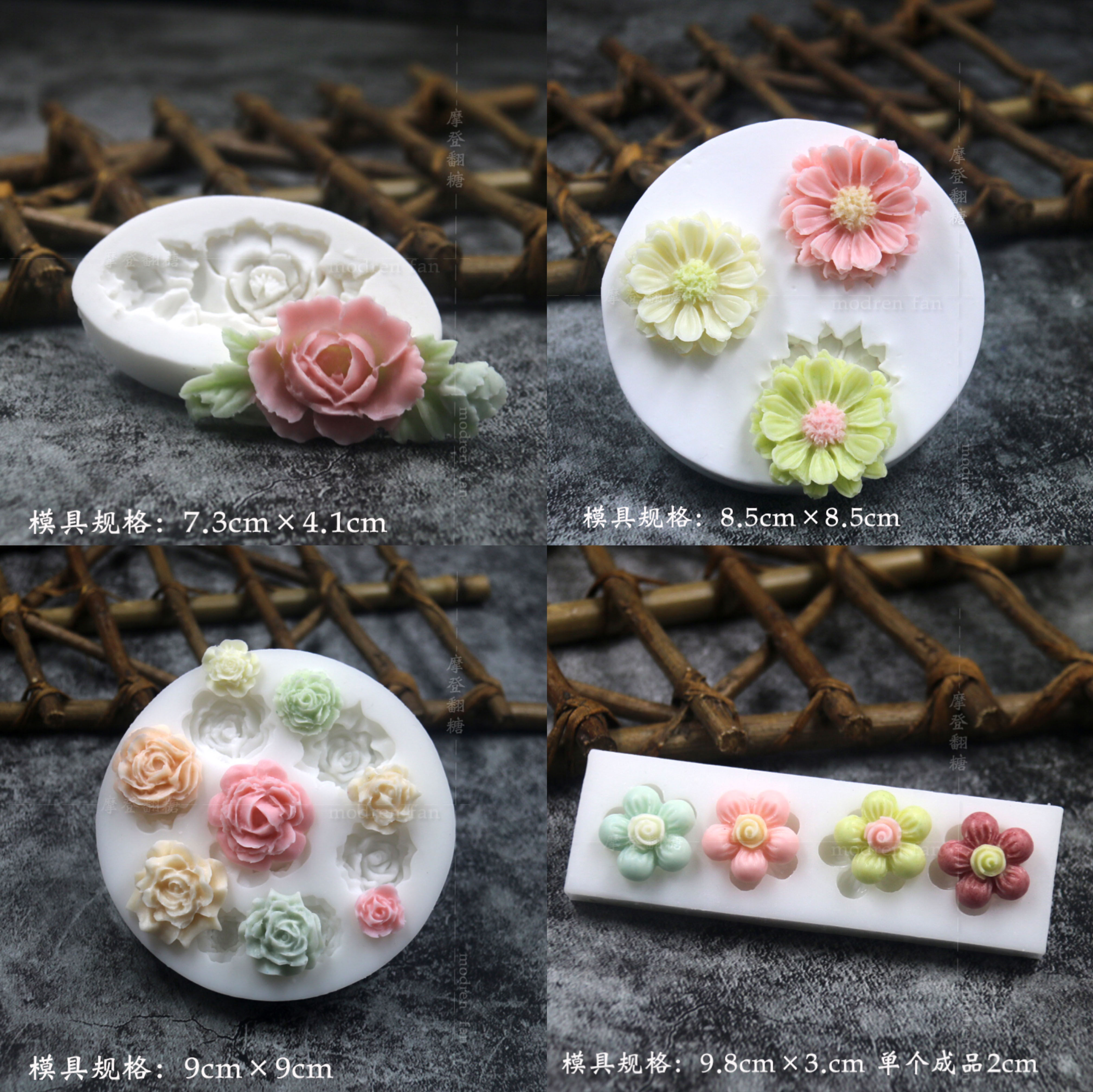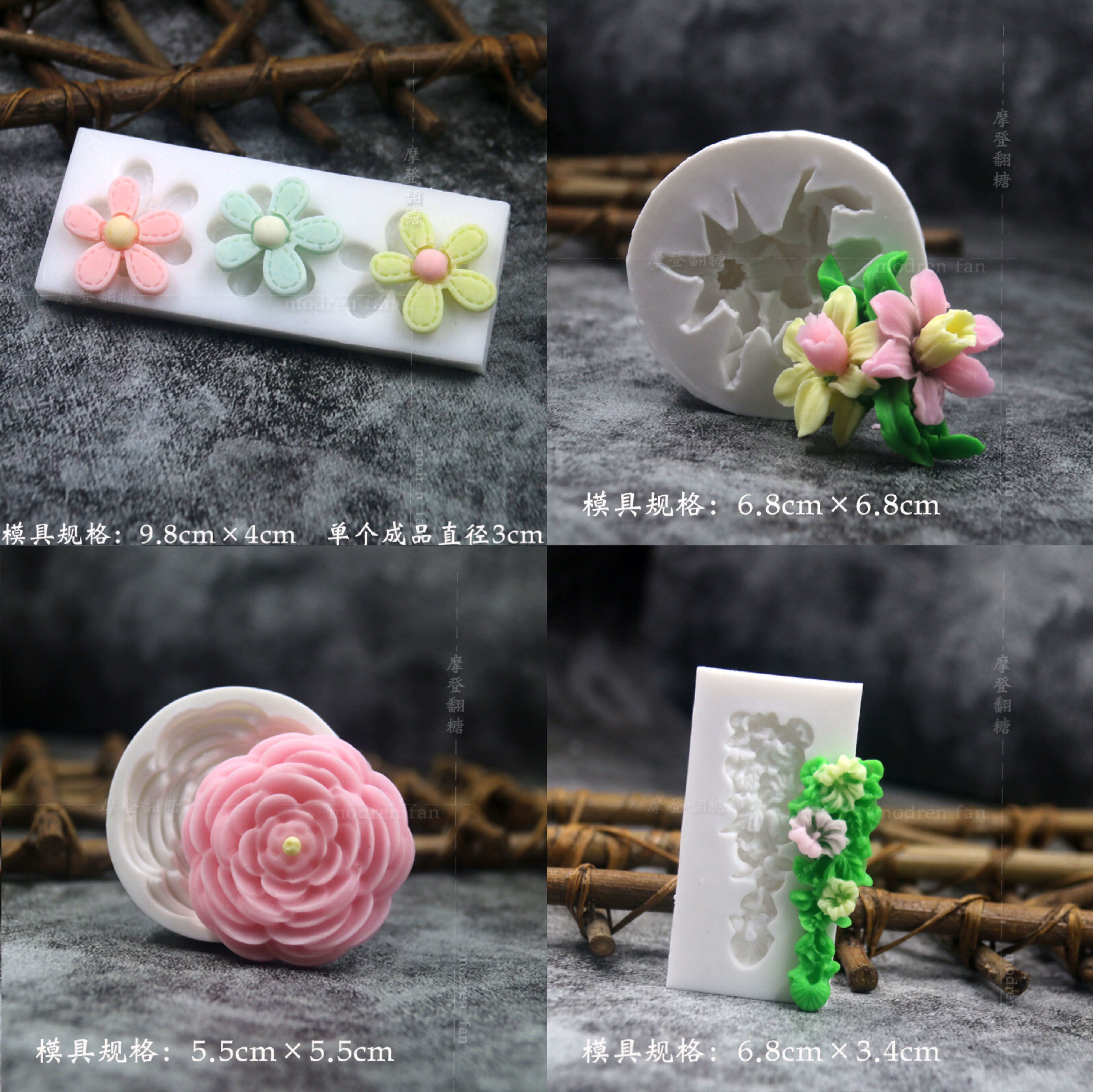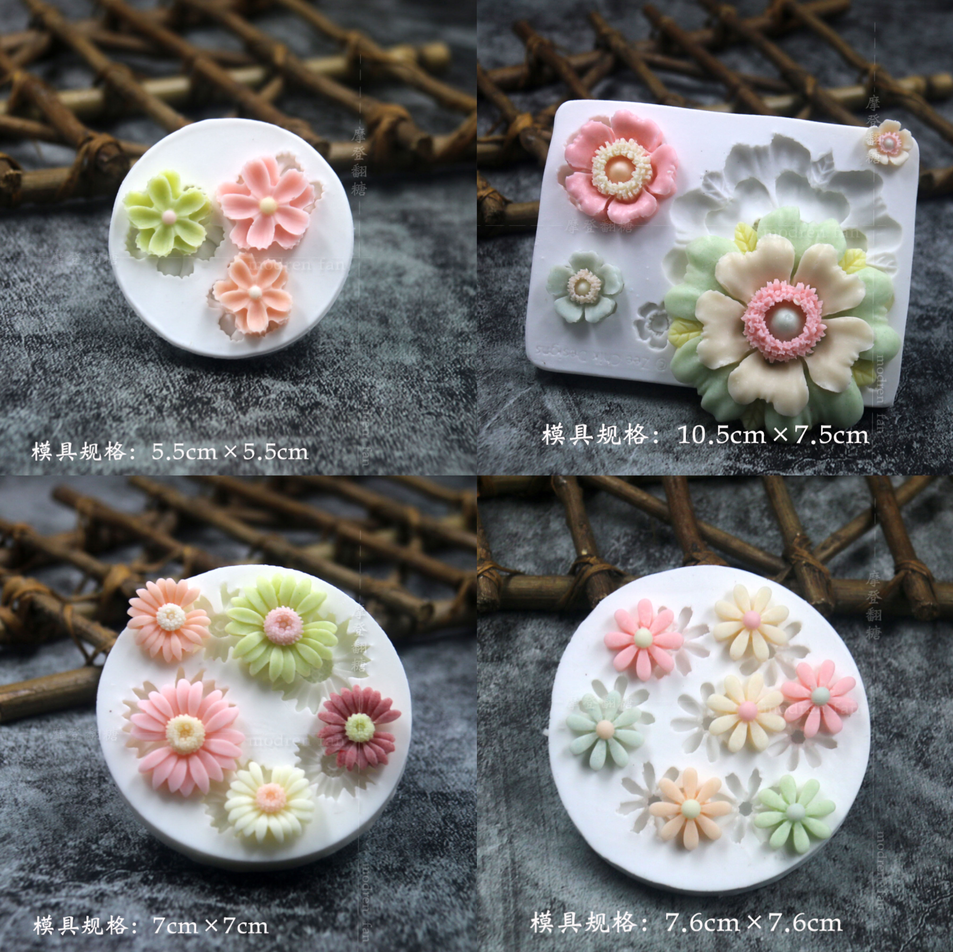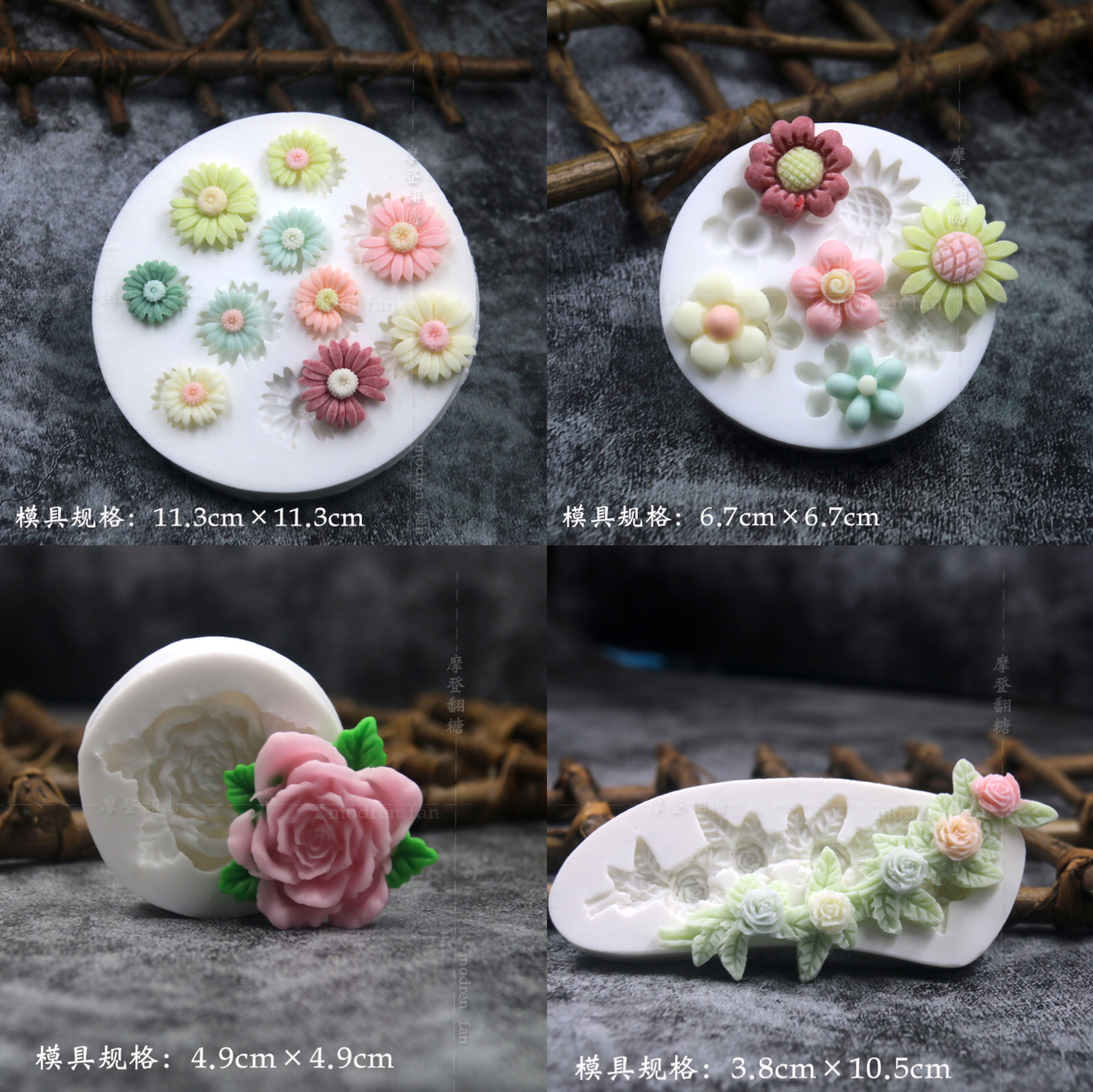 批发摩登翻糖花朵硅胶模具玫瑰菊花雏菊绣球花巧克力黏土