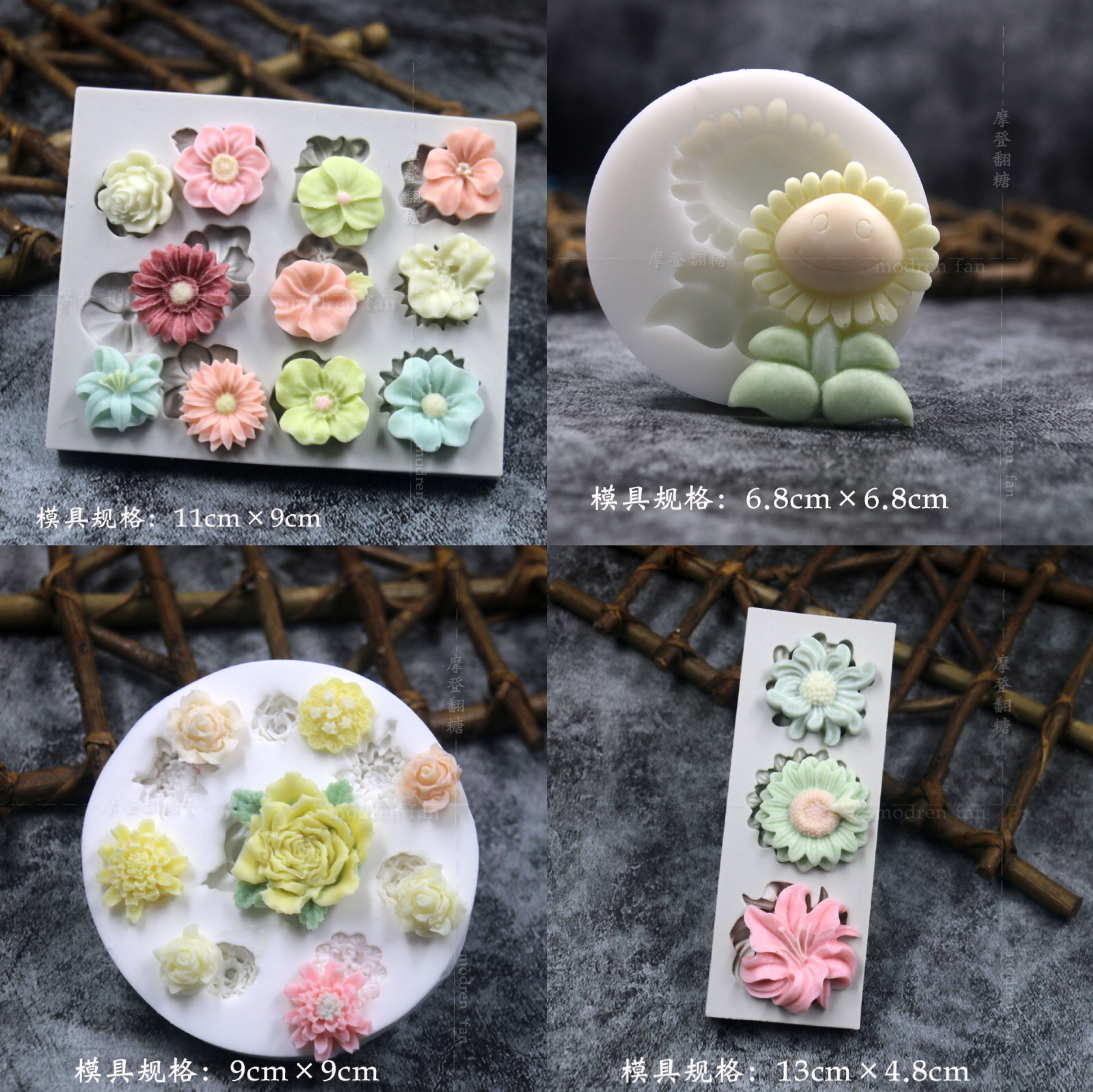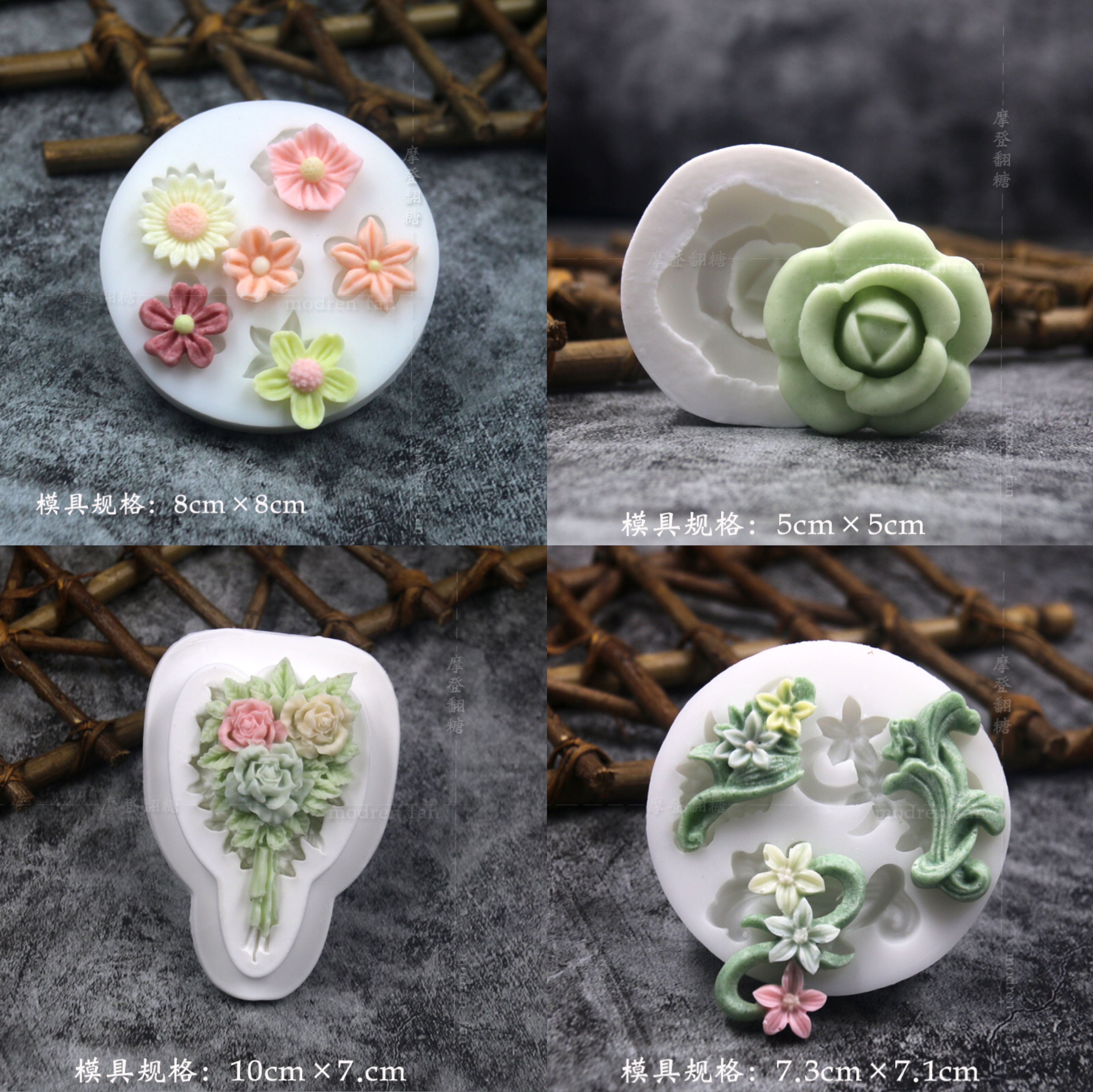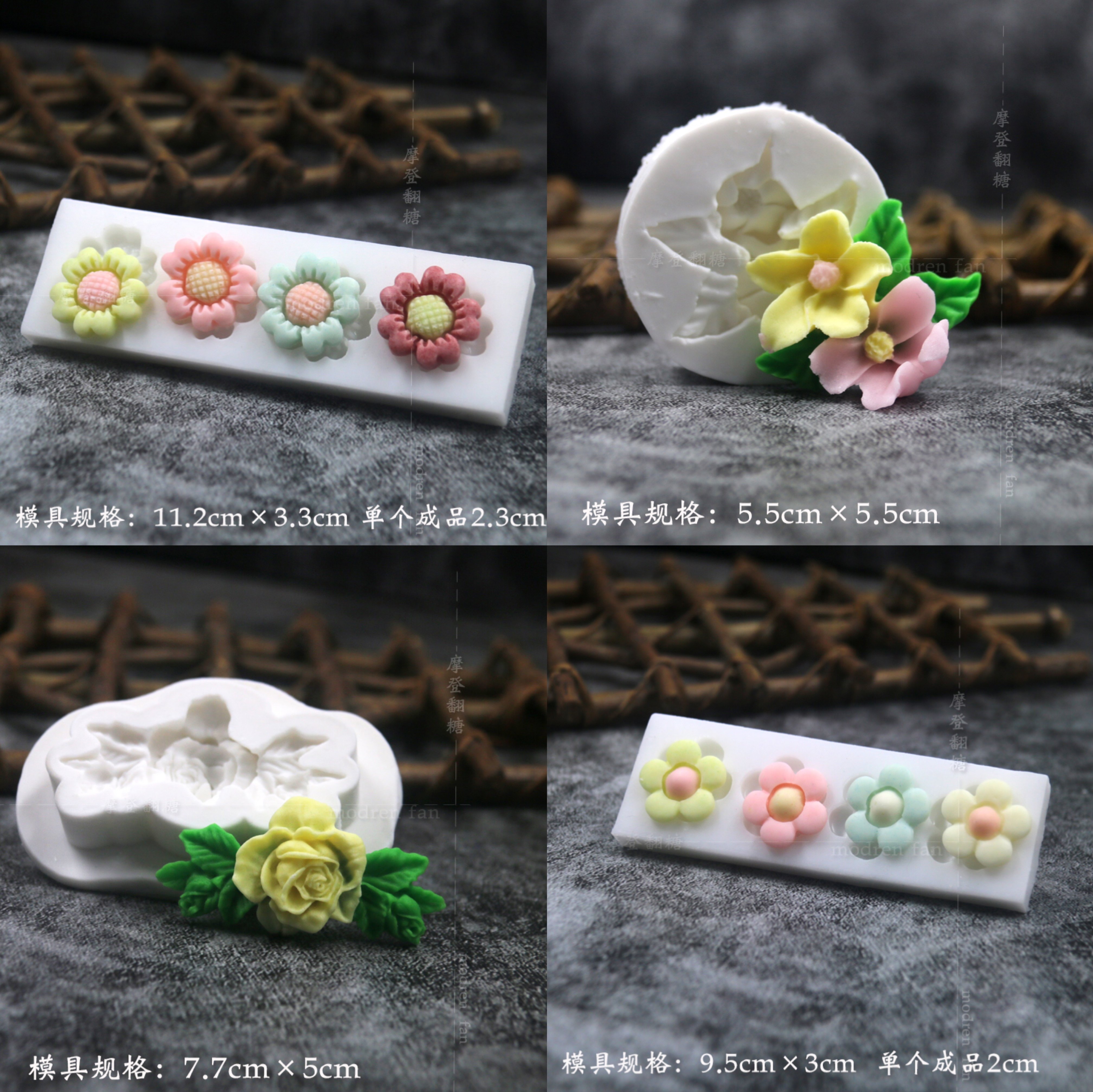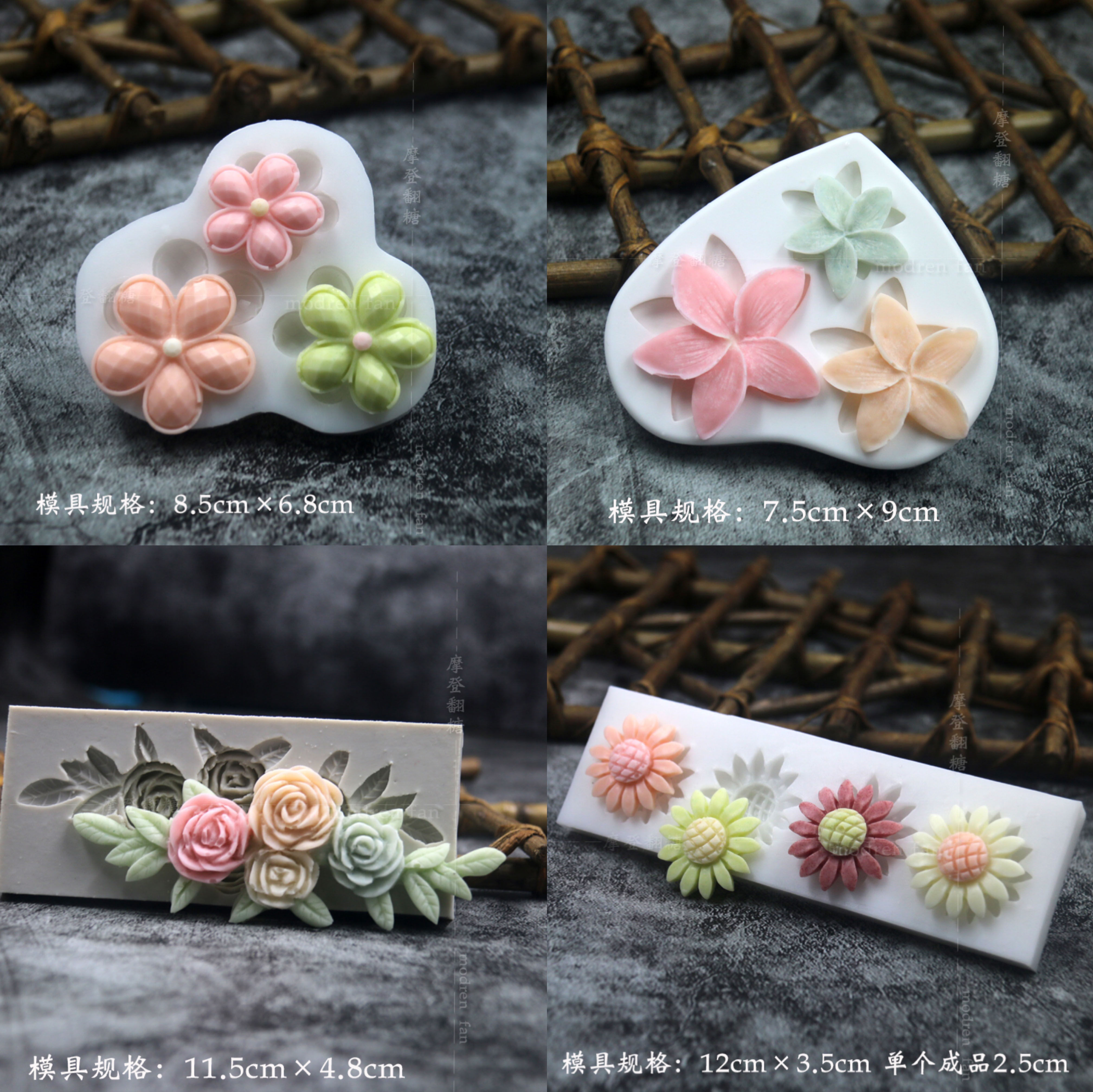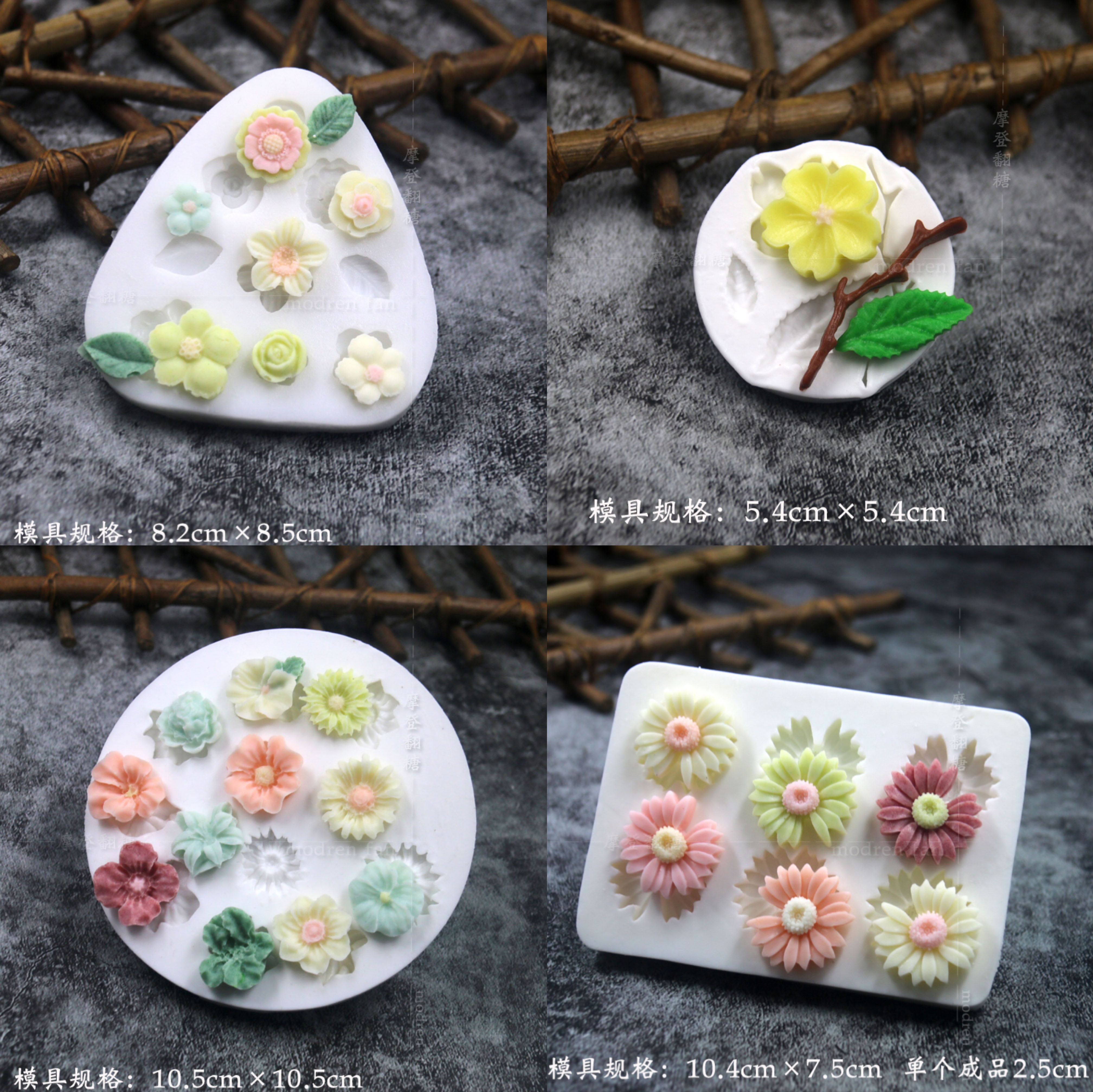 批发摩登翻糖花朵硅胶模具玫瑰菊花雏菊绣球花巧克力黏土