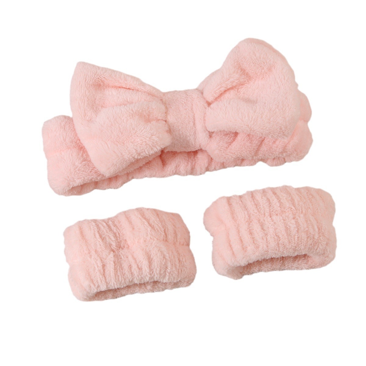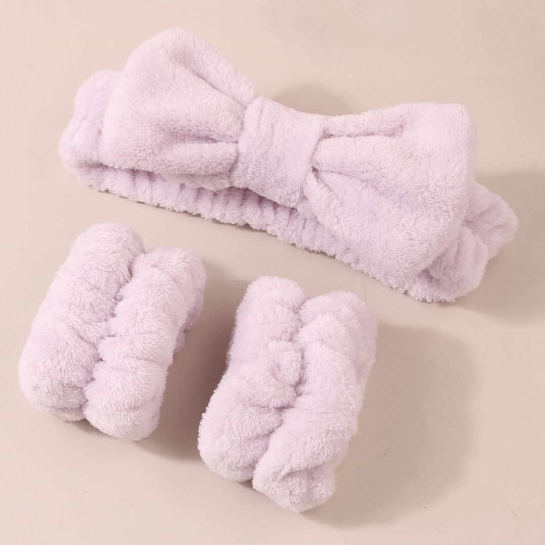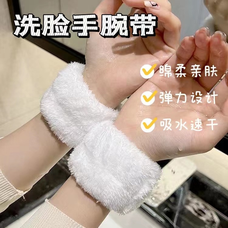 洗脸防湿三件套 珊瑚绒吸水束发带手腕带女士洗漱护肤防打湿工具