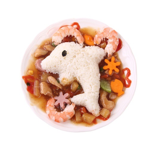 海豚兔子米饭模具4件套 卡通动物便当饭团寿司磨具厨房DIY套装