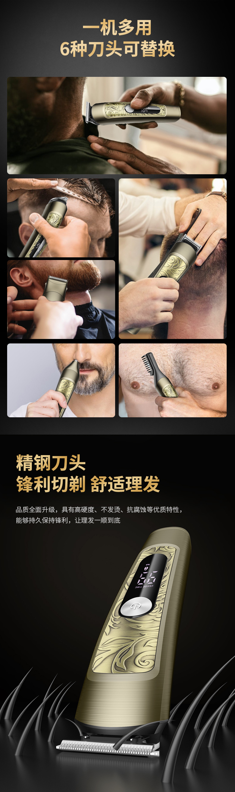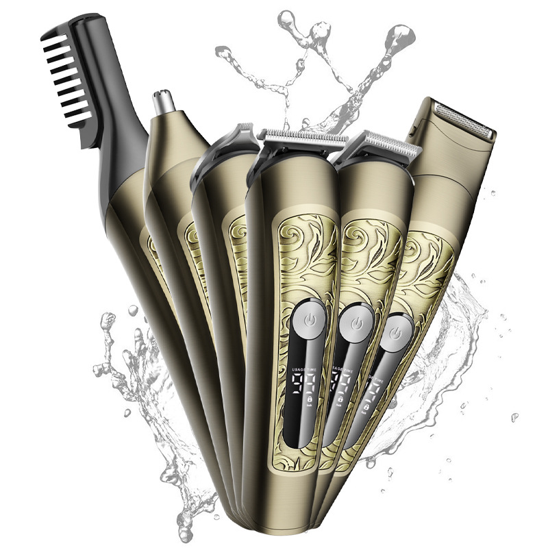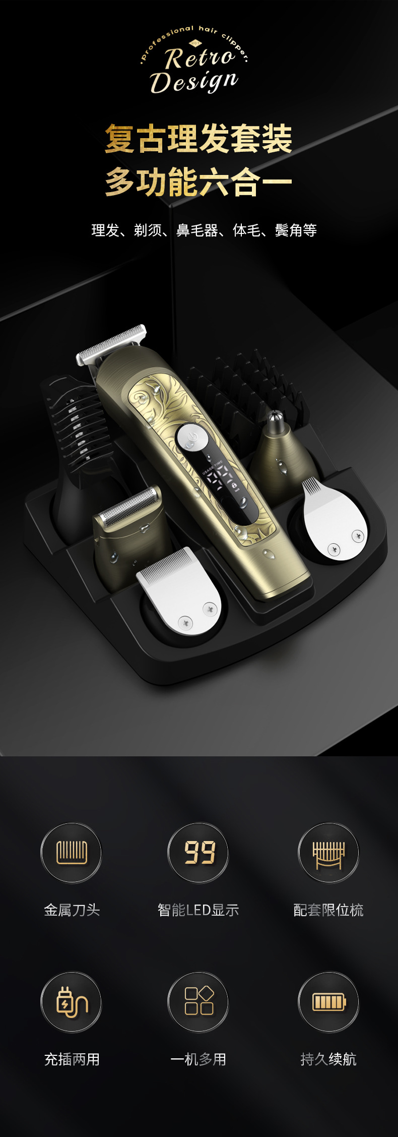 亚马逊欧美全金属浮雕机身理发器6合1多功能电推剪剃须刀鼻毛器
