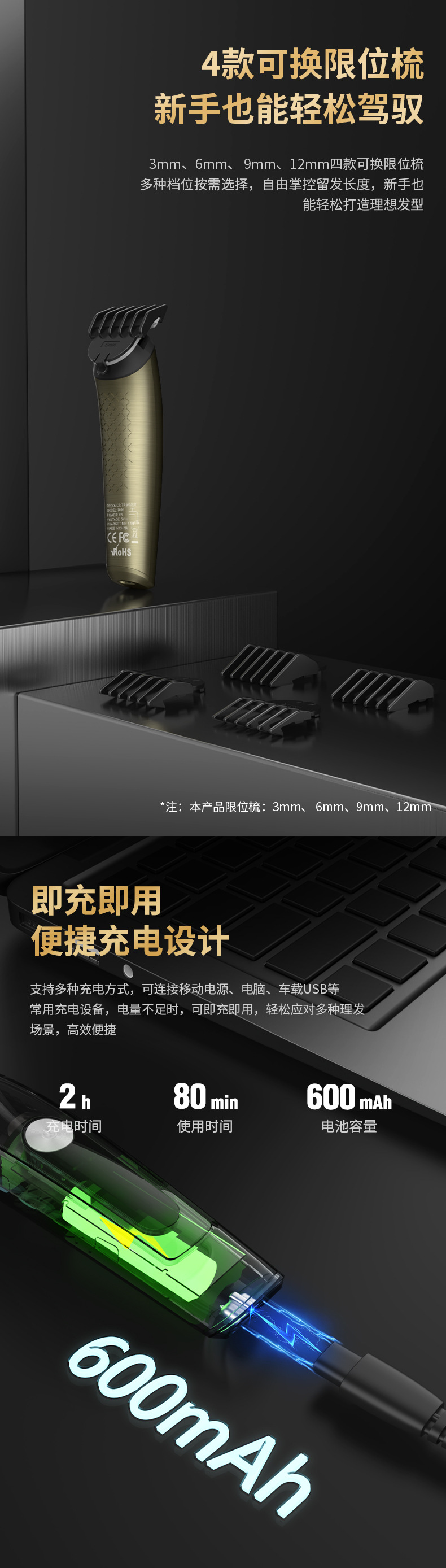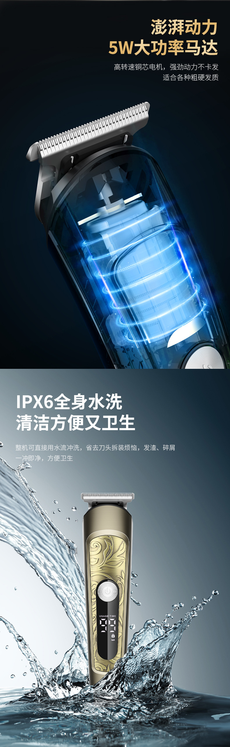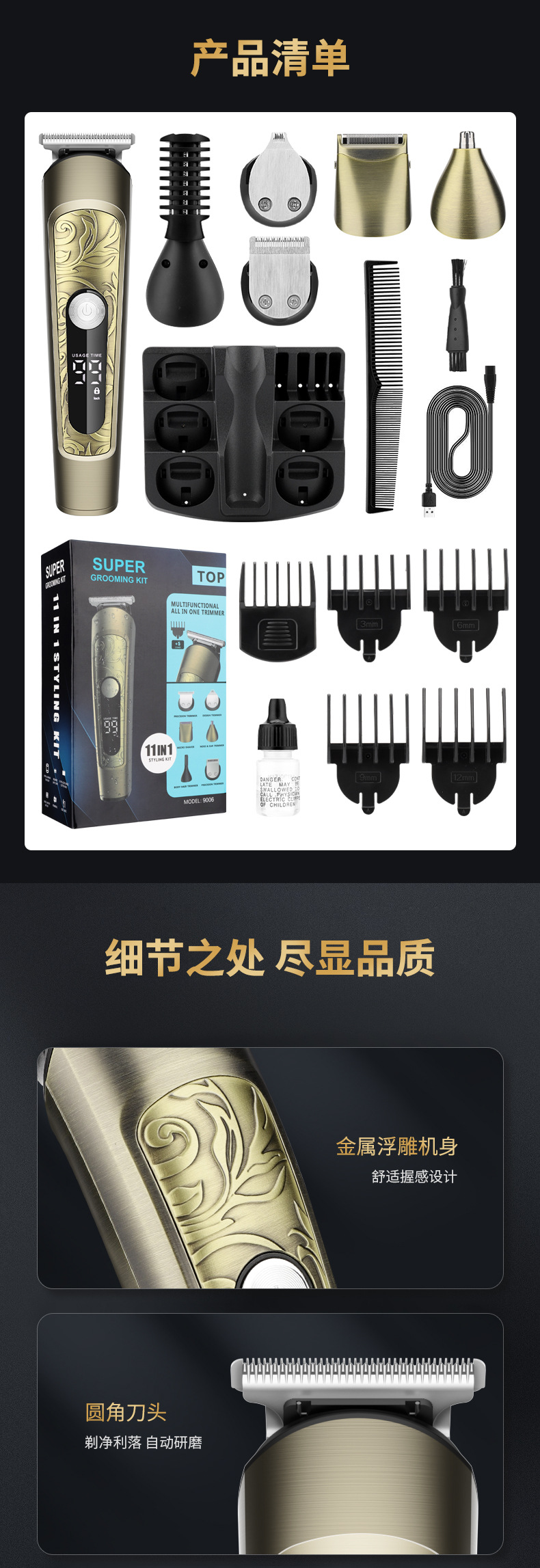 亚马逊欧美全金属浮雕机身理发器6合1多功能电推剪剃须刀鼻毛器