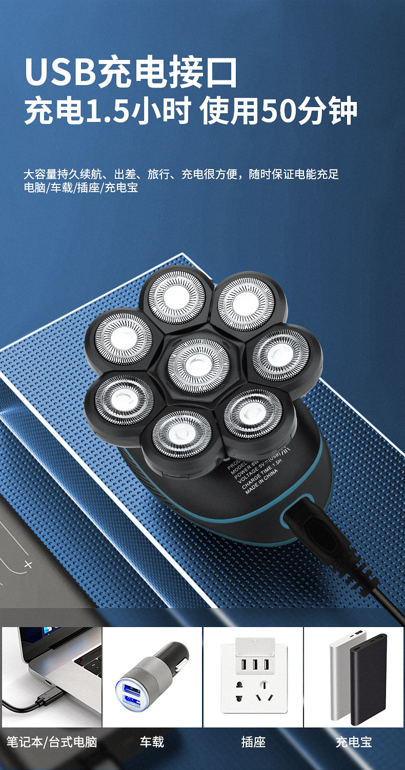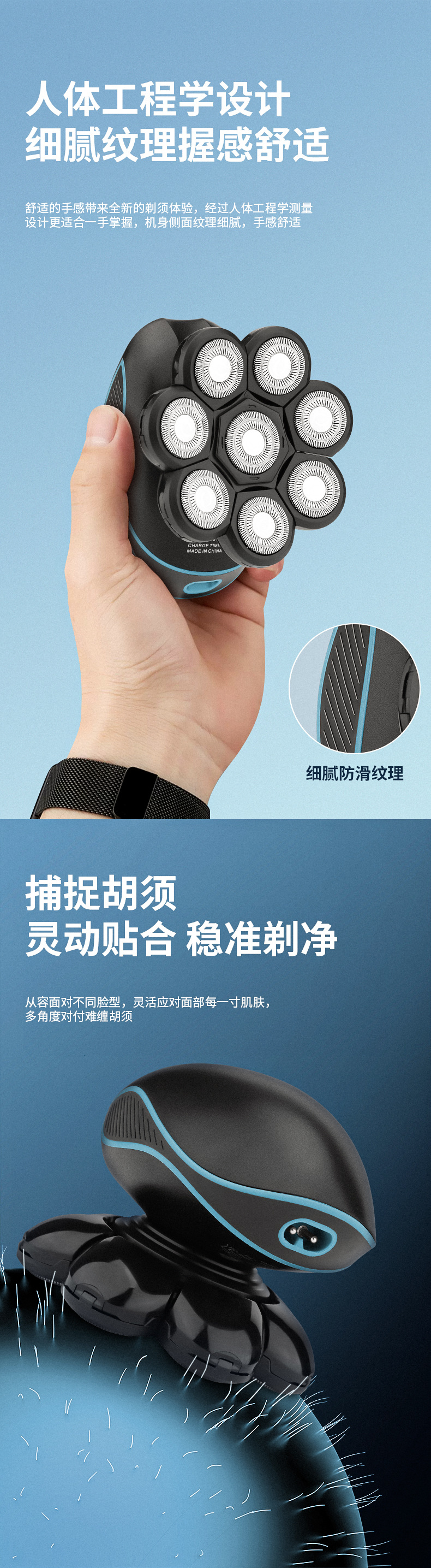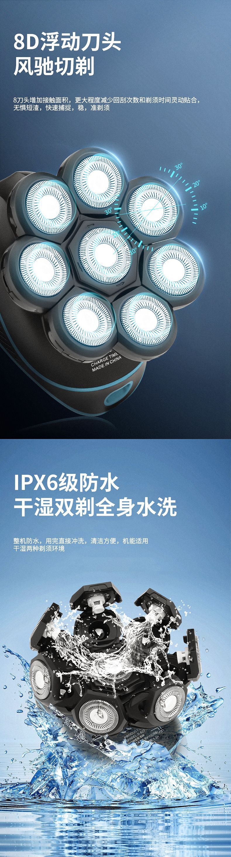 TEMU热卖男士8刀网浮动剃须刀电动全身水洗刮胡刀光头理发器
