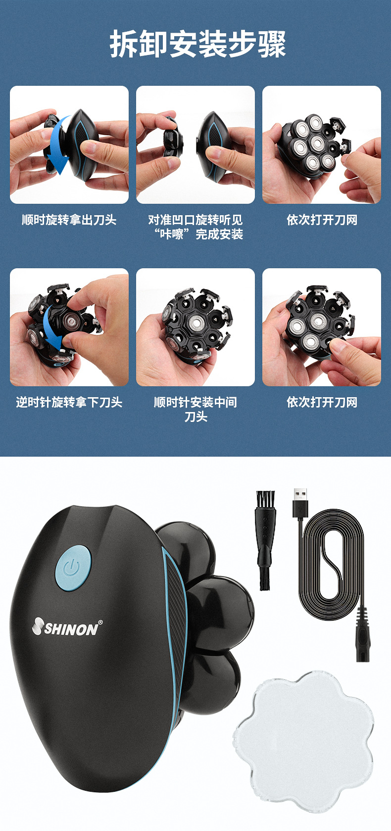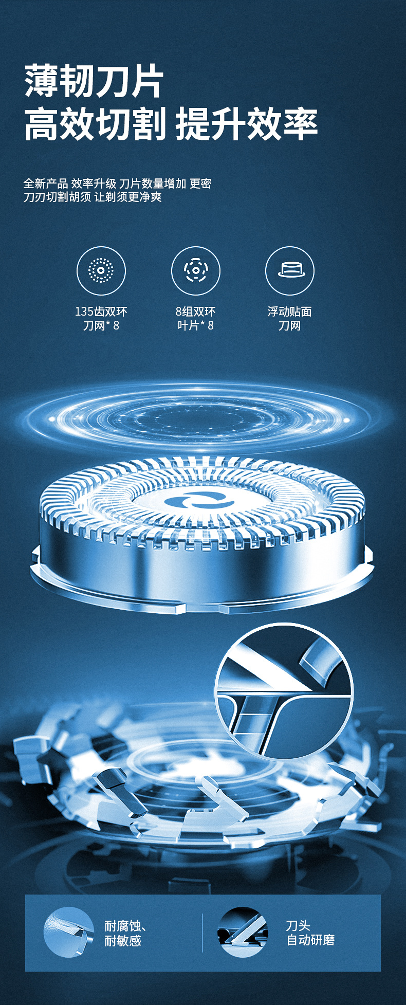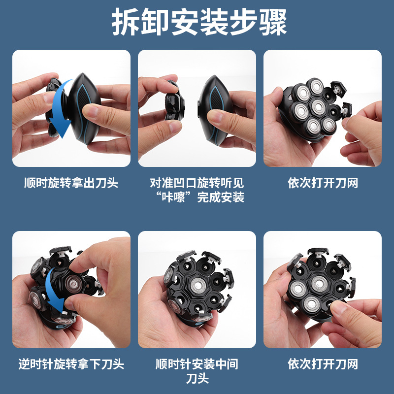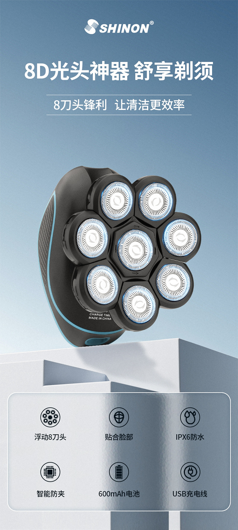 TEMU热卖男士8刀网浮动剃须刀电动全身水洗刮胡刀光头理发器