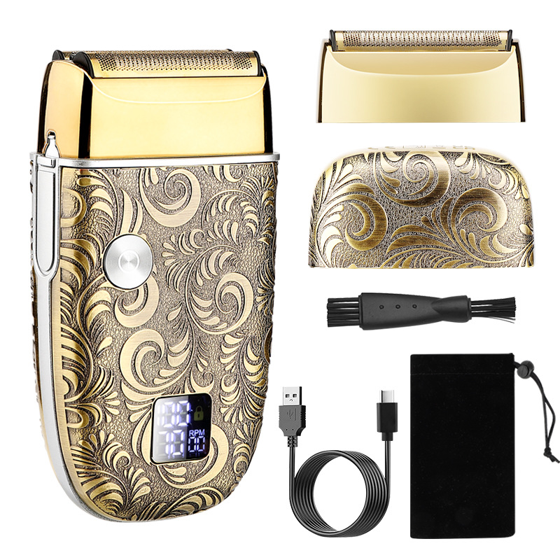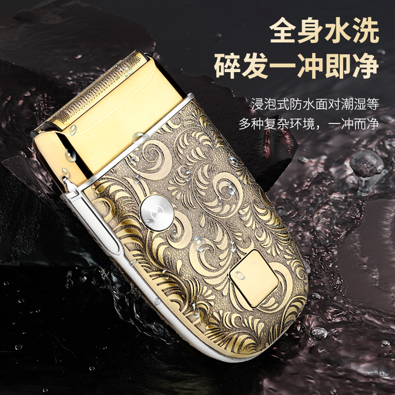 960三刀网枪灰亮面剃须刀光头机全身水洗刮胡刀USB充电胡须刀